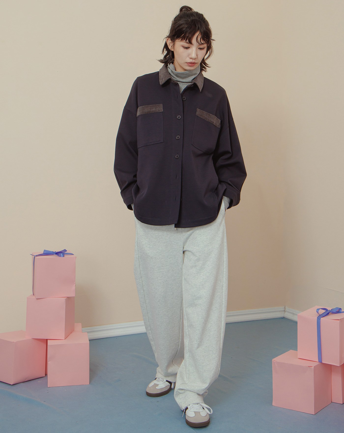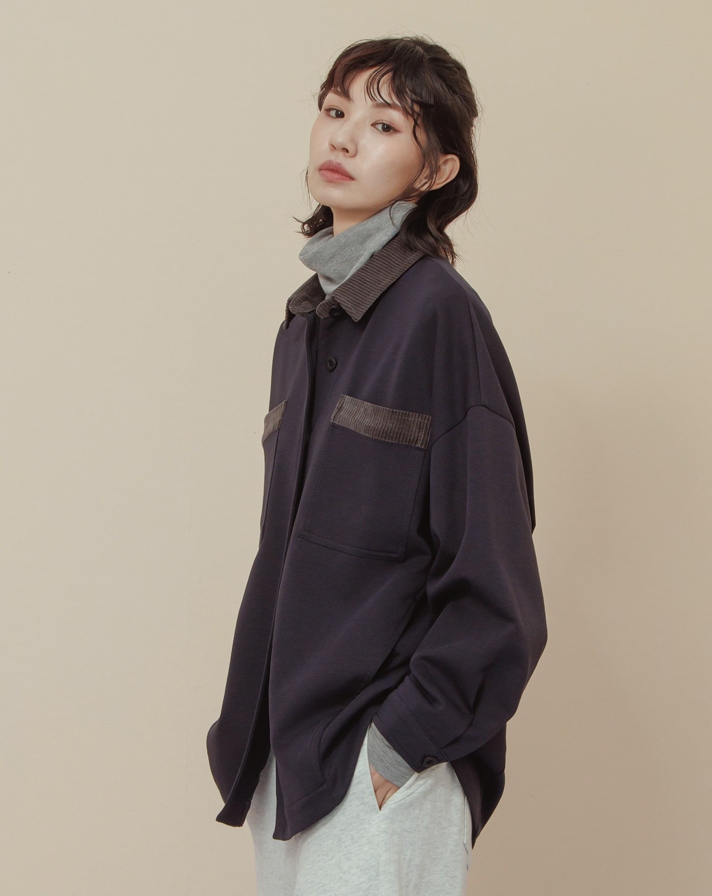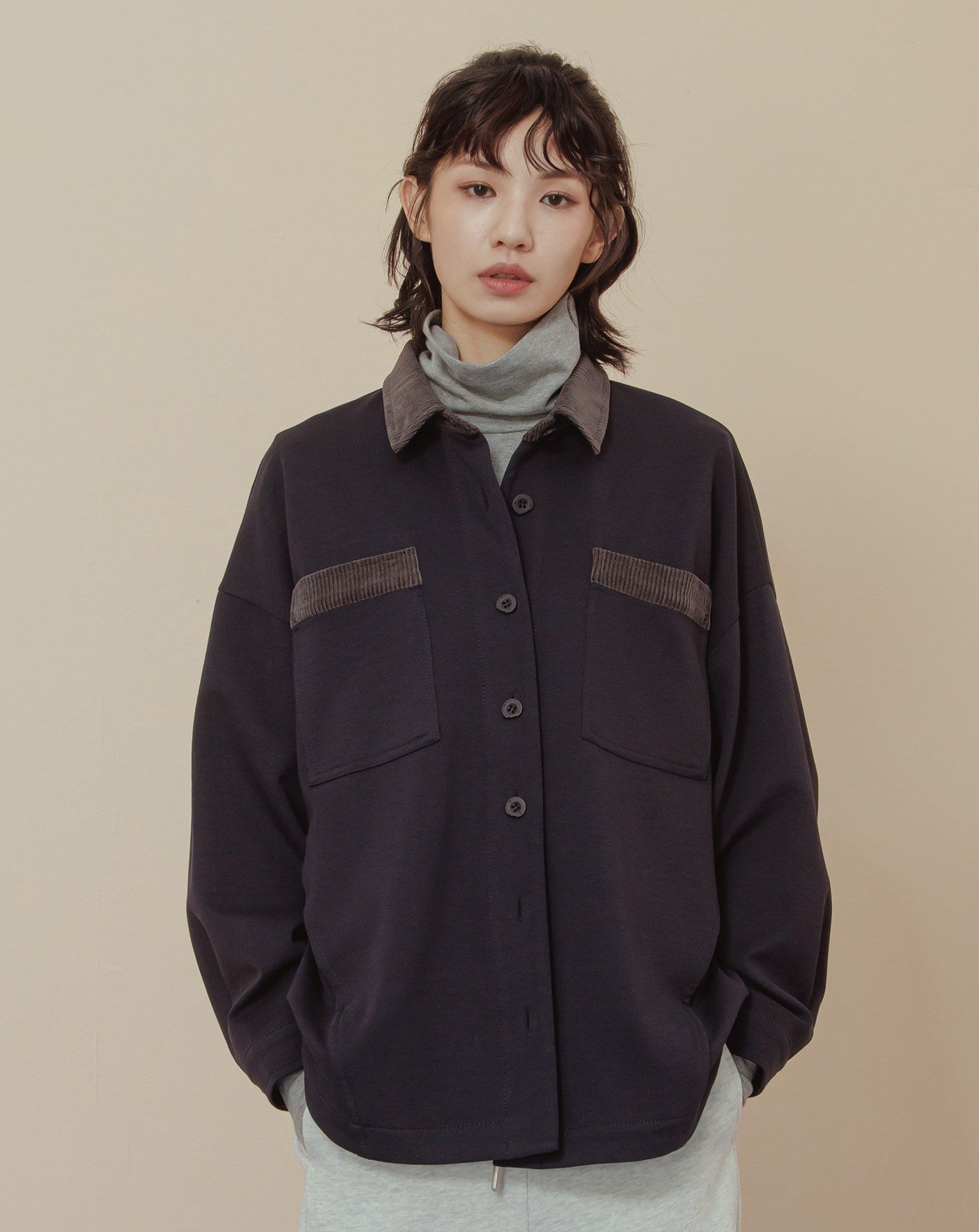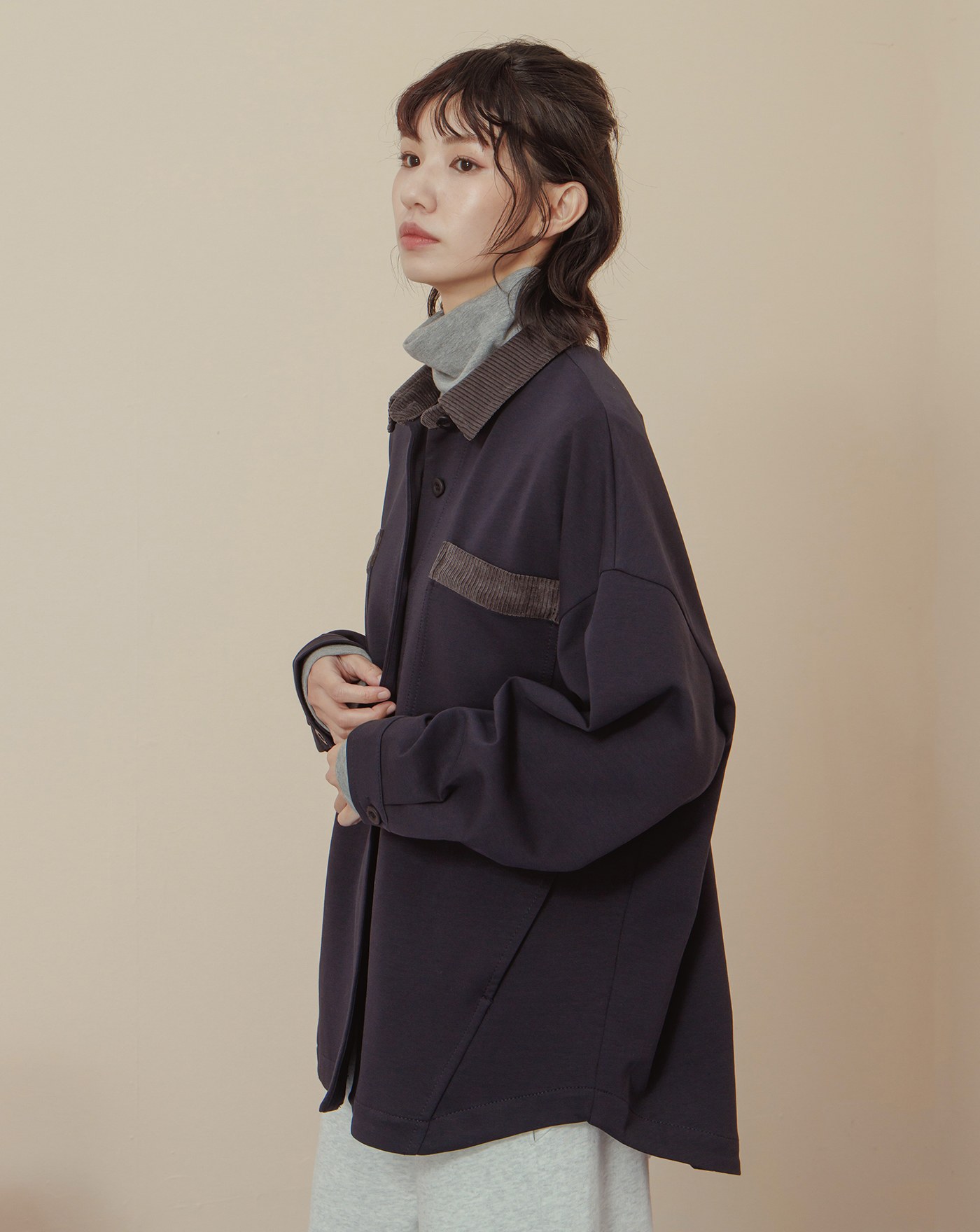 造型調節下擺抽繩寬版襯衫外套(兩色)
