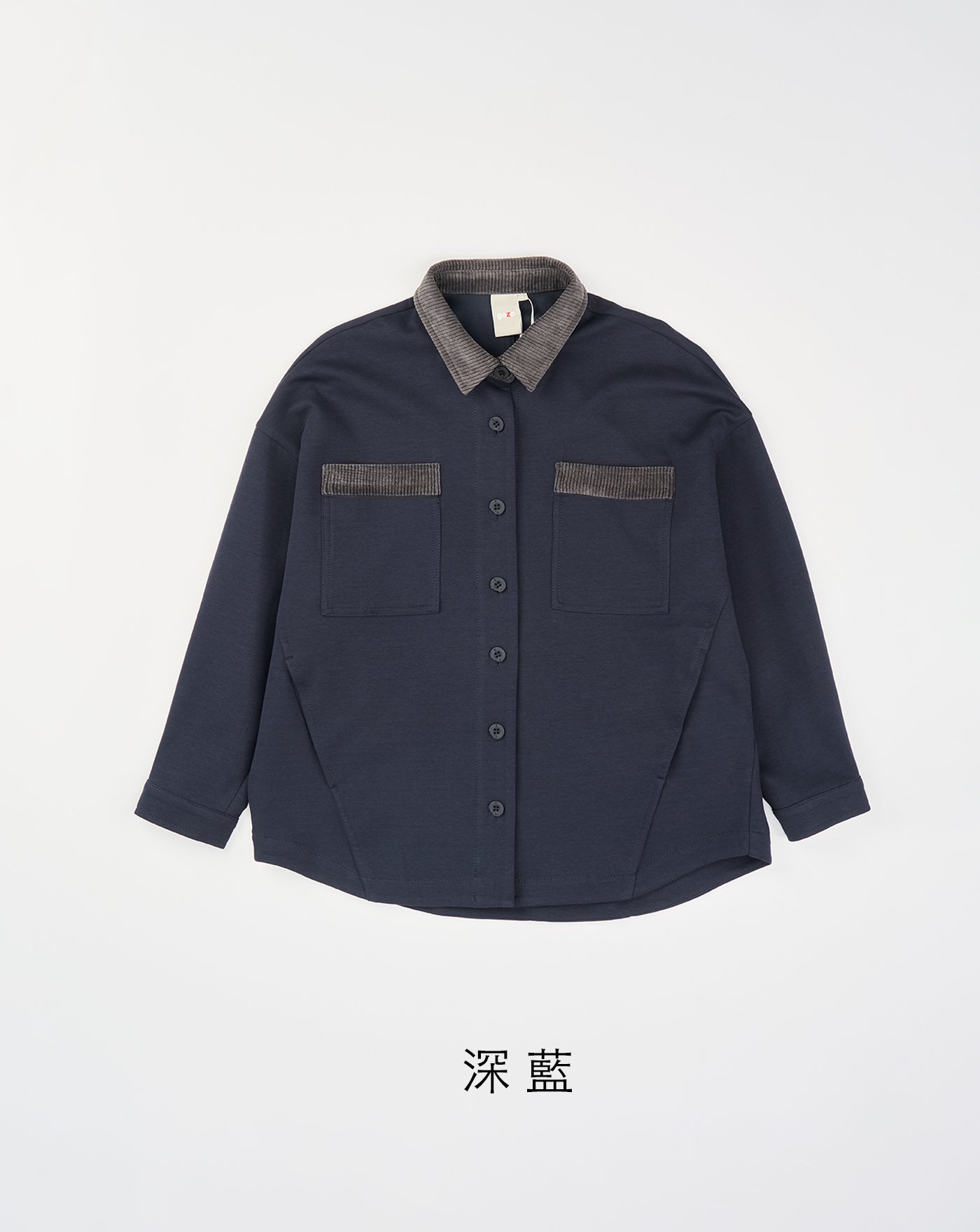 ➤配色壓線口袋撞色刺繡襯衫外套(兩色)