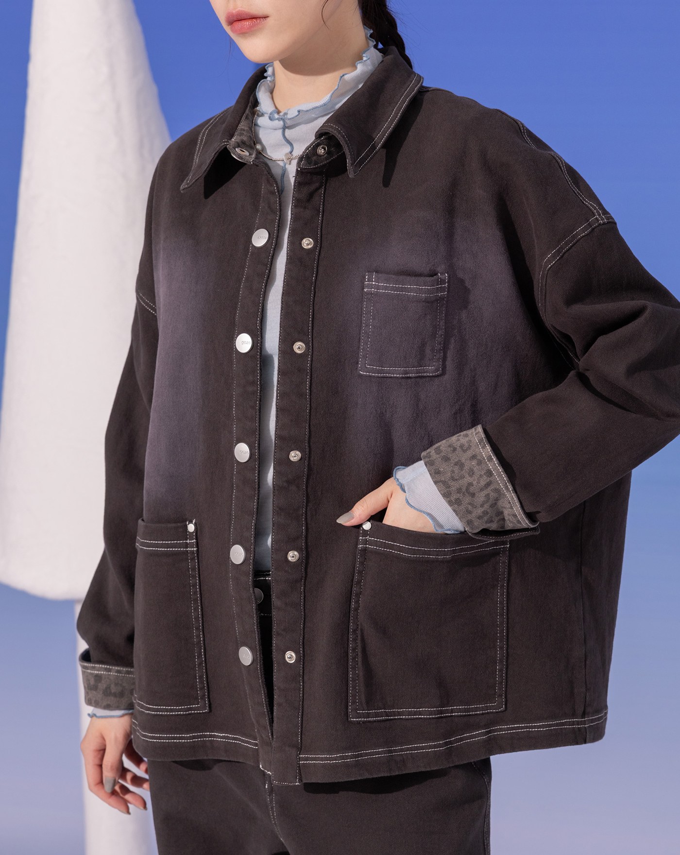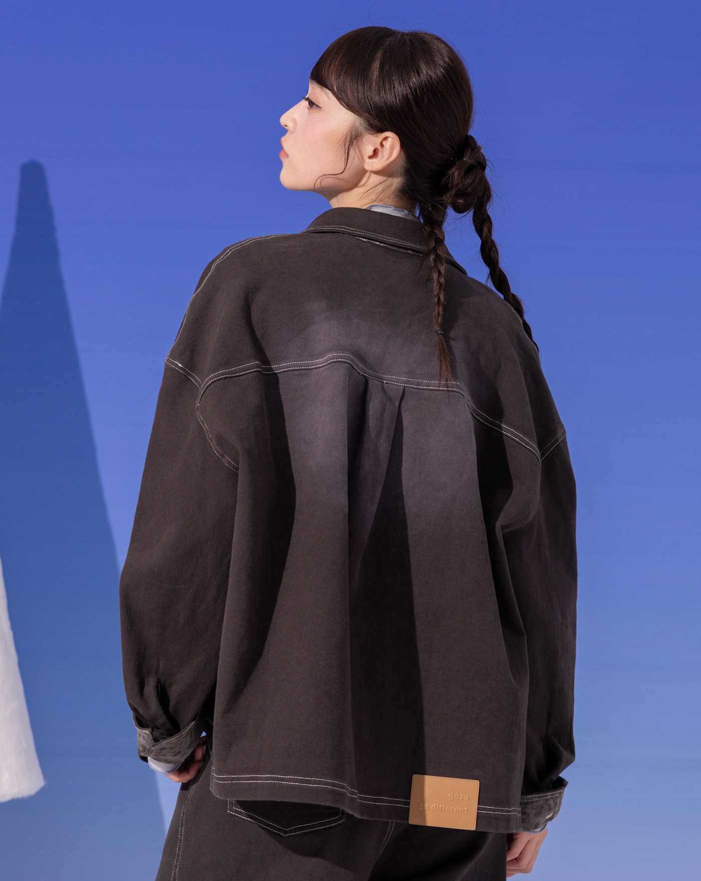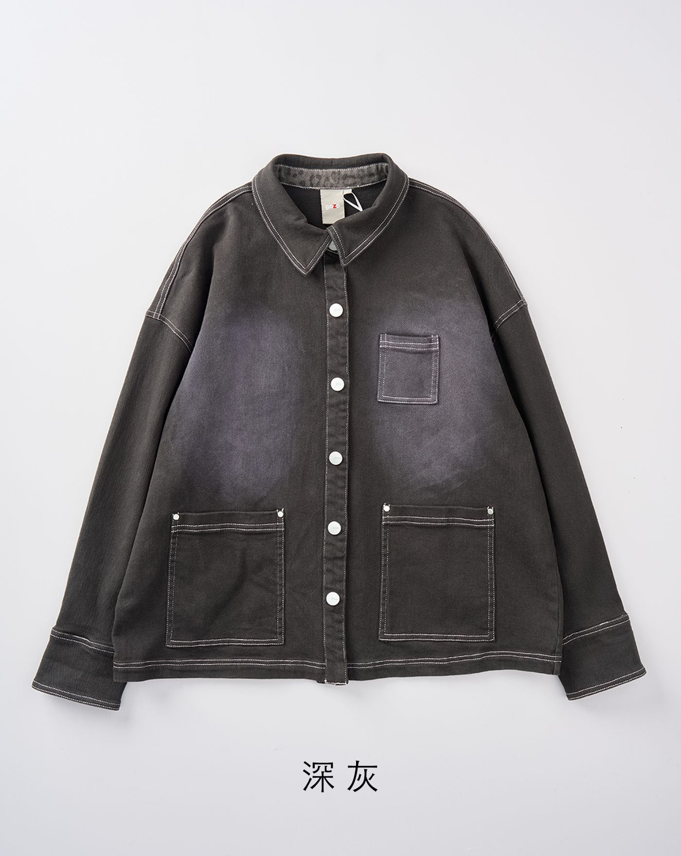 顯瘦異材質配色拼接襯衫外套(兩色)