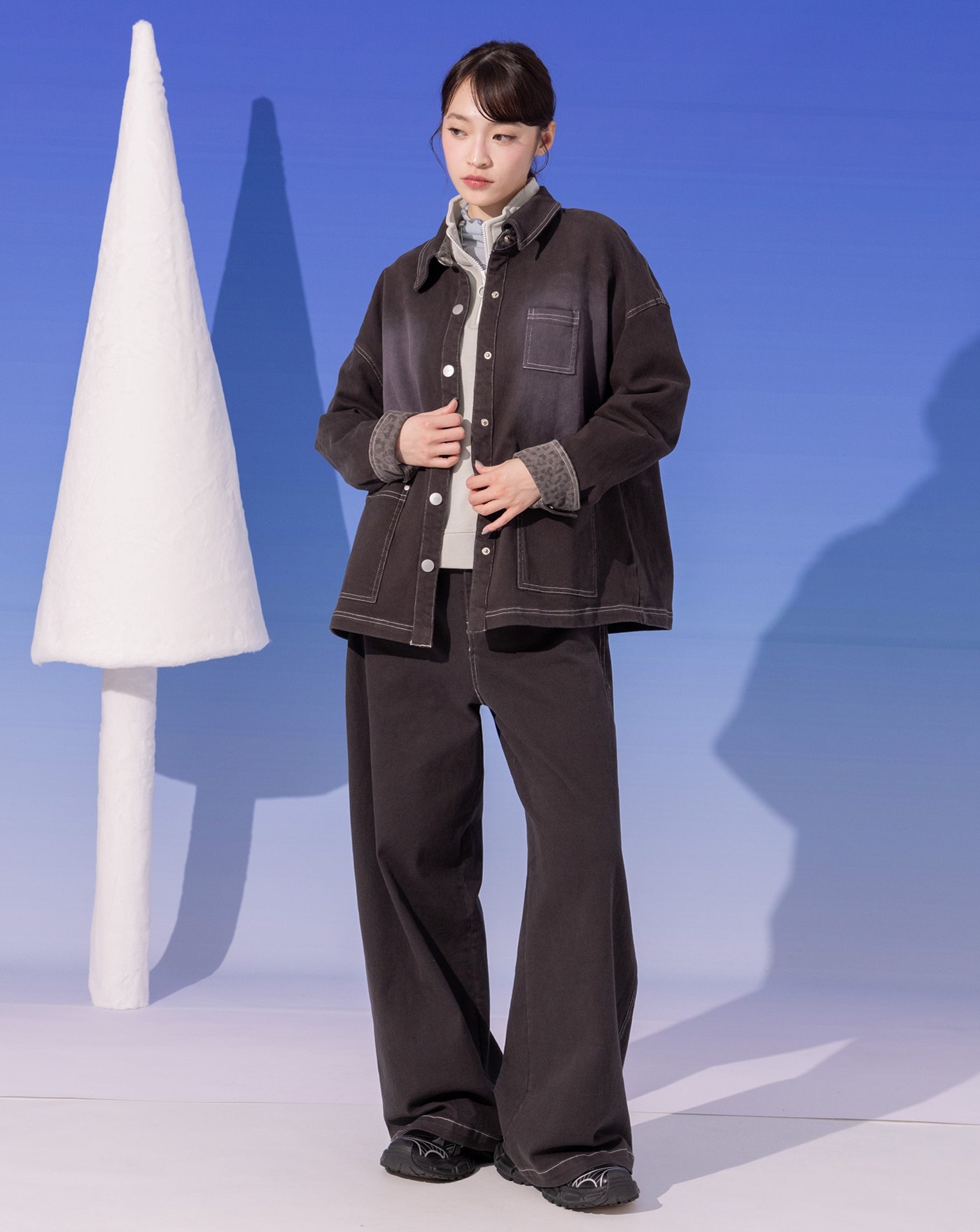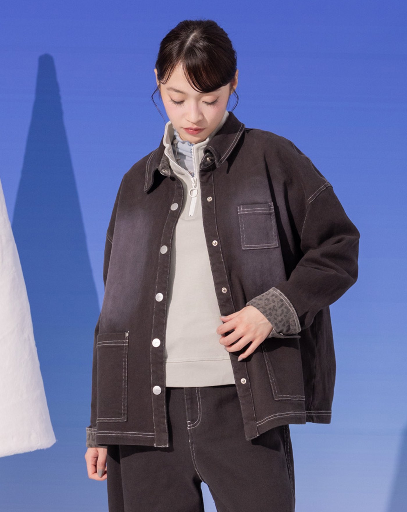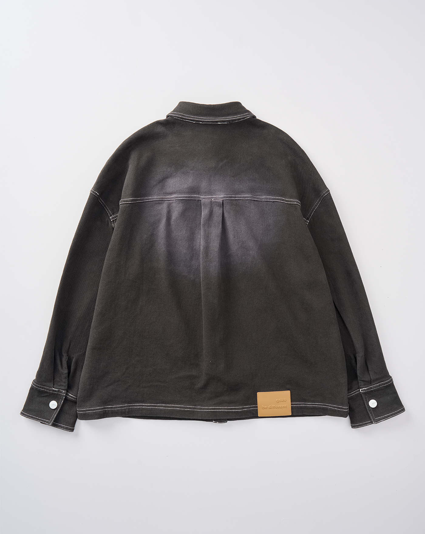 顯瘦異材質配色拼接襯衫外套(兩色)