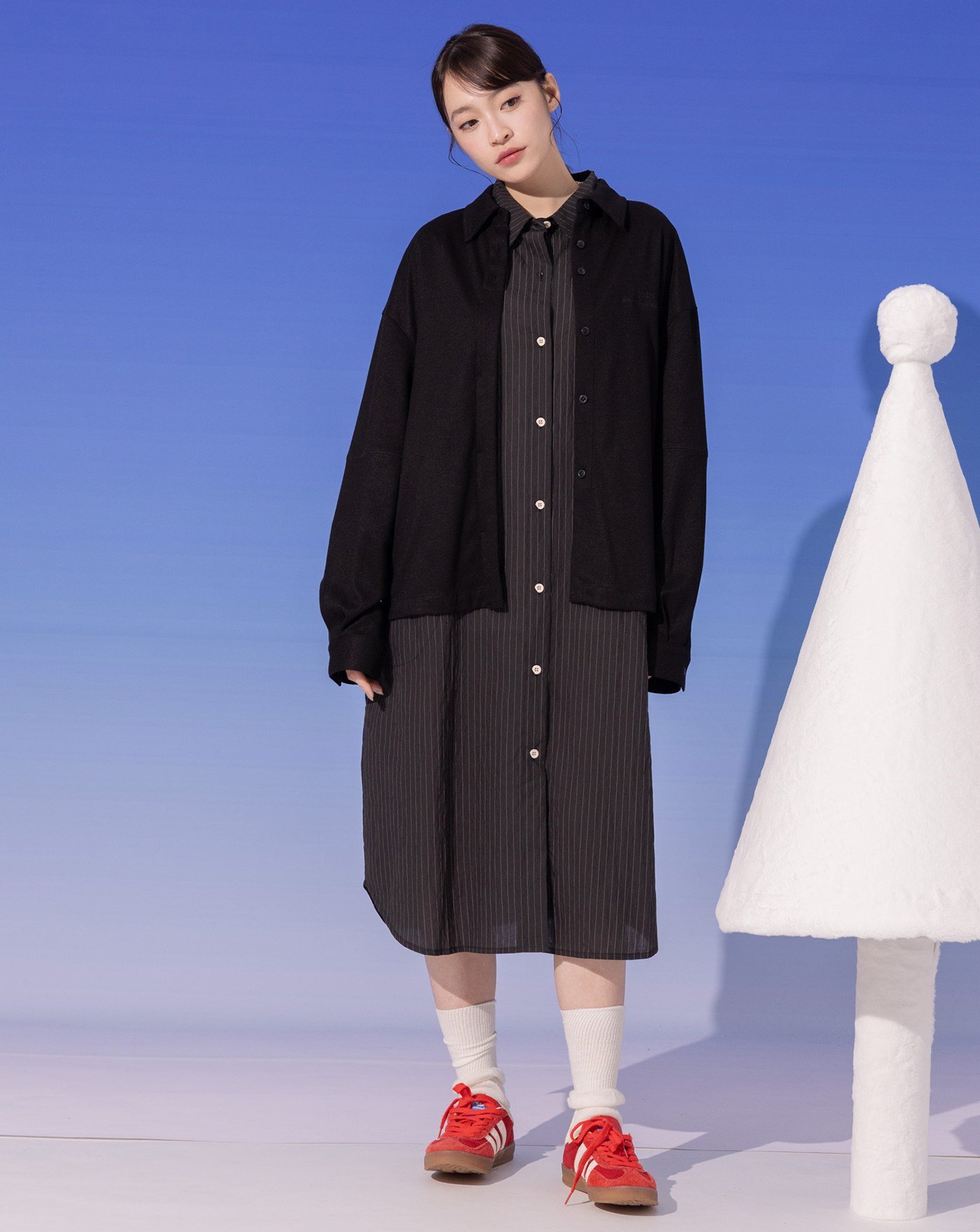 迪士尼系列 害羞鬼立體繡花條絨長袖襯衫(兩色)
