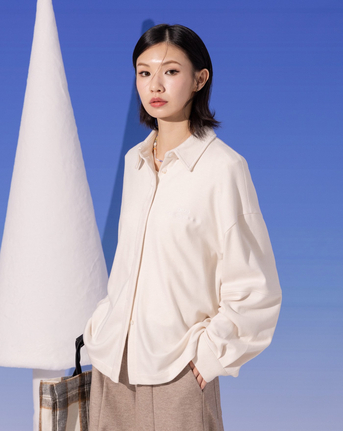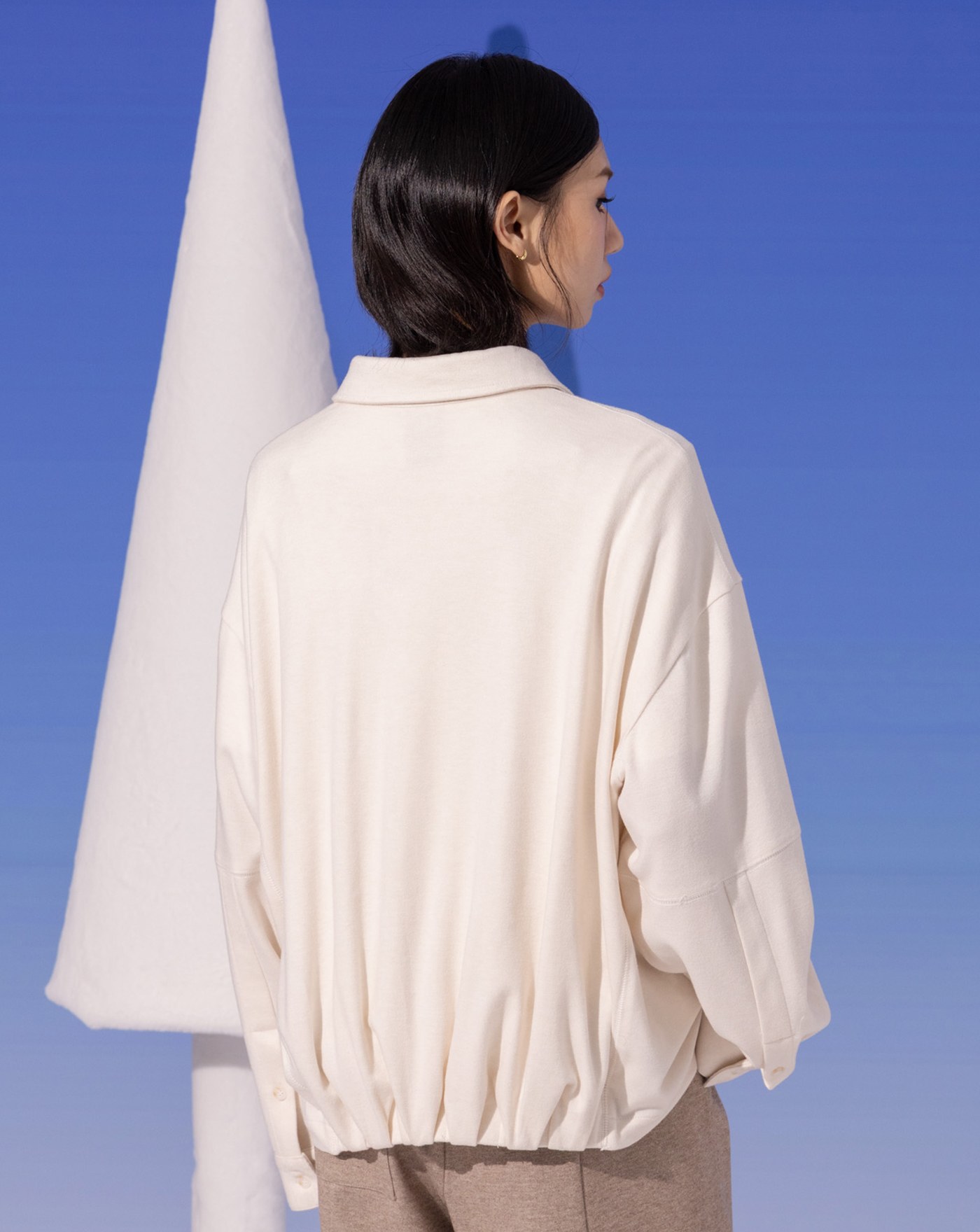 燈芯絨立體褶造型長袖襯衫