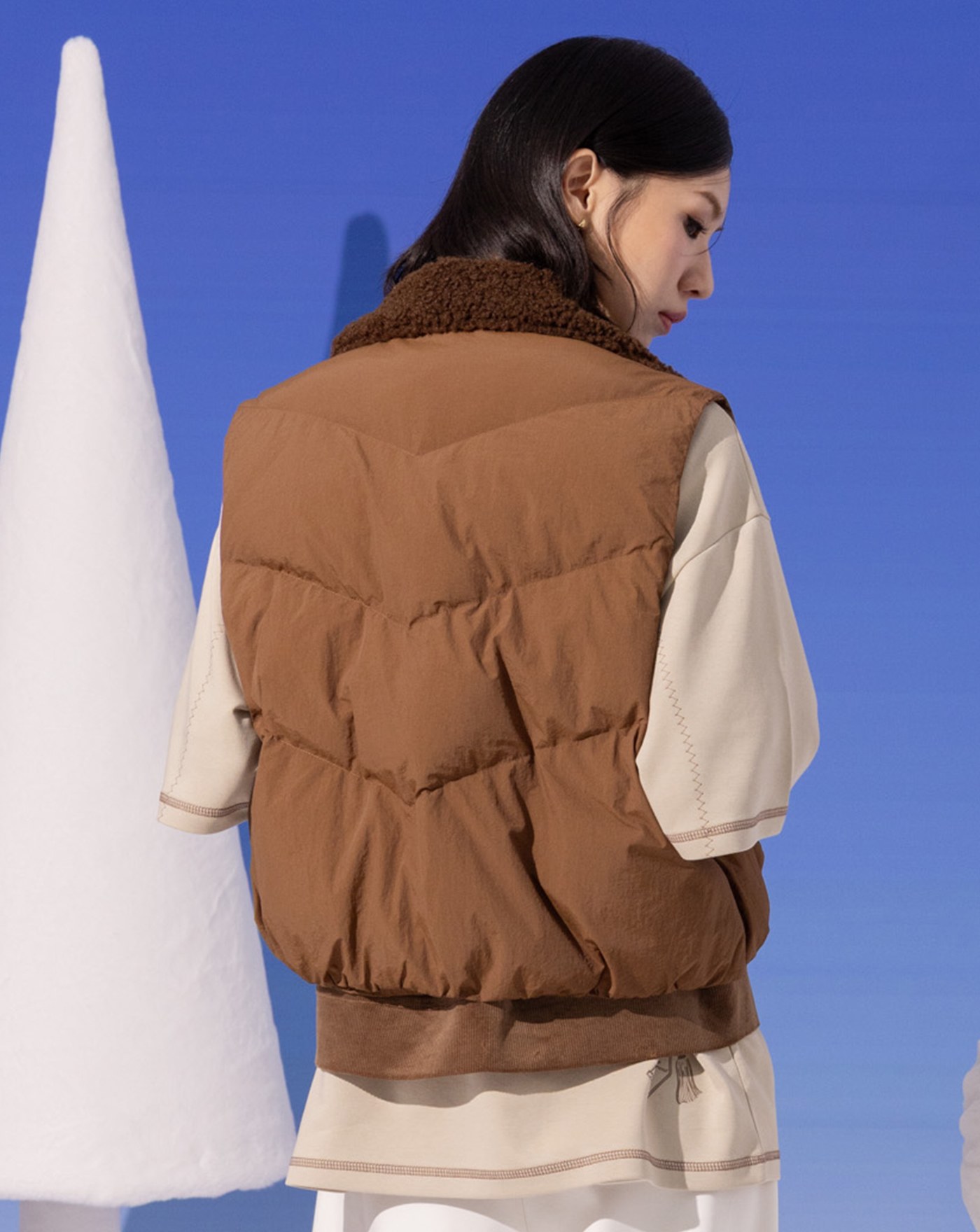 ➤仿羊絨坑條保暖拉鍊背心(兩色)