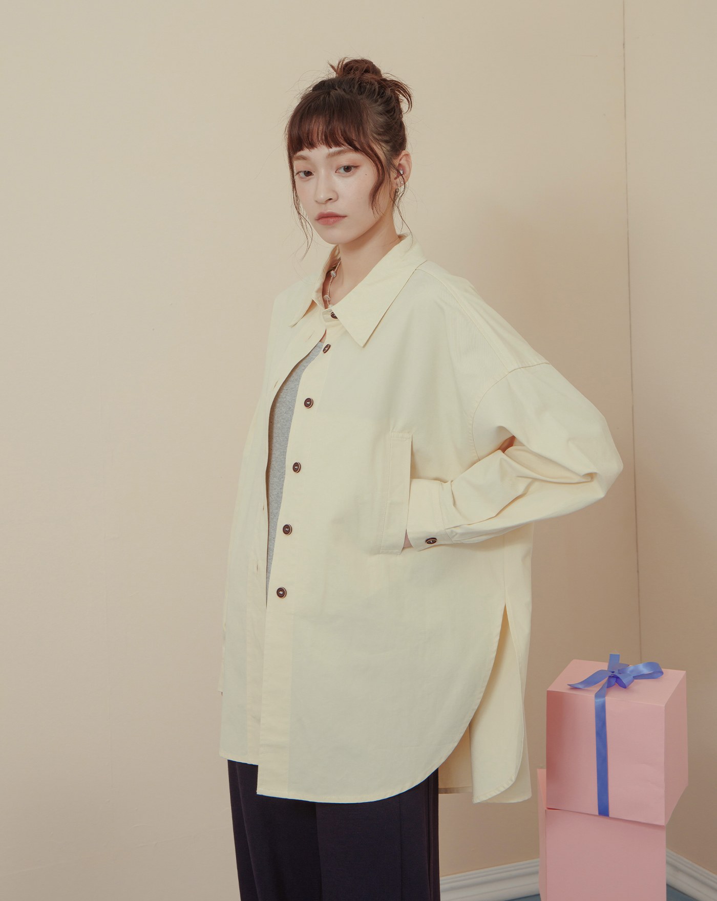 ➤廓型袖隱形口袋長袖襯衫(兩色)