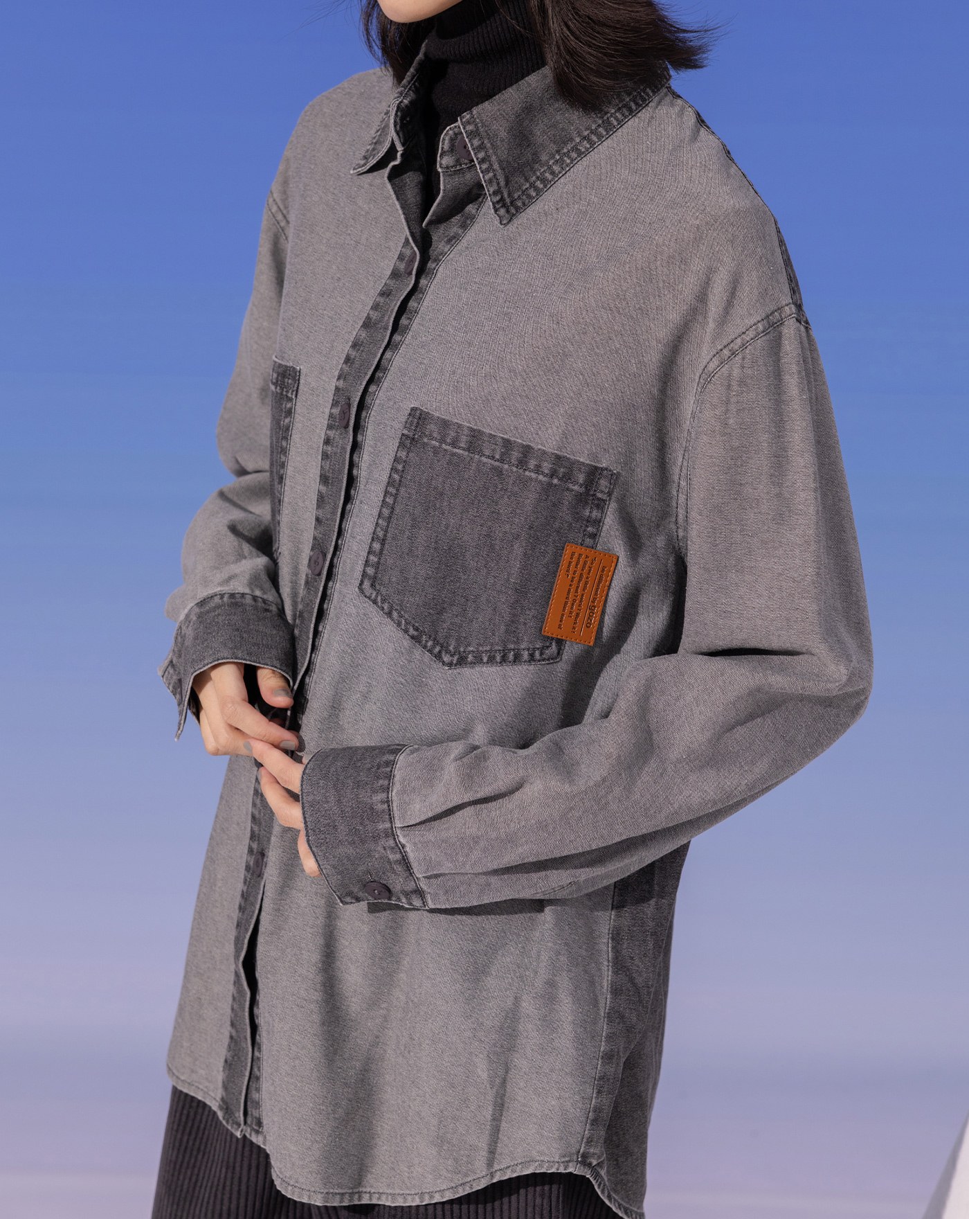 涼感天絲造型刷色牛仔襯衫(兩色)