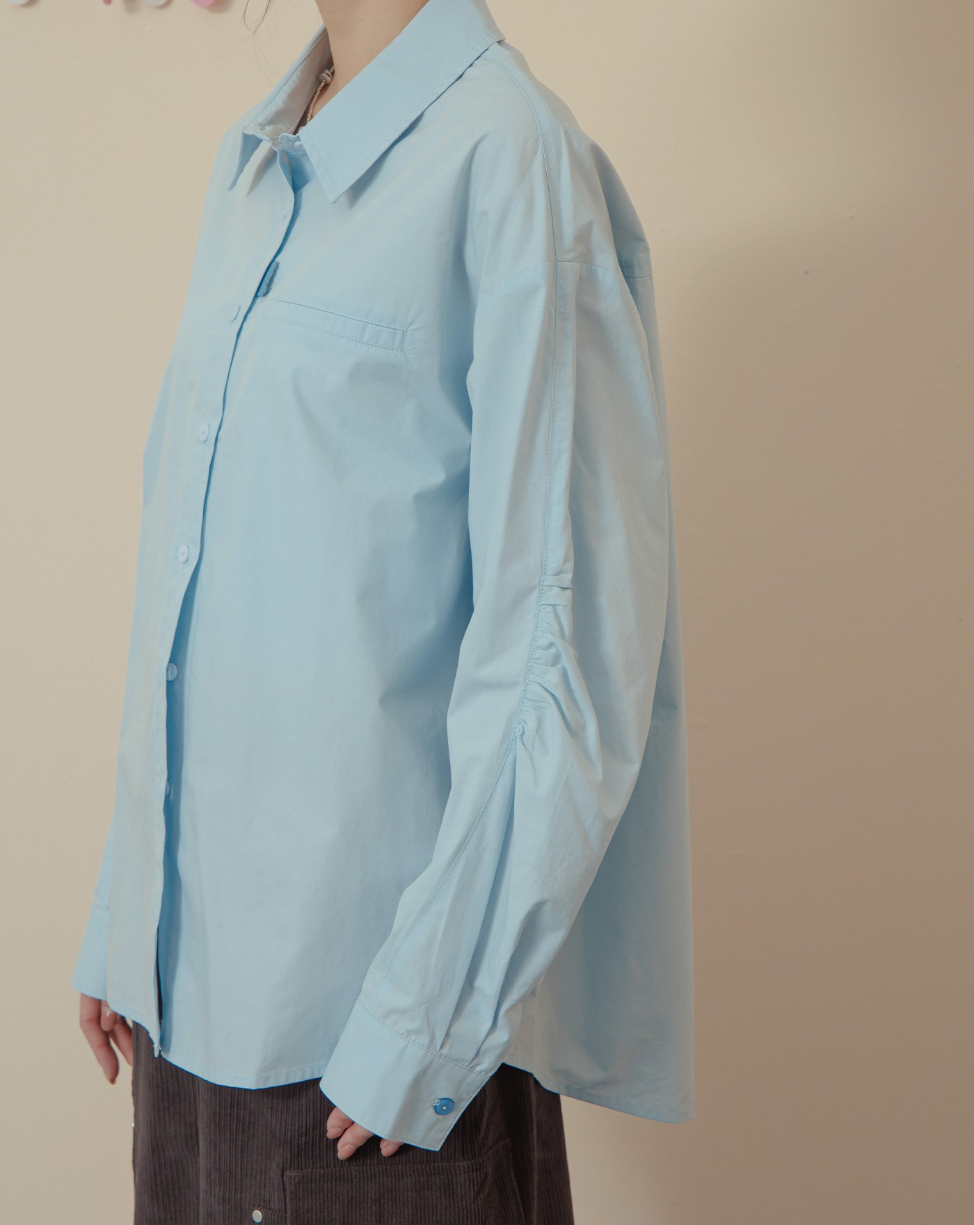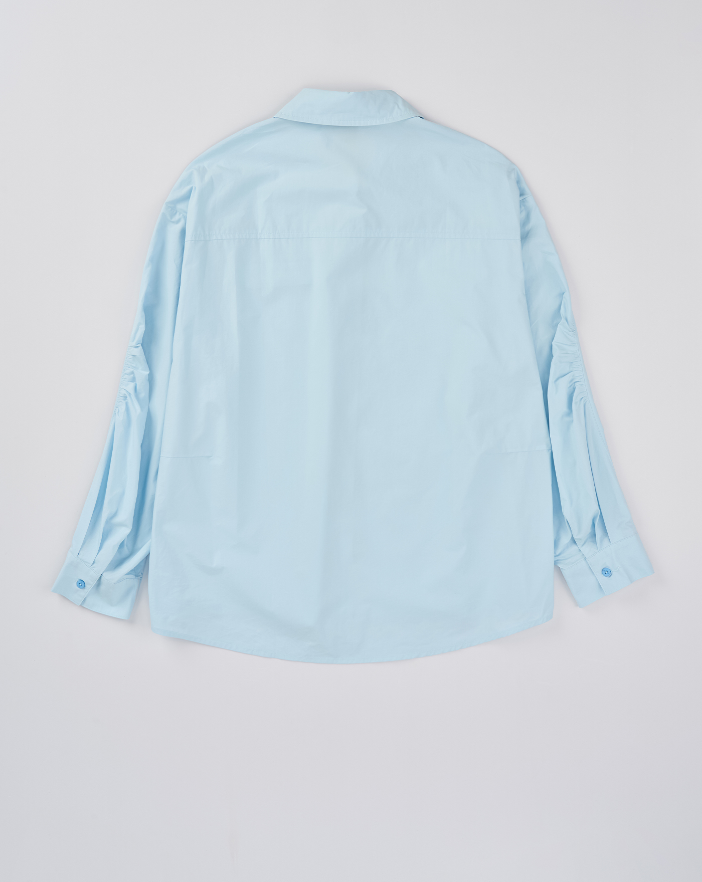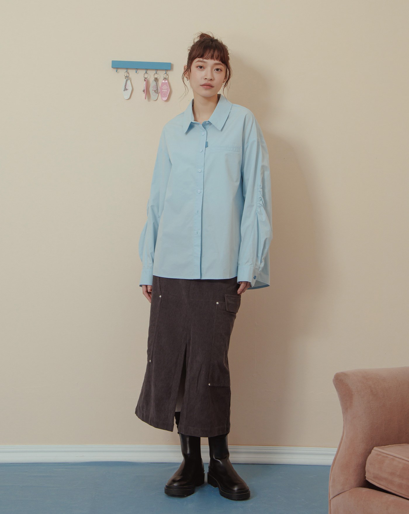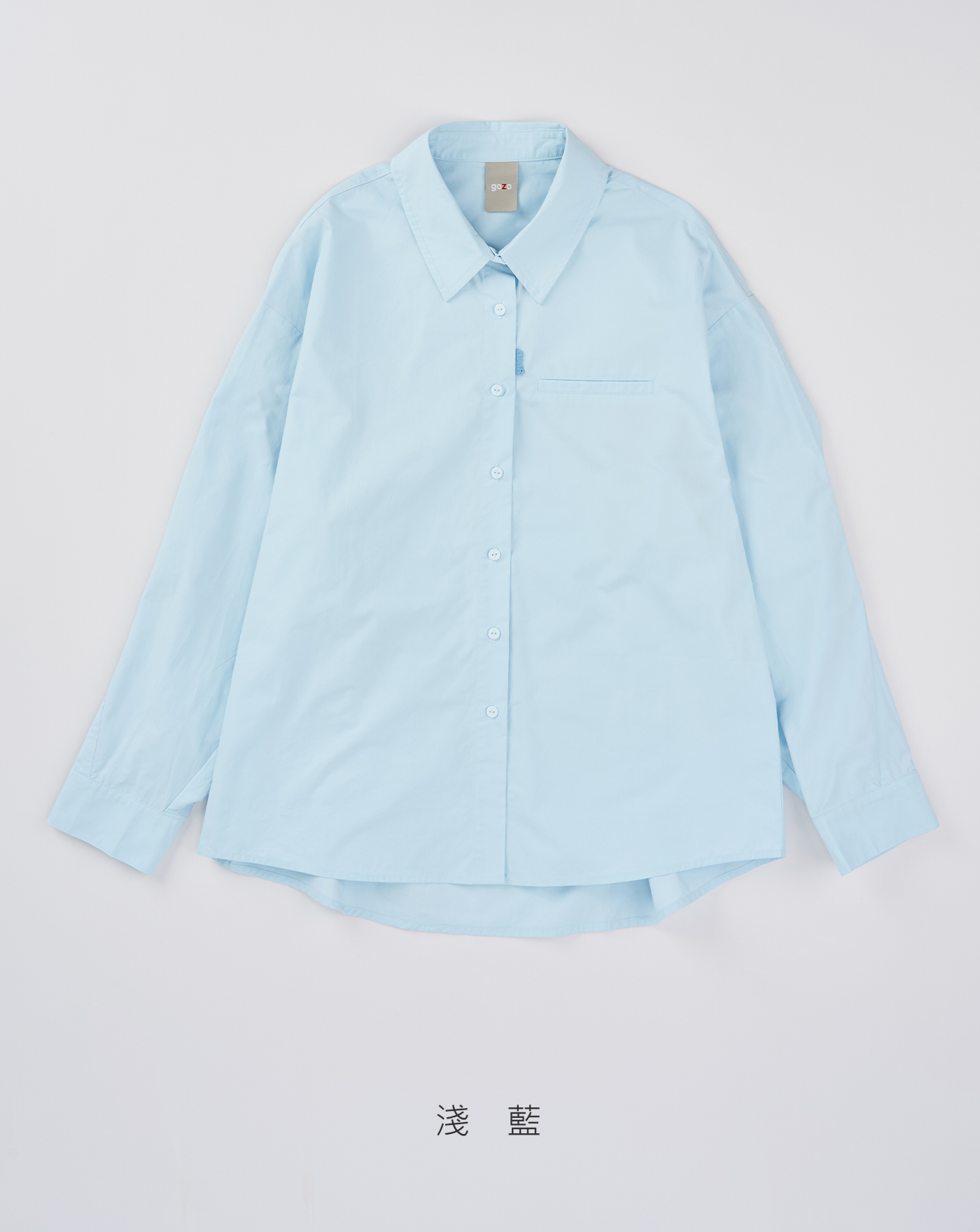 ➤撞色鈕釦造型口袋長版襯衫(兩色)