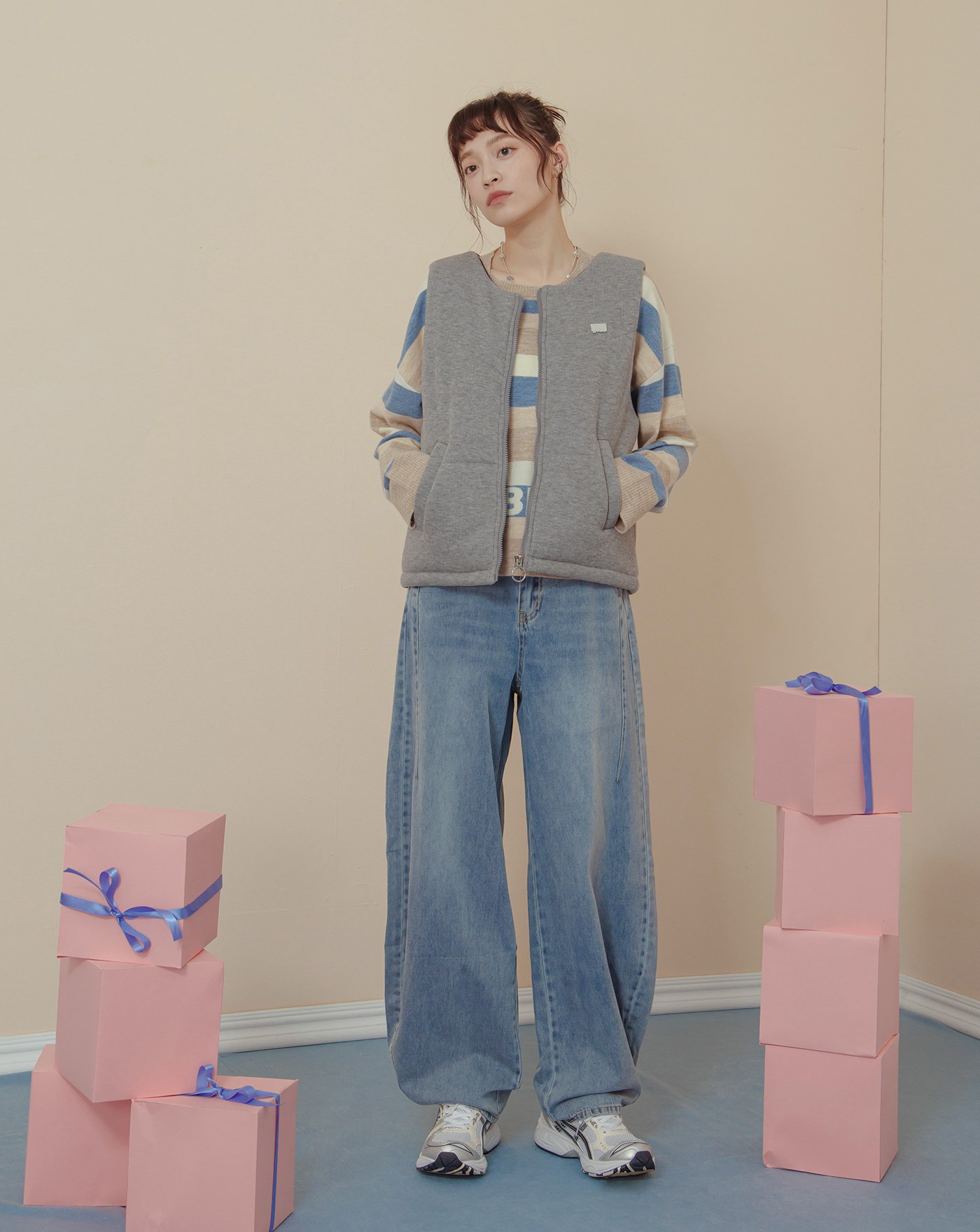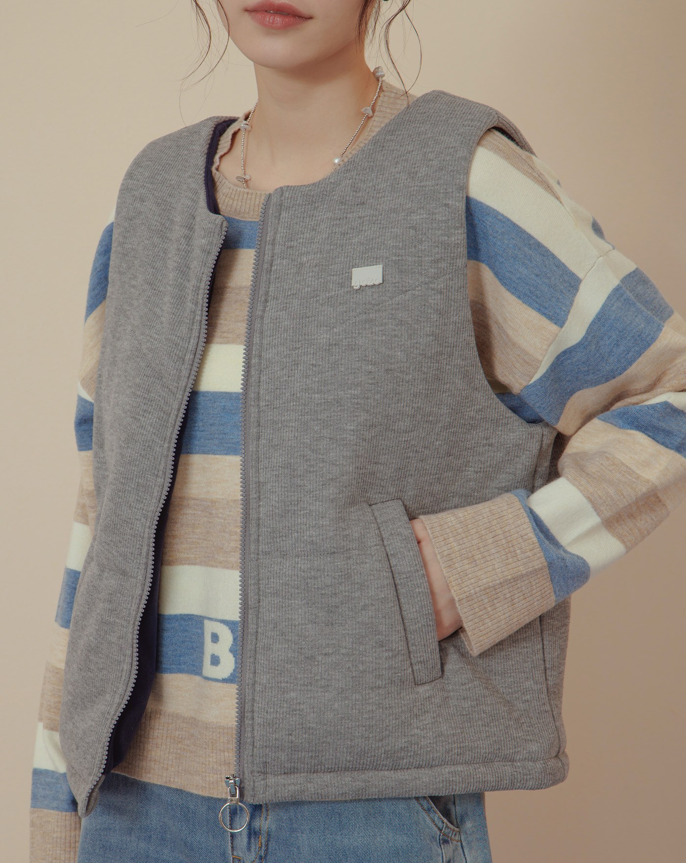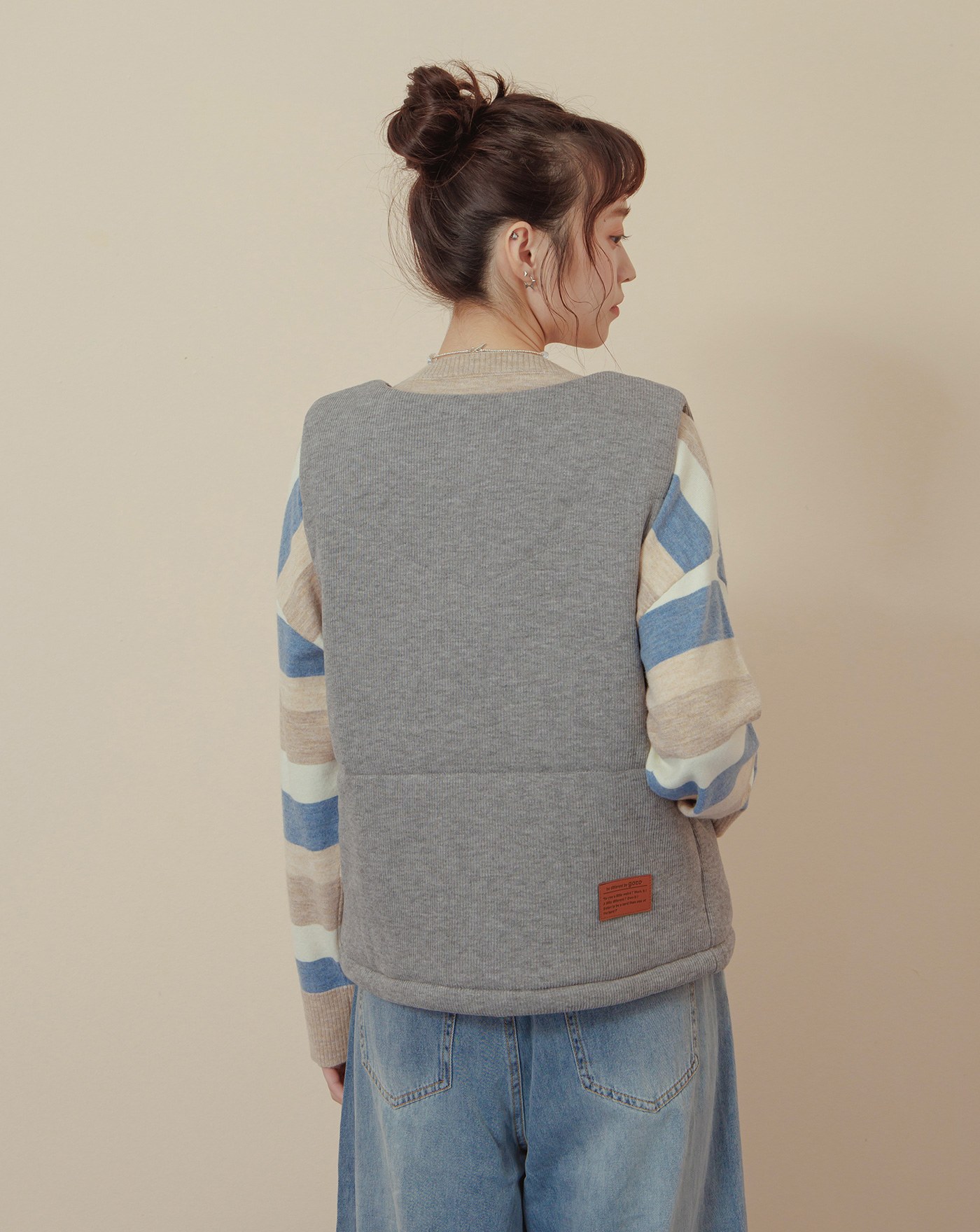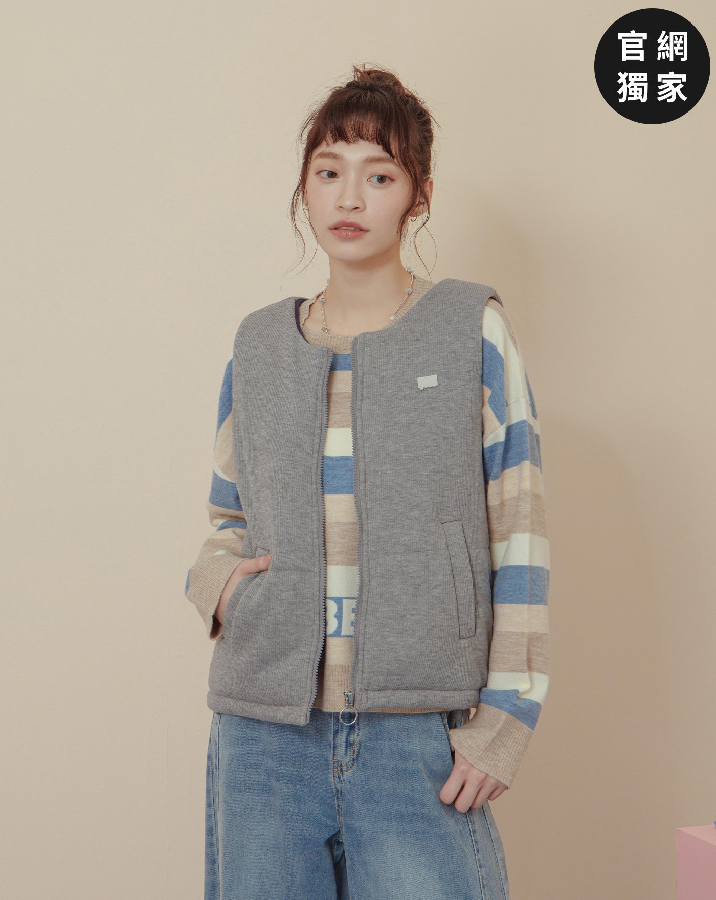 ➤仿羊絨坑條保暖拉鍊背心(兩色)