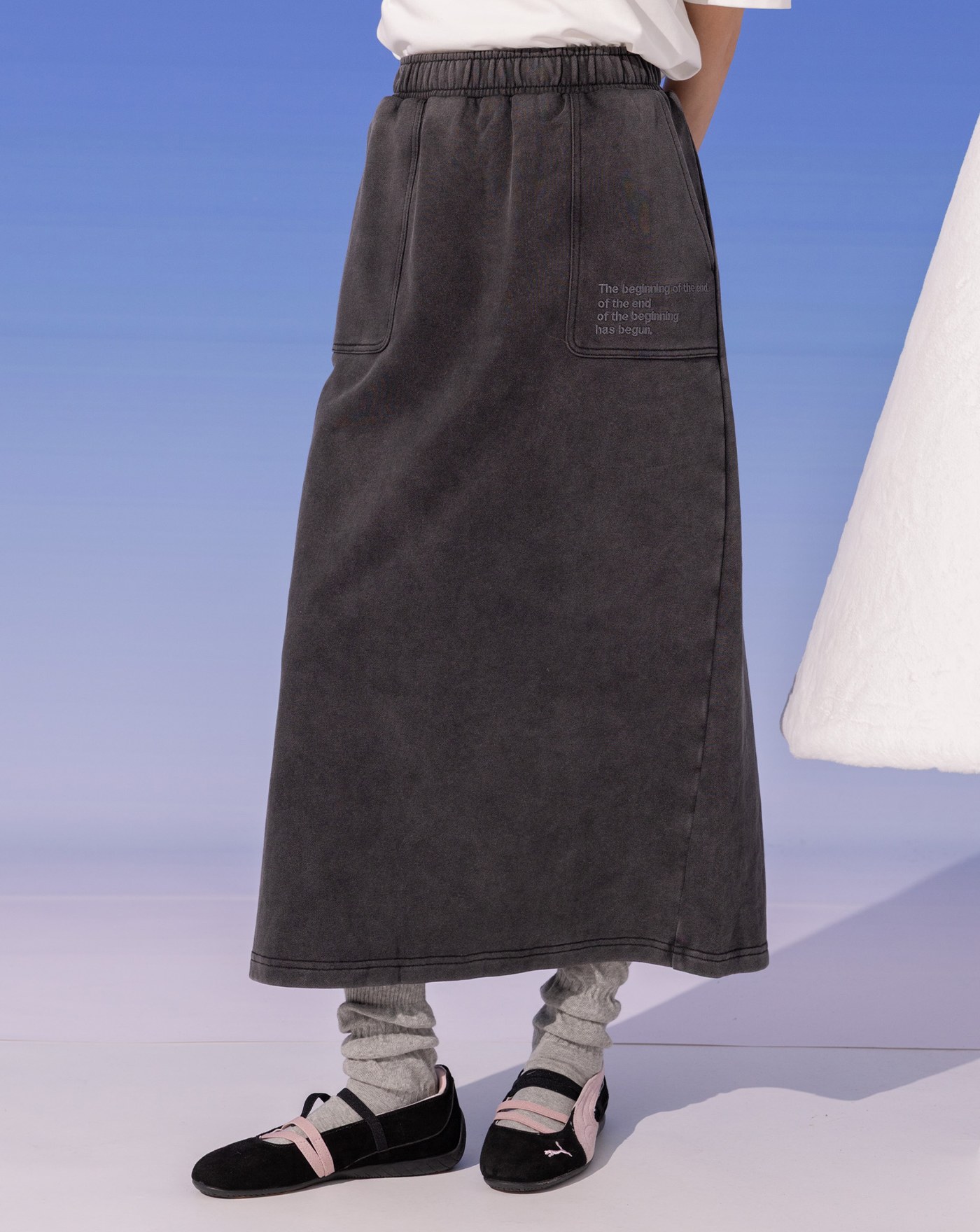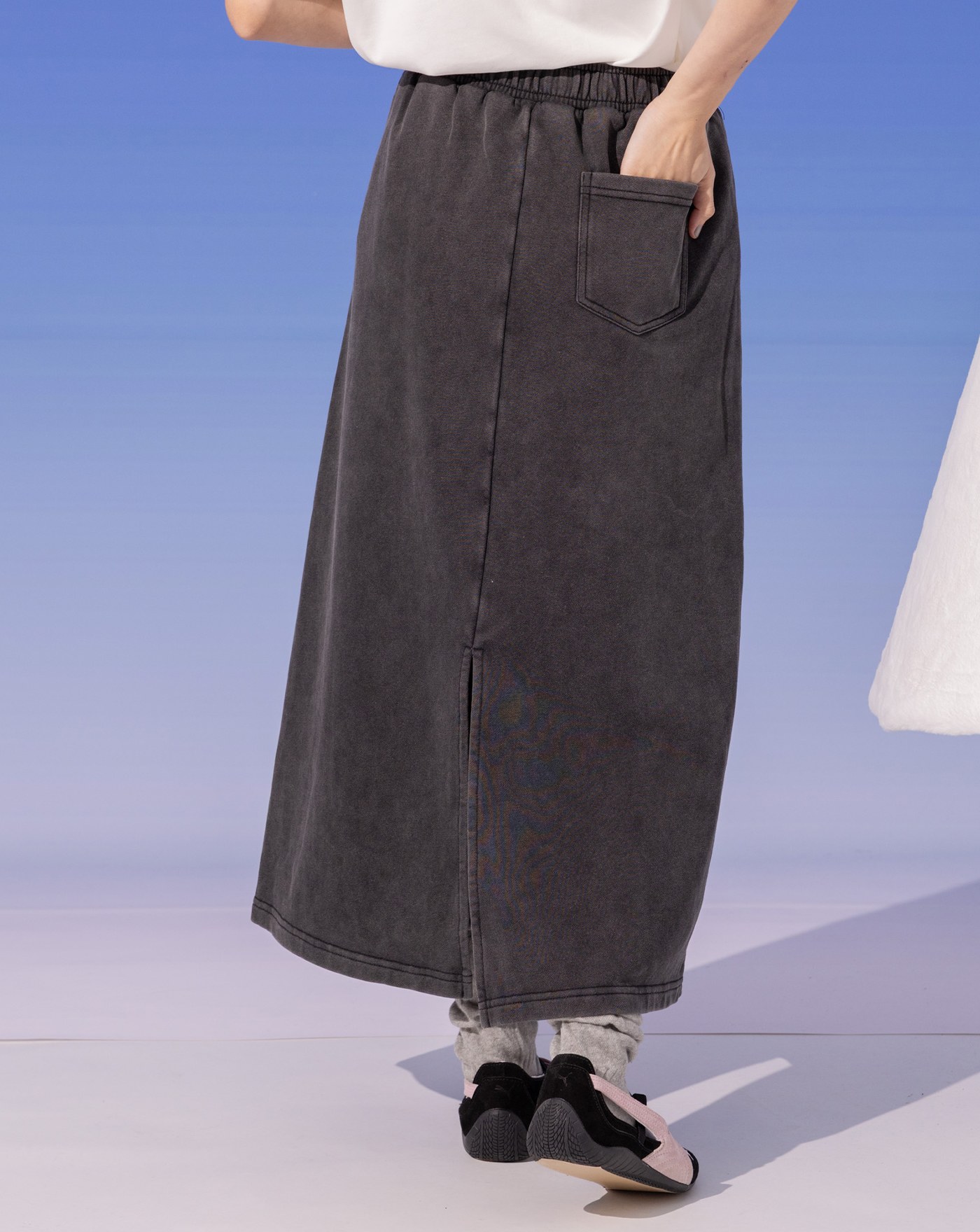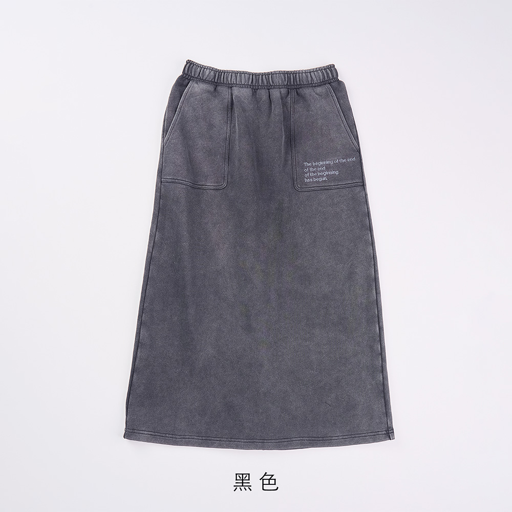A|水洗仿舊剪破純棉直筒長裙(兩色)