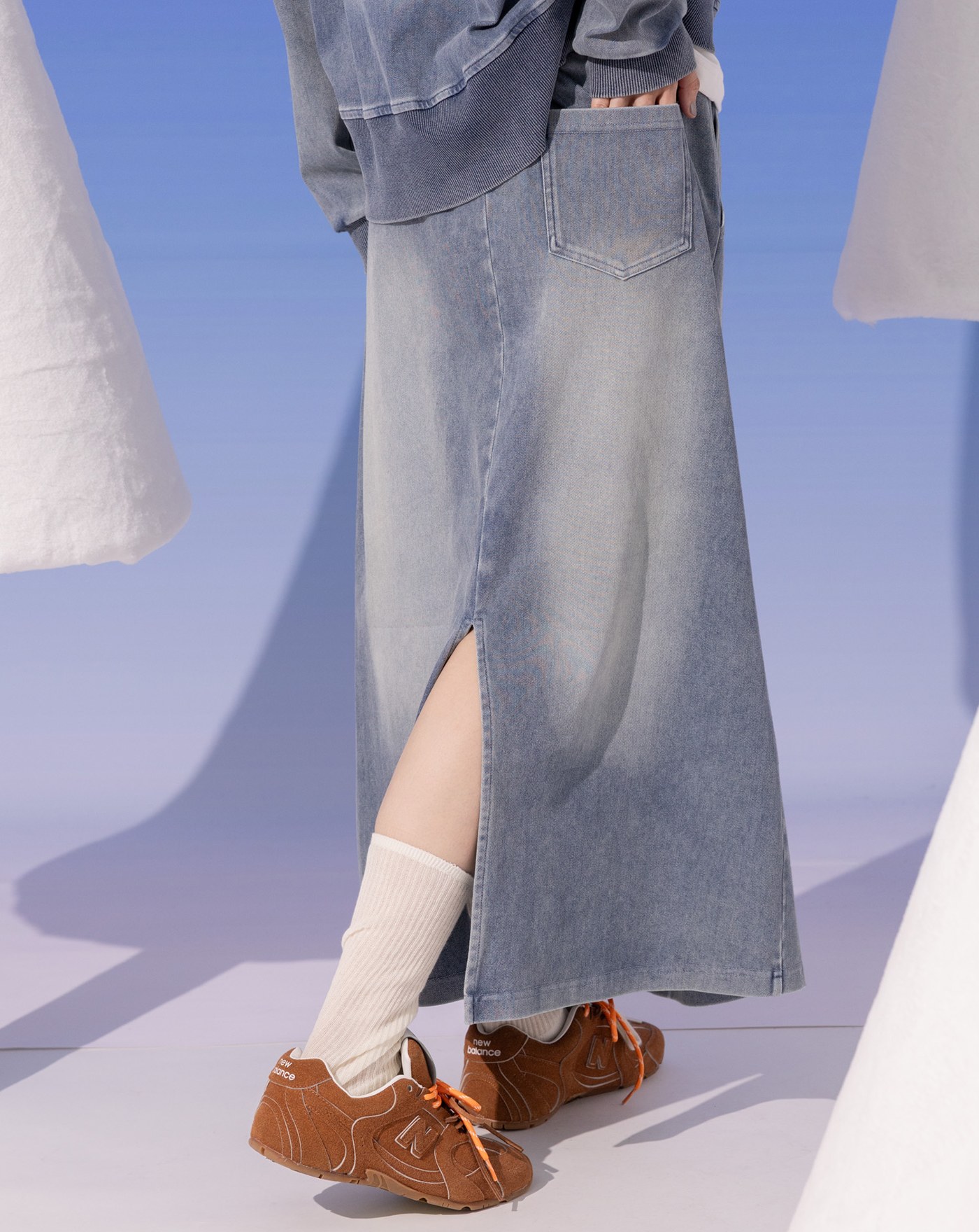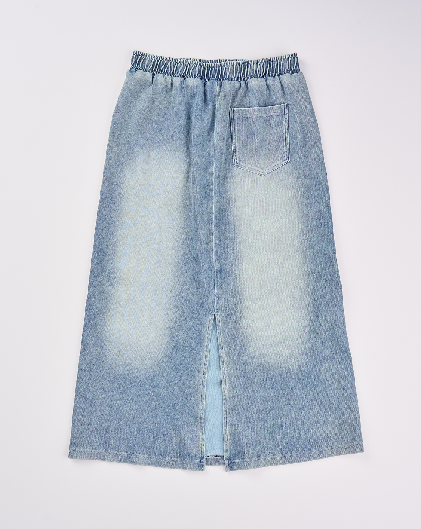 A|顯瘦異材質拼接水洗牛仔長裙(兩色)