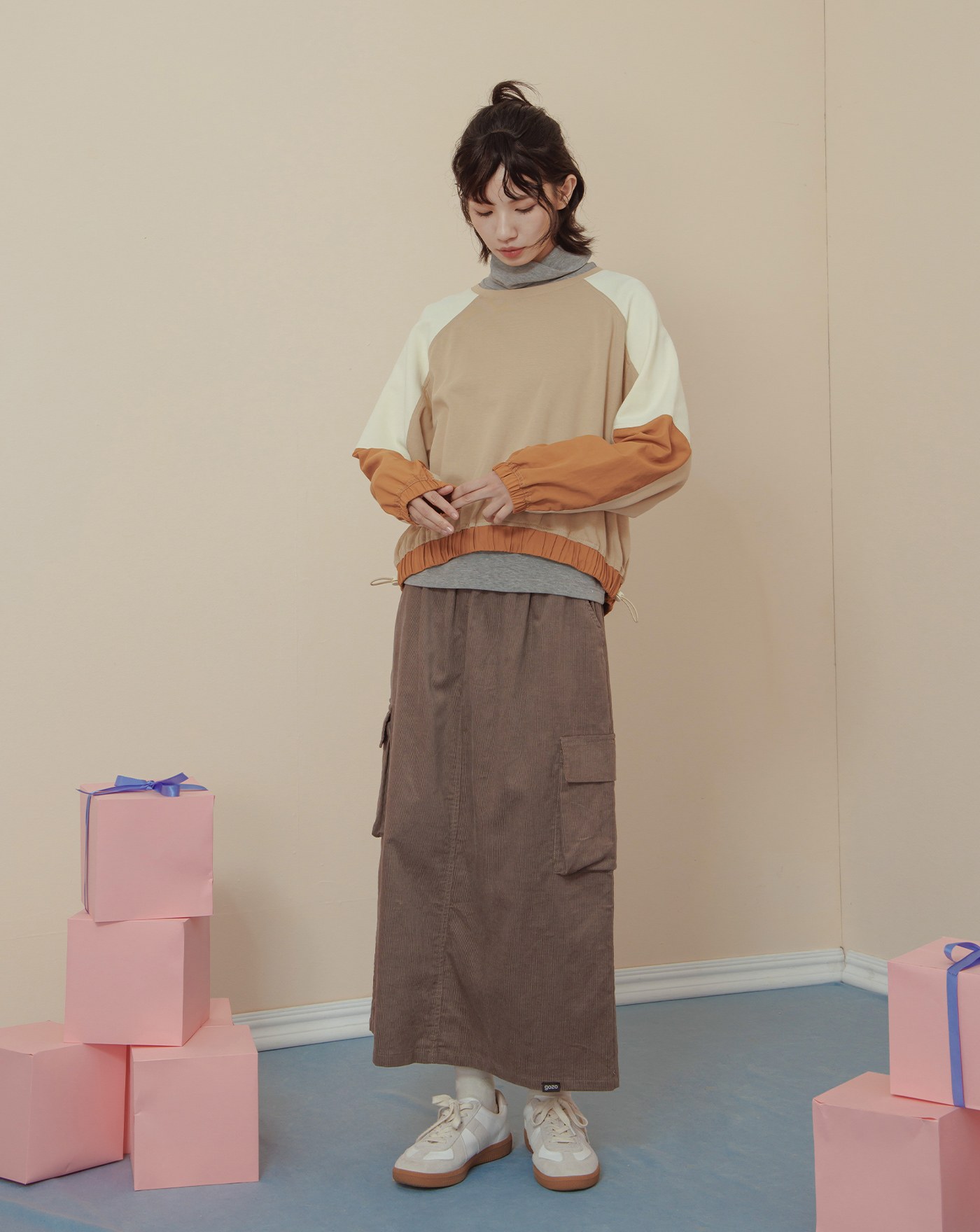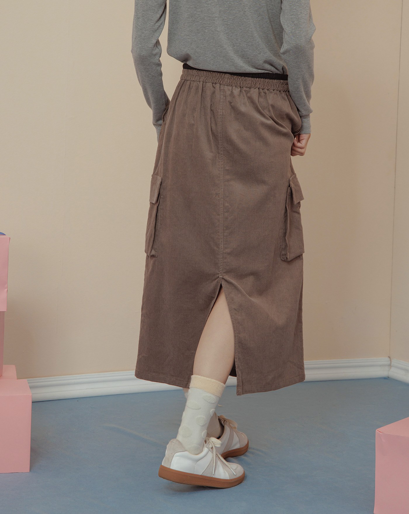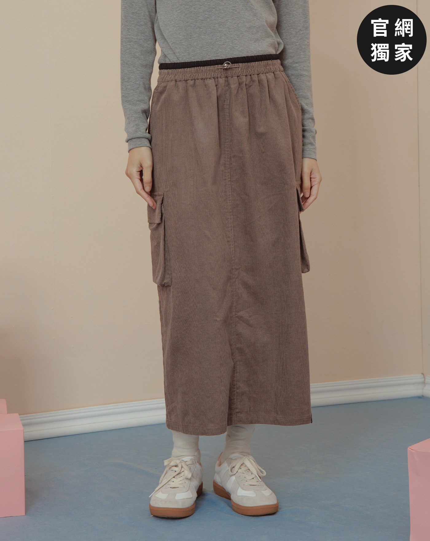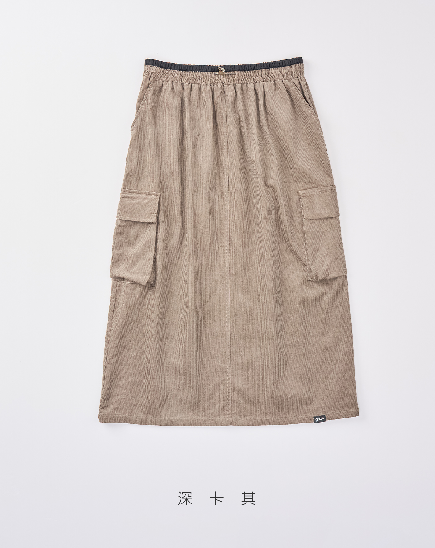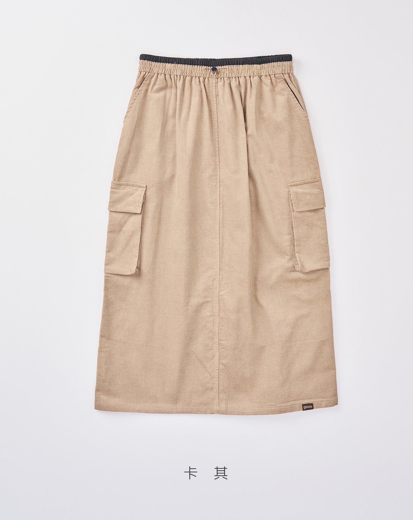 ➤腰圍可調節後開衩工裝風長裙(兩色)