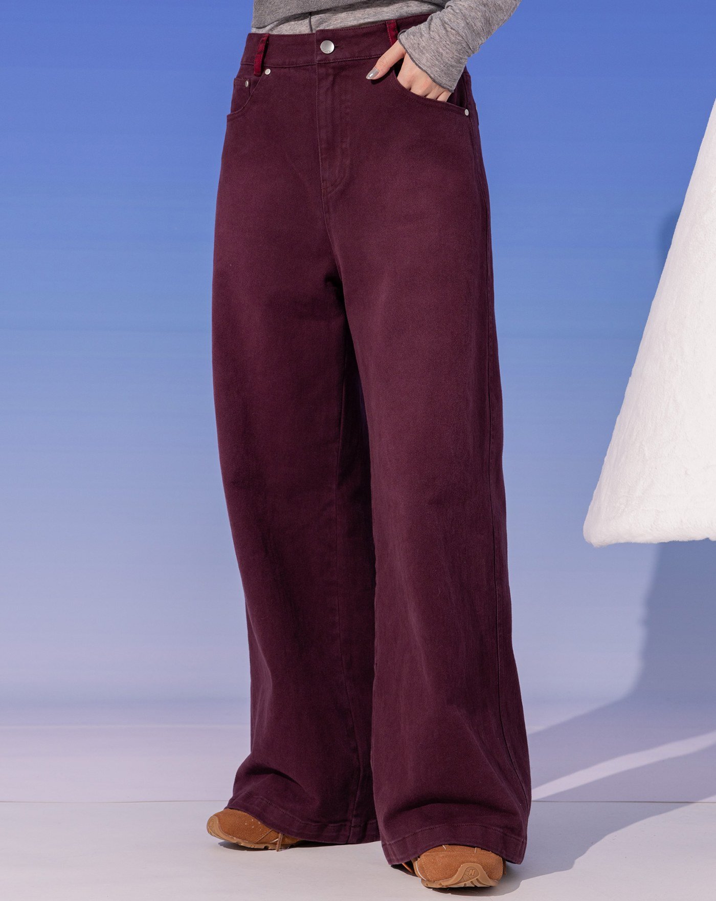 A|大反折品牌標語繡花天絲水洗牛仔寬褲