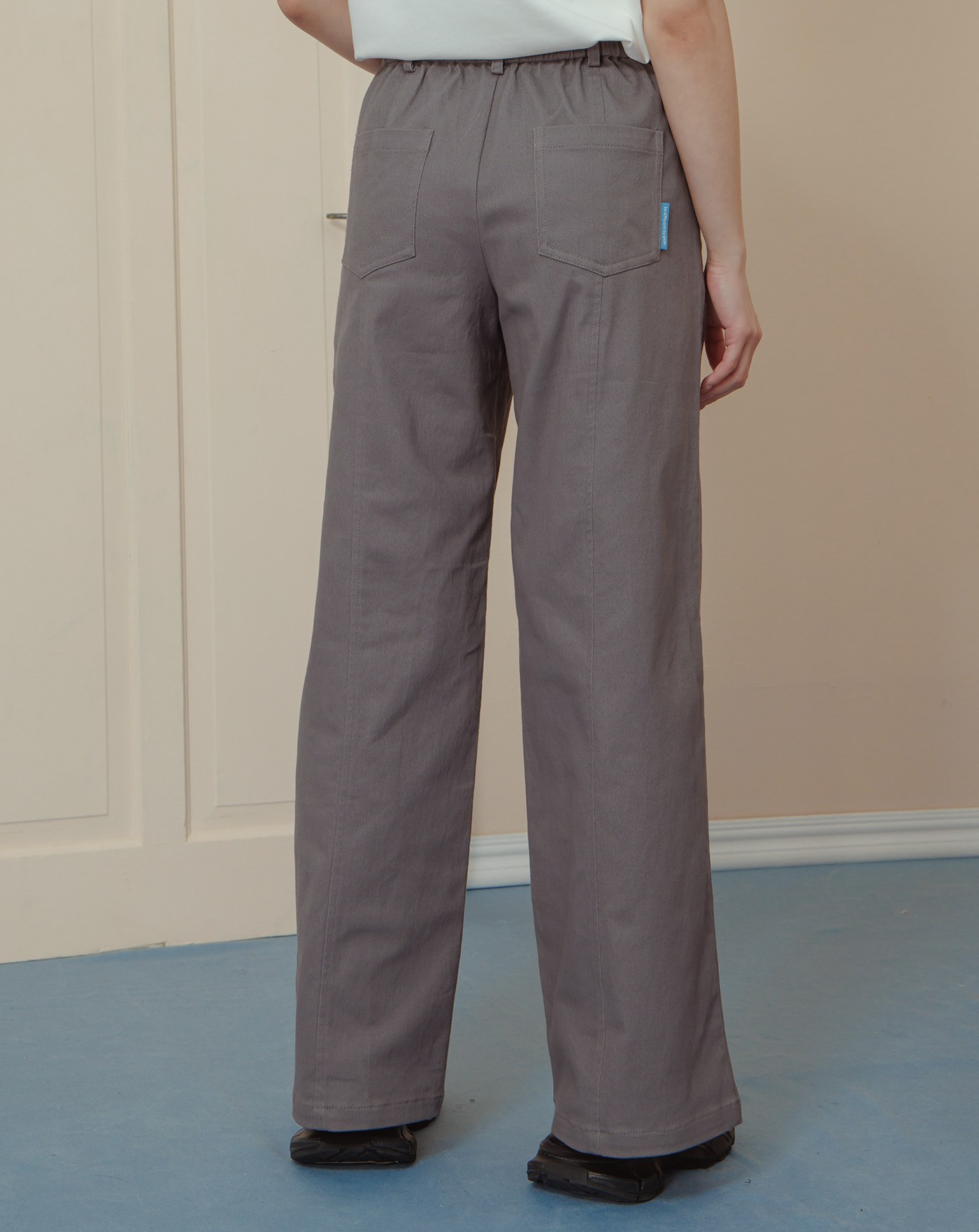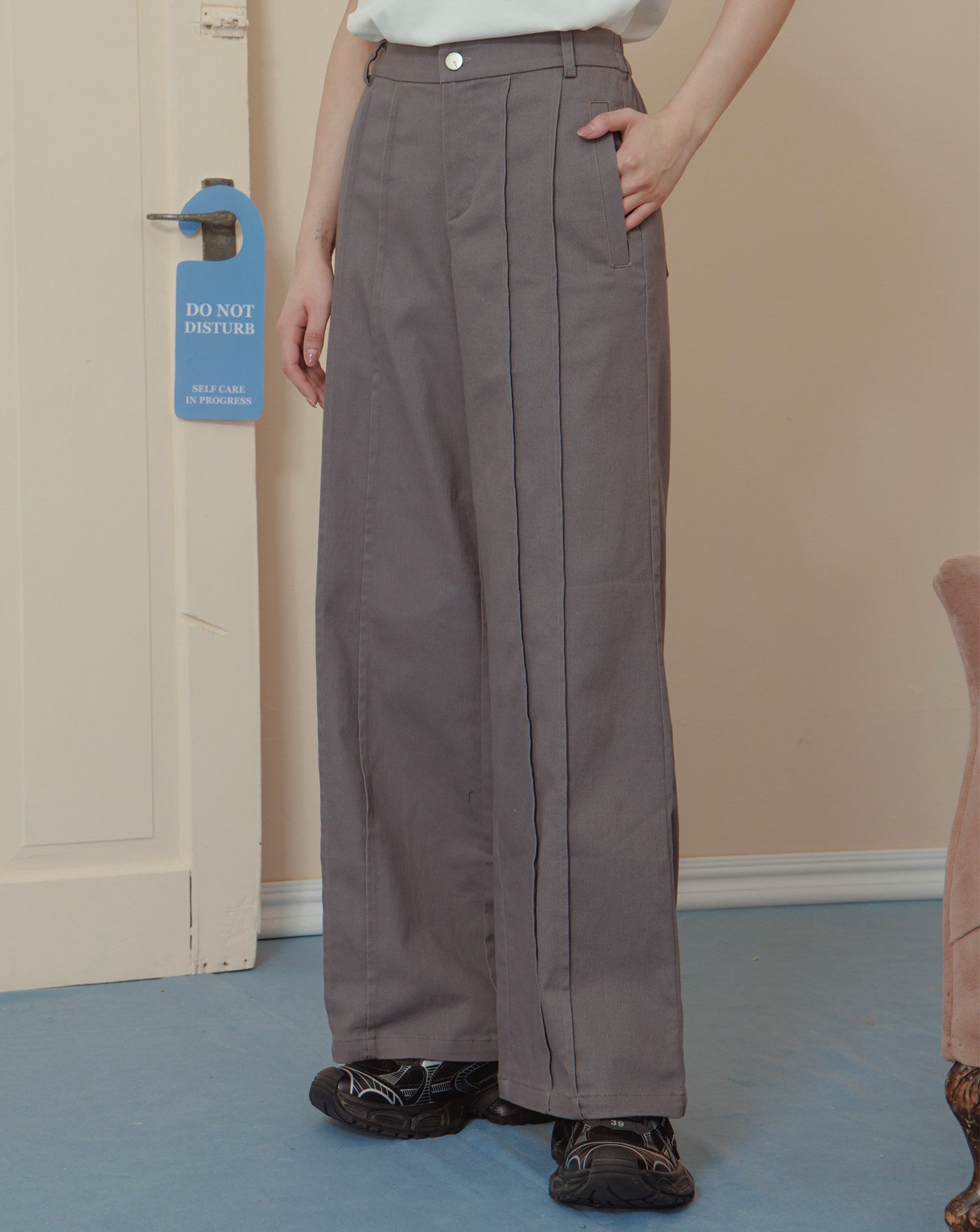 顯瘦剪接水洗腰頭抽鬚廓型褲(兩色)