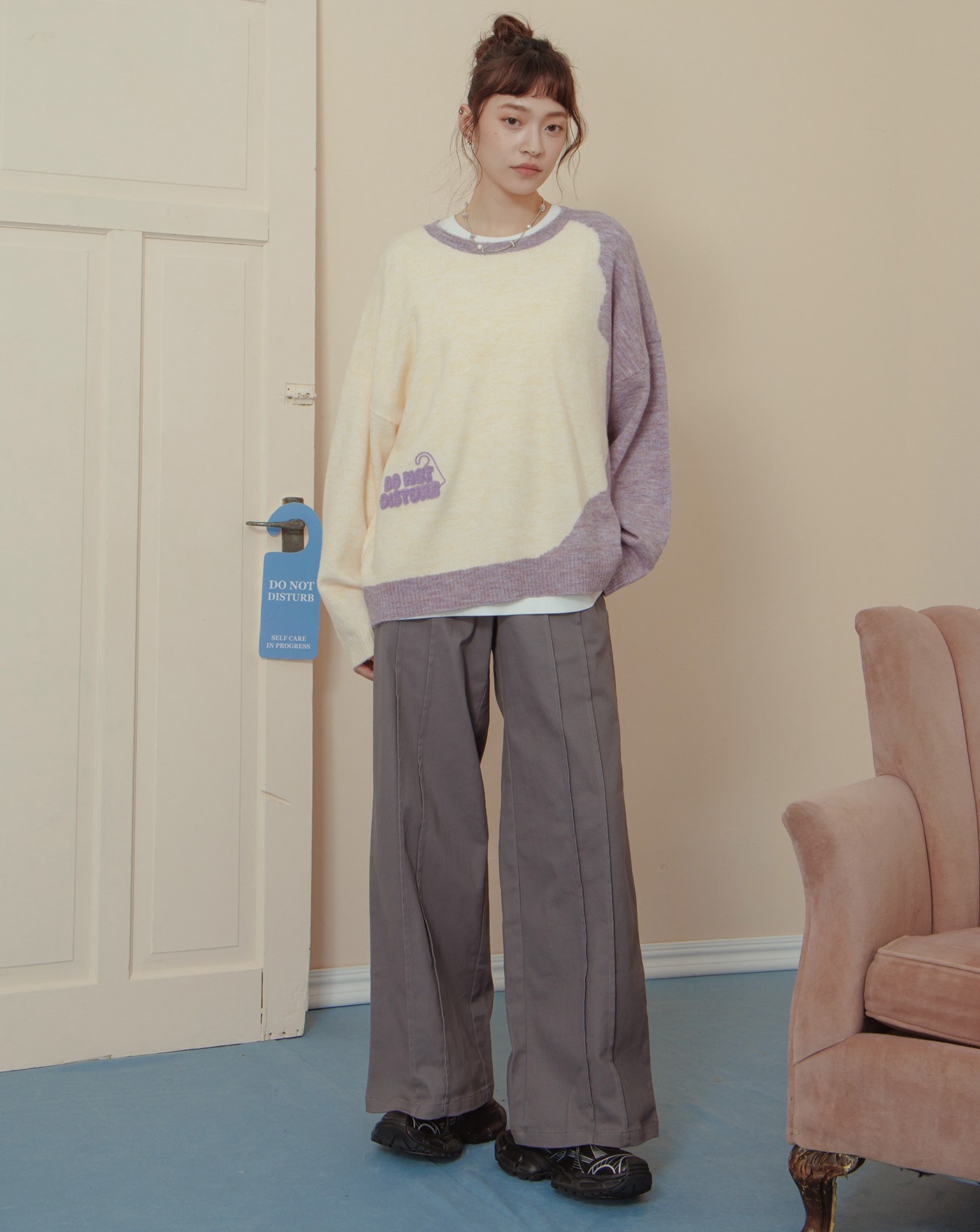 A|立體顆粒針織口袋造型直筒寬褲(兩色)