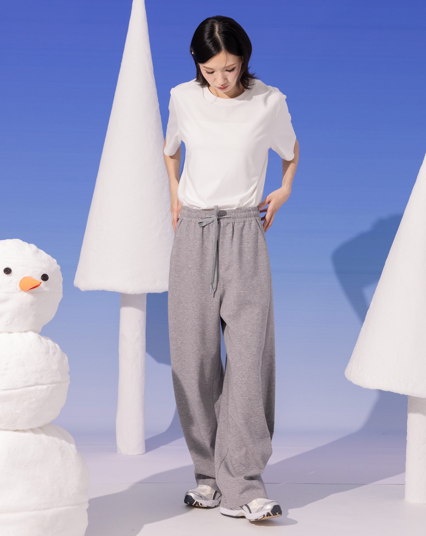 涼感天絲顯瘦剪接褲腳抽繩寬褲(兩色)