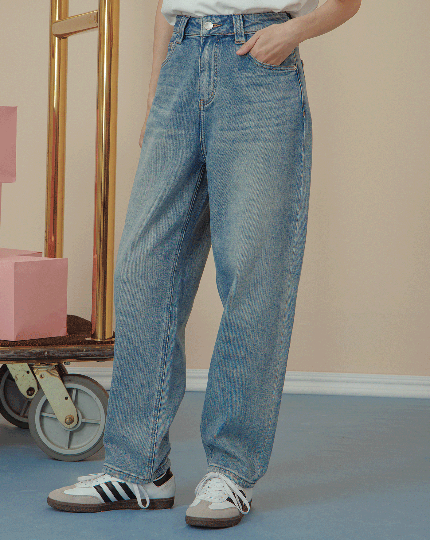 ➤好比例顯瘦剪接直筒牛仔褲(兩色)