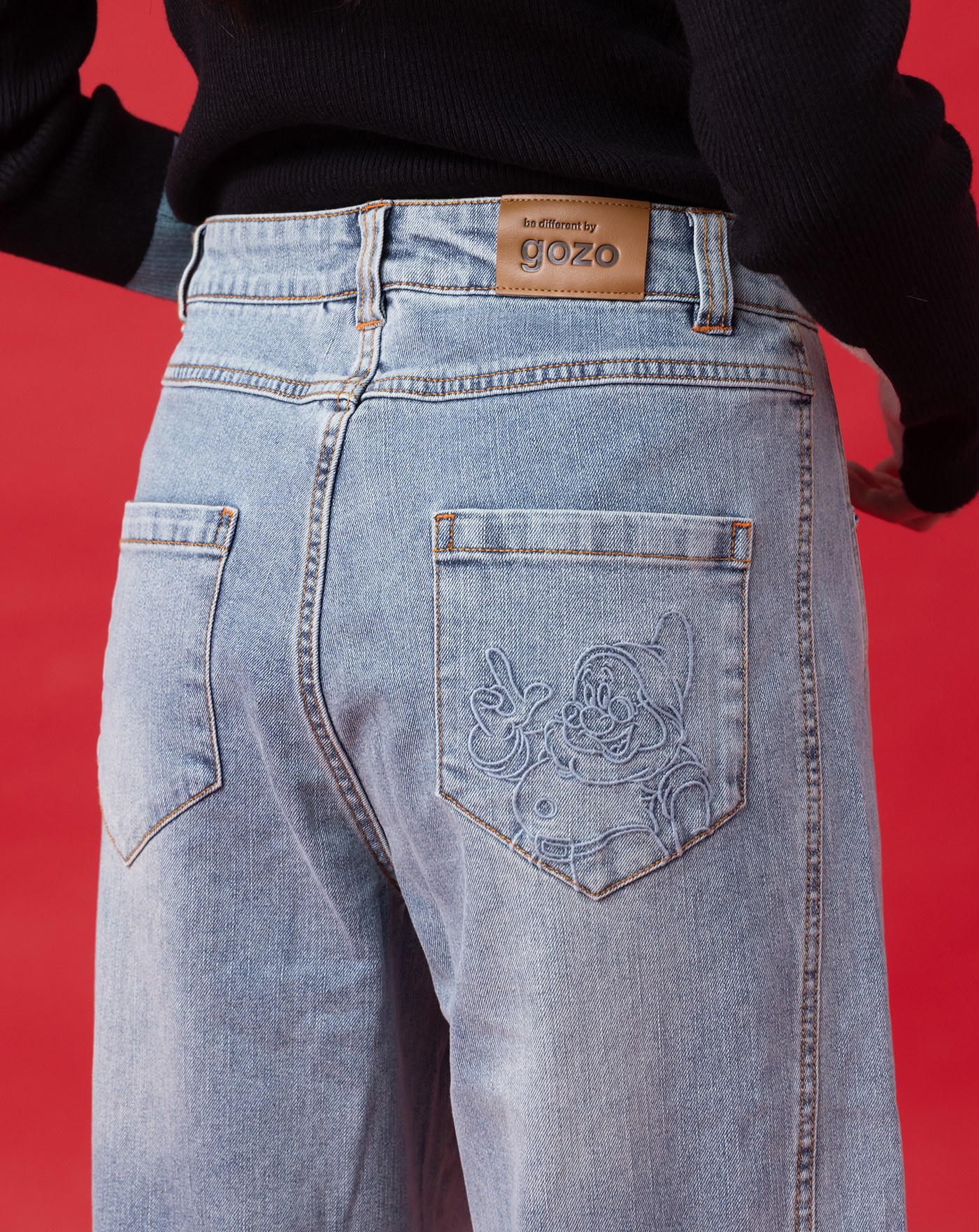 迪士尼系列 小矮人繡花復古格紋長袖襯衫(兩色)