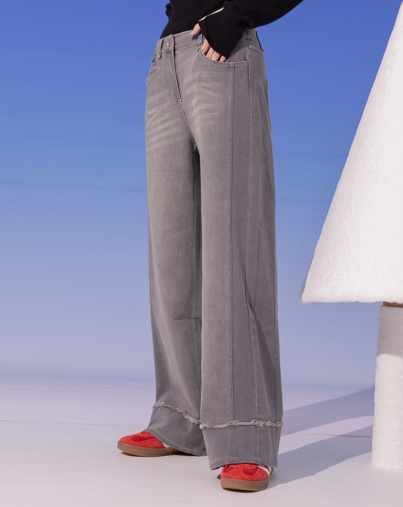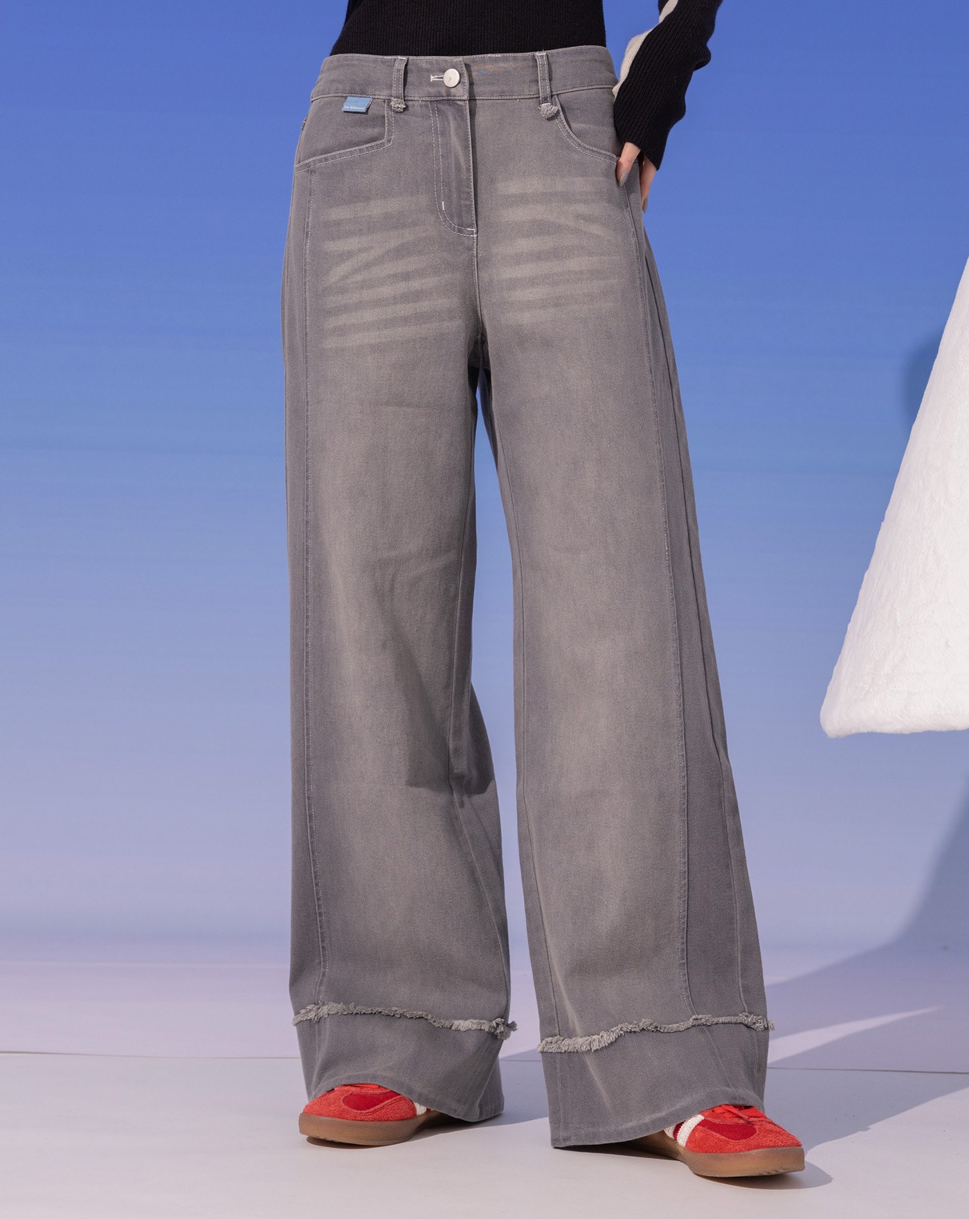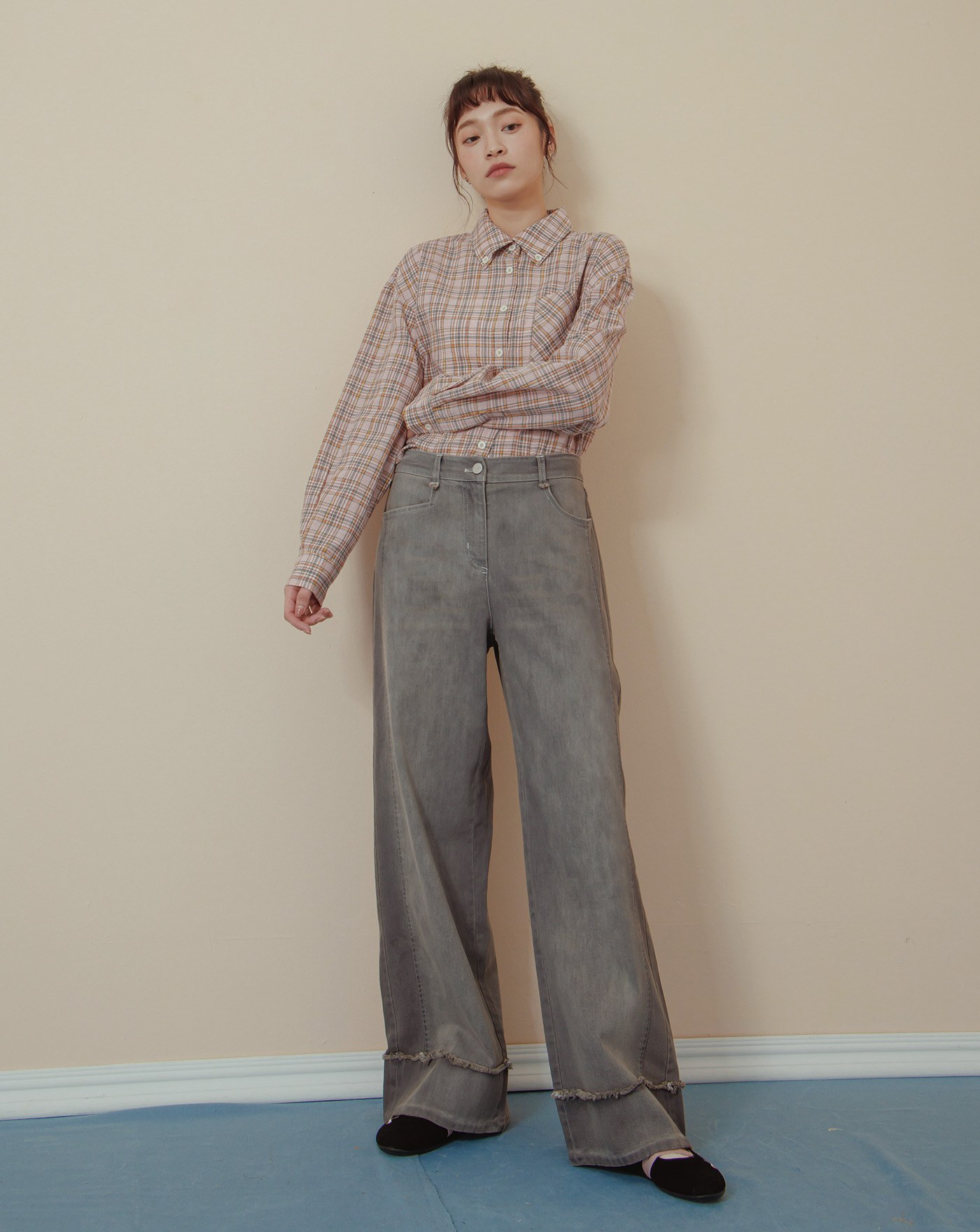 shadow顯瘦好比例仿牛仔直筒寬褲 (兩色)