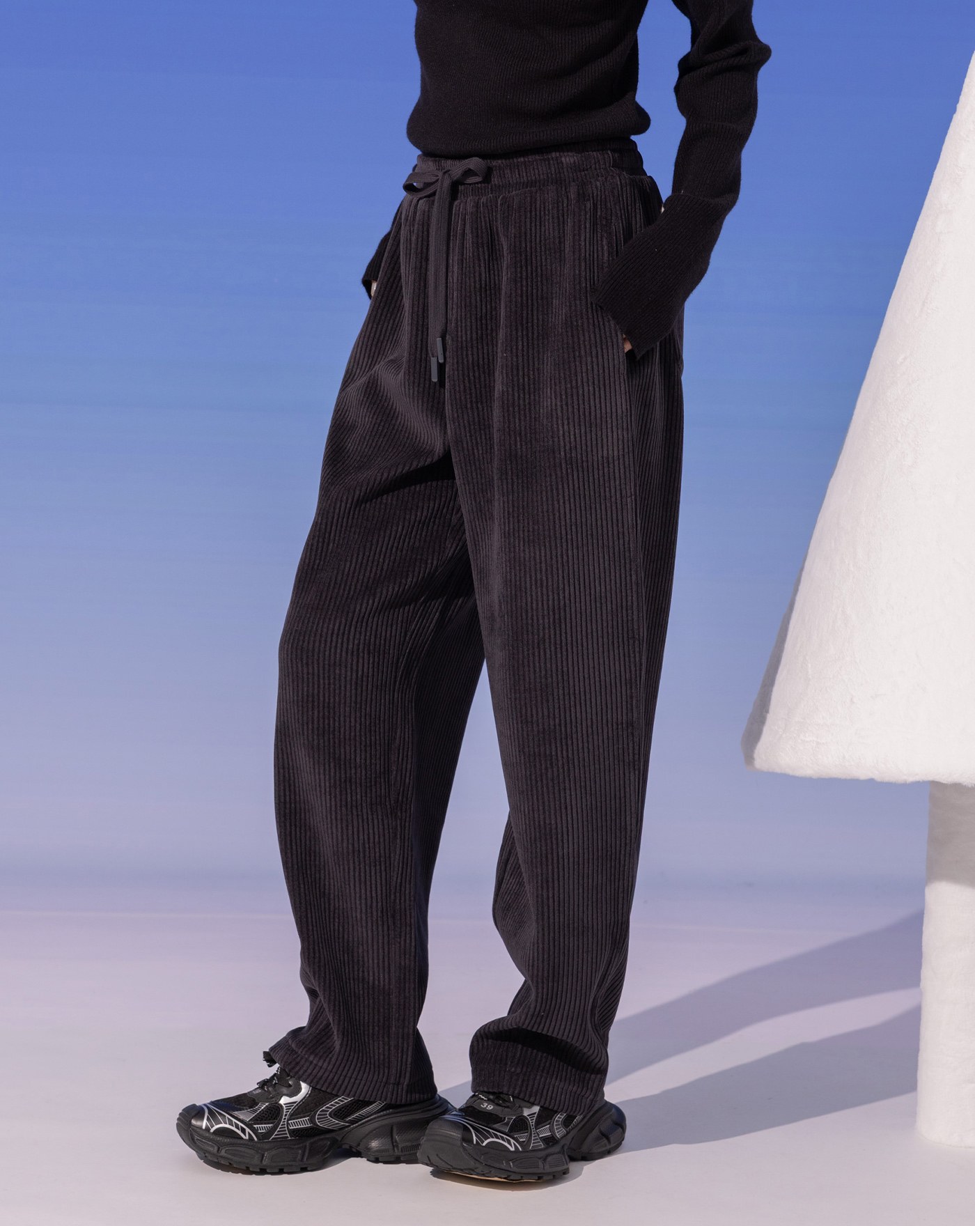 側邊顯瘦剪接抽繩鬆緊長褲(兩色)
