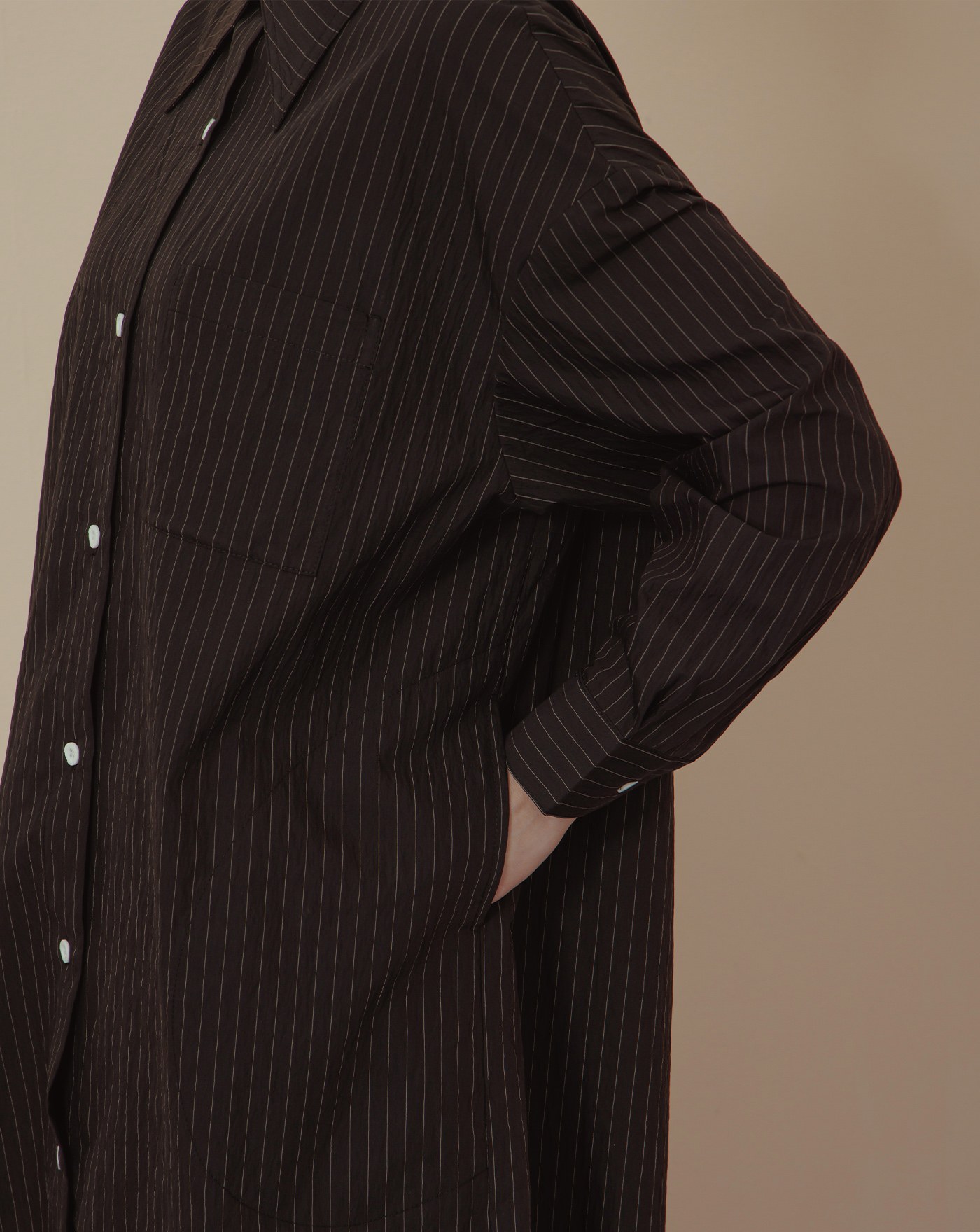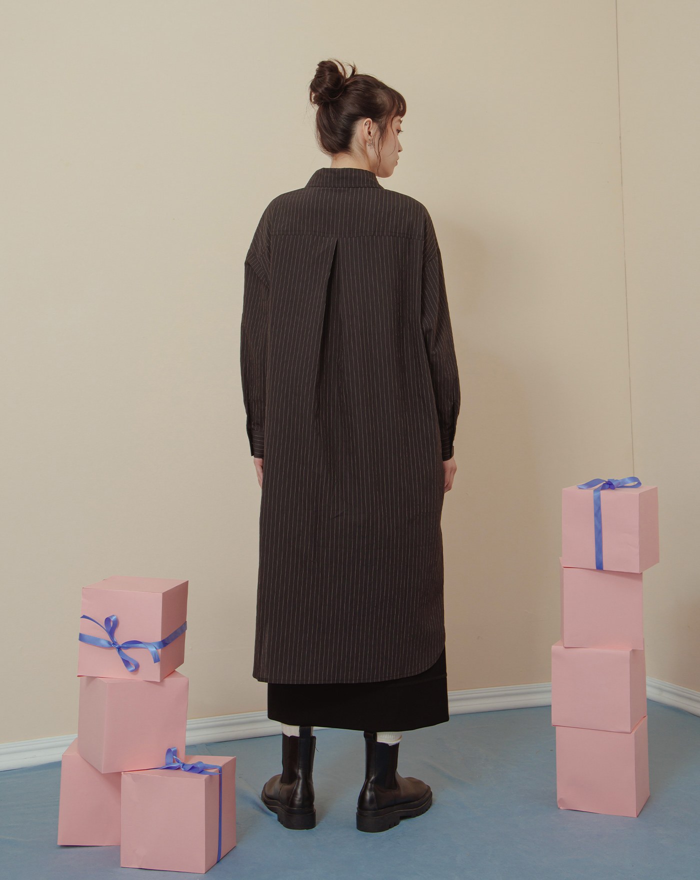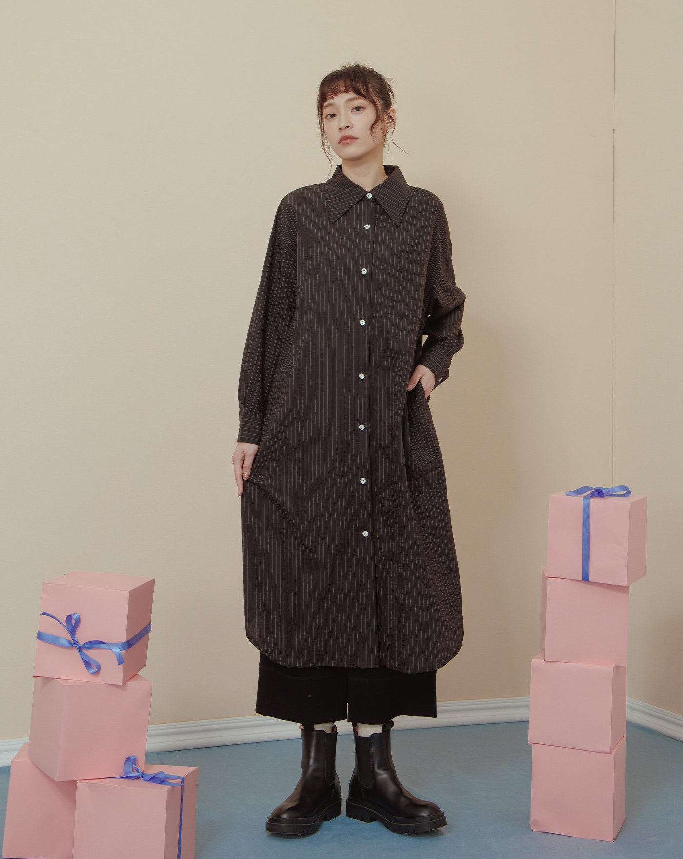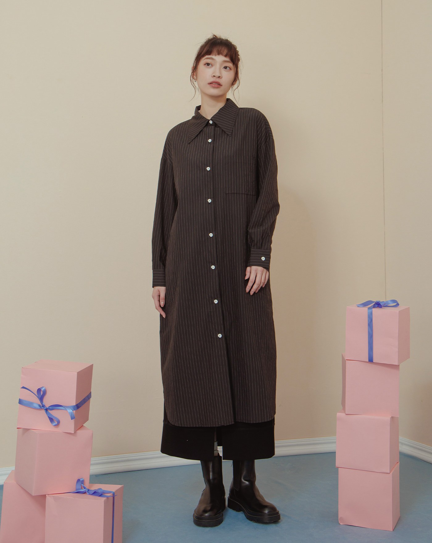 輕薄線條織紋綁帶開襟襯衫洋裝(兩色)
