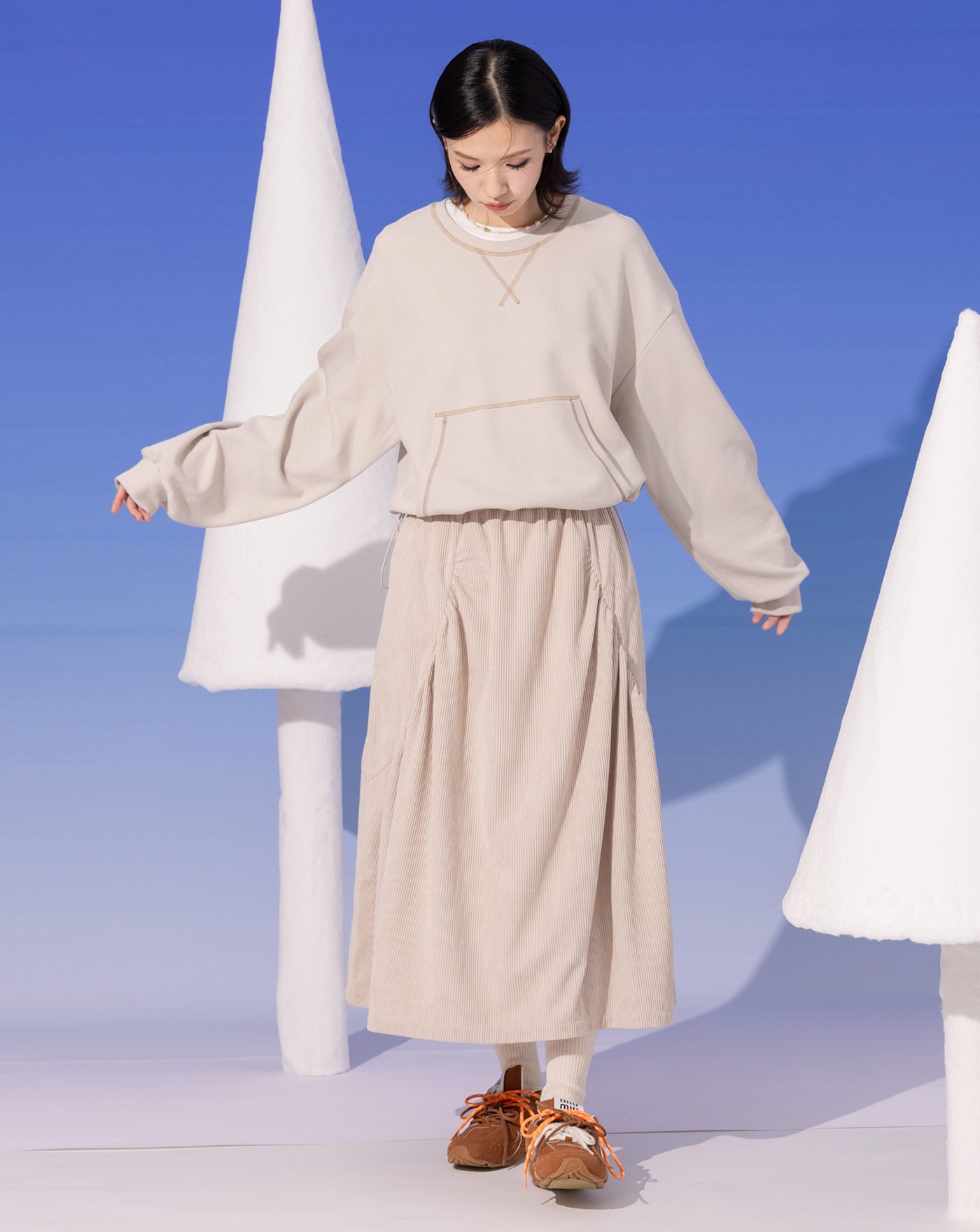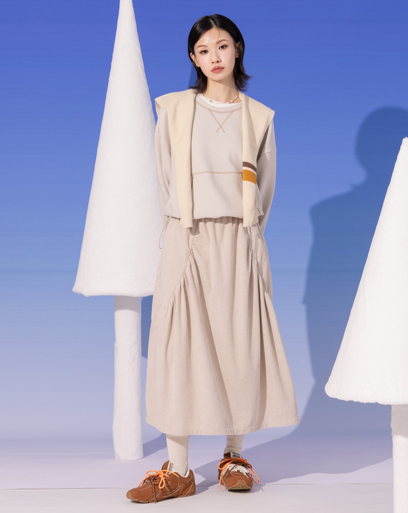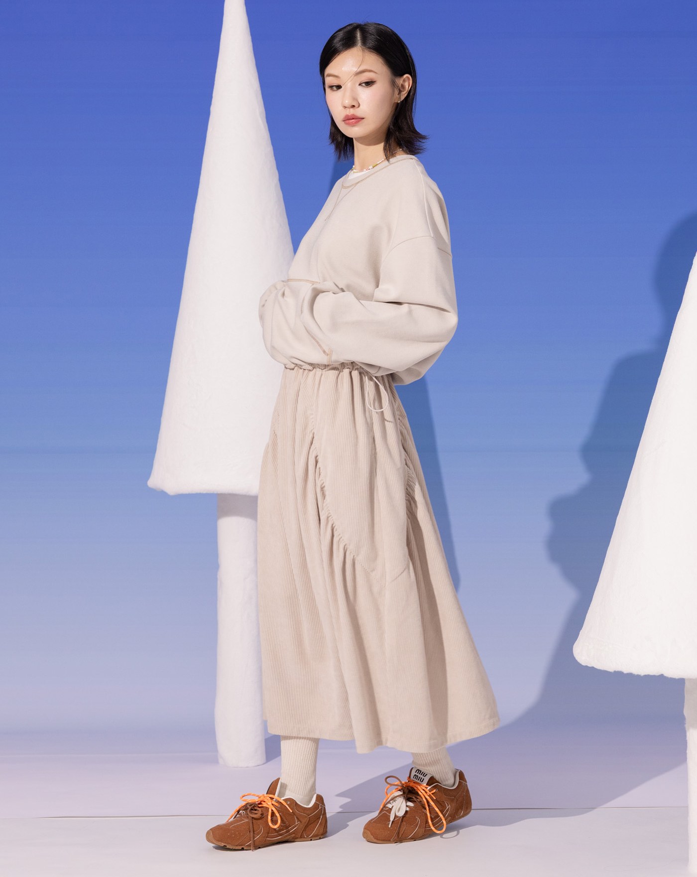 ➤洗滌小標半開襟條絨長袖洋裝(兩色)