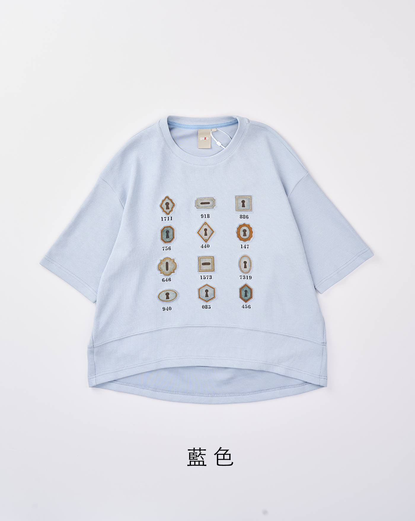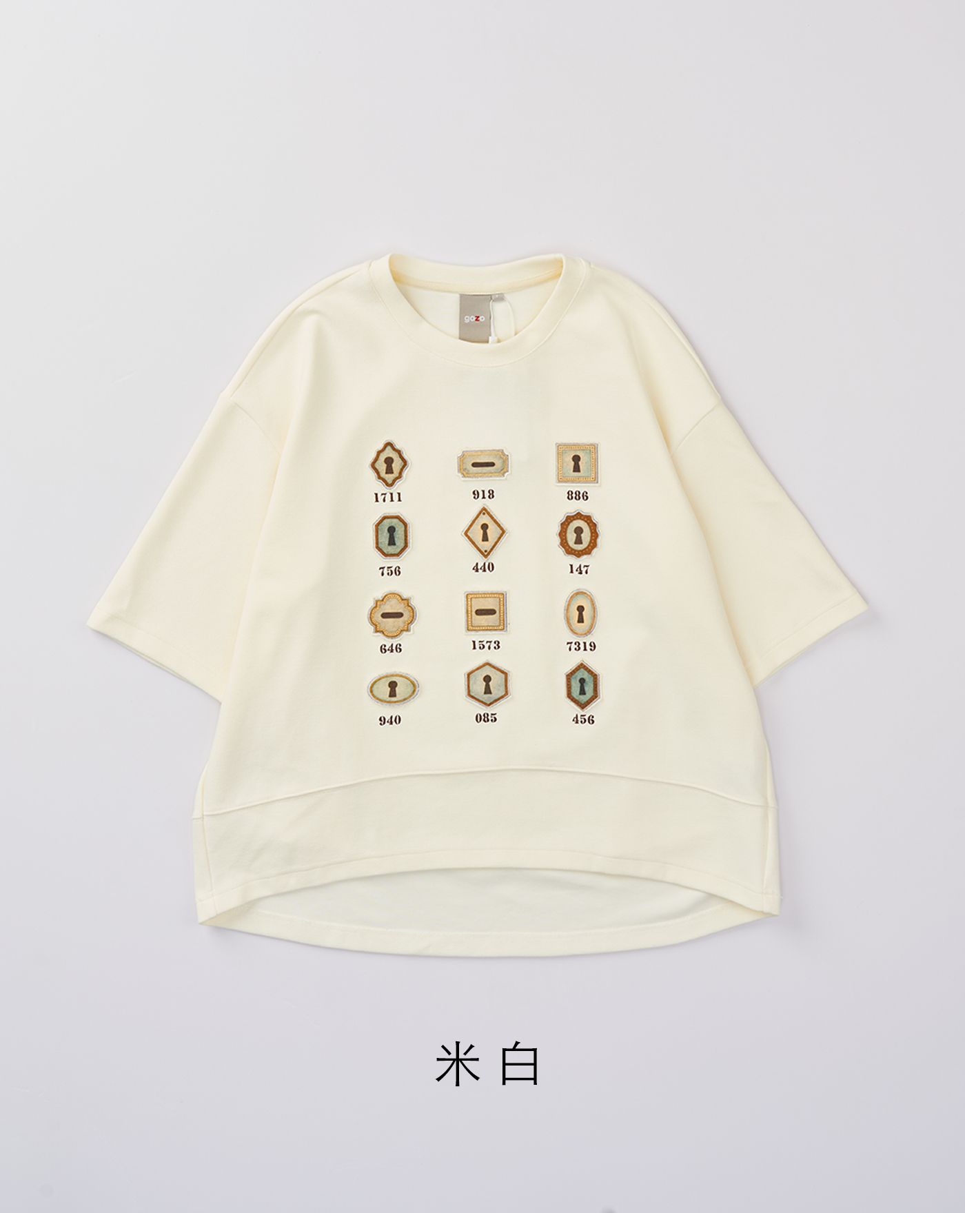 鑰匙圖鑑斑紋印花下擺開衩T恤(兩色)
