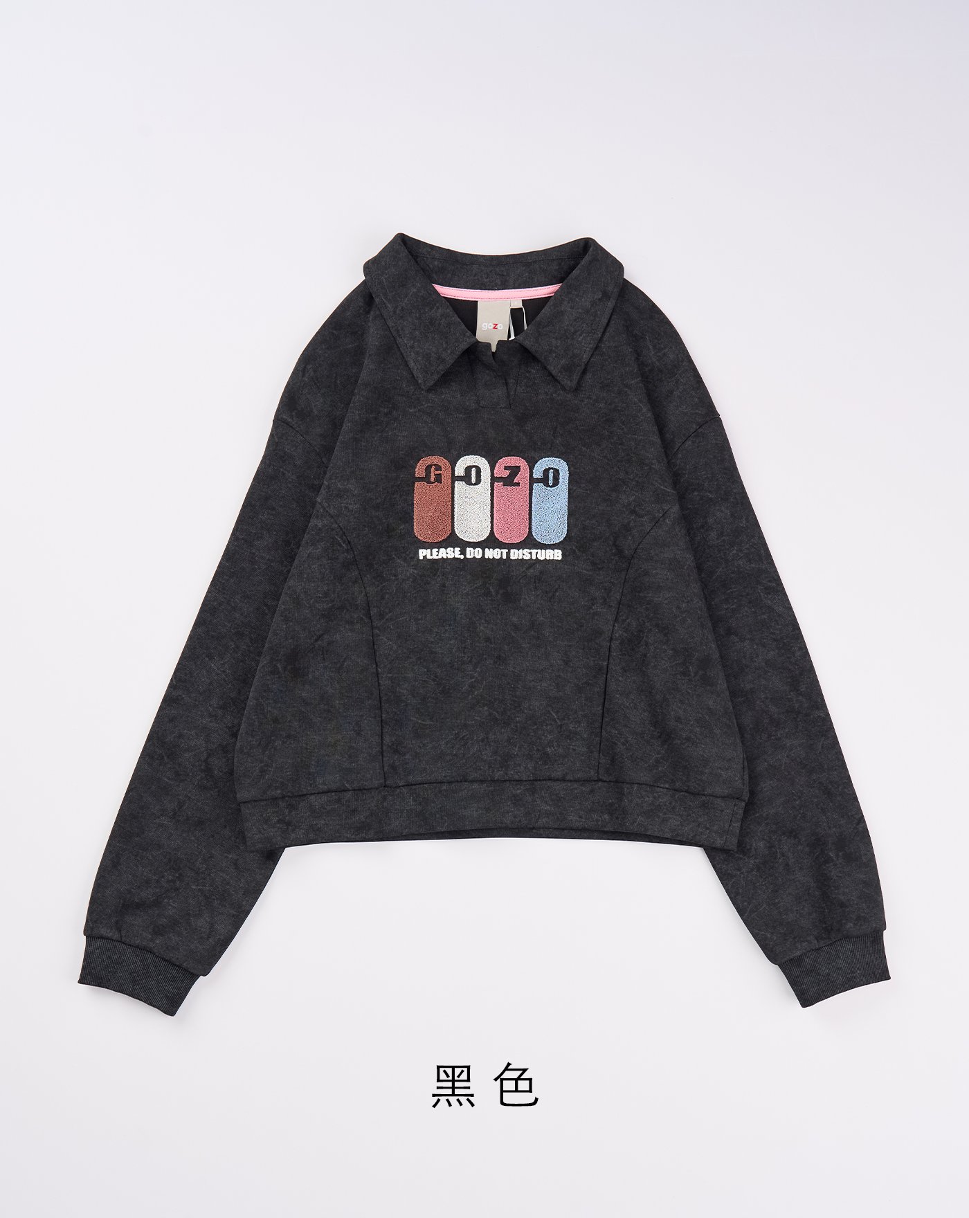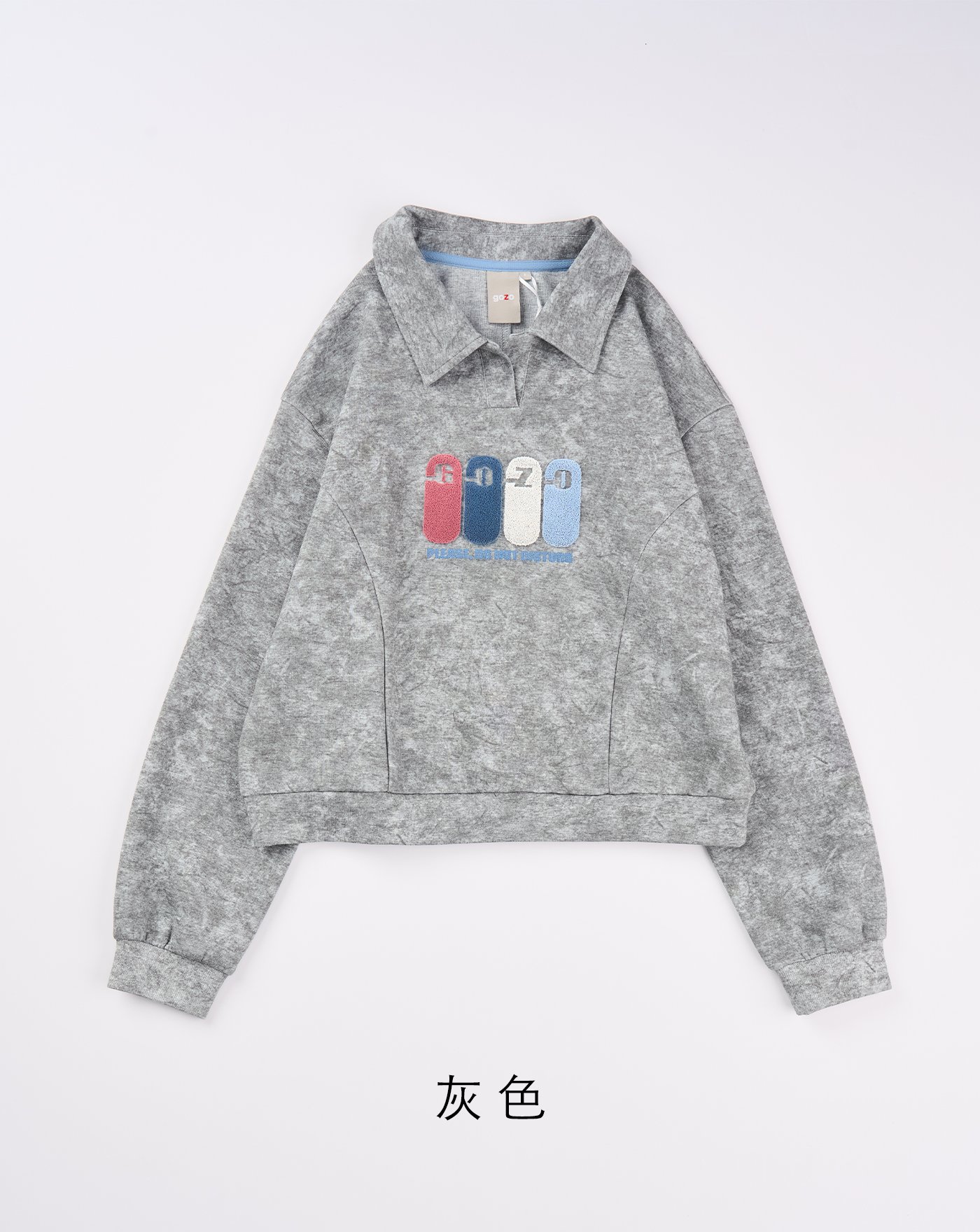 造型半開襟拉鍊側口袋短版上衣(兩色)