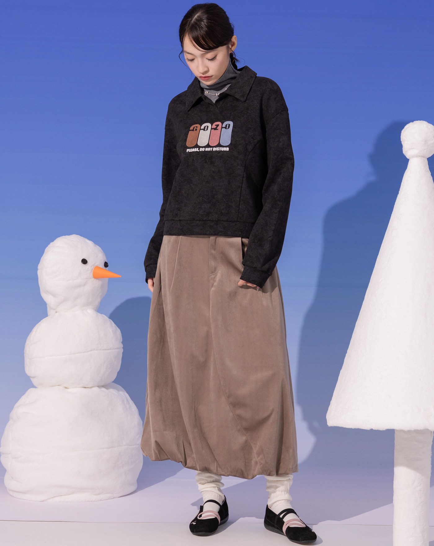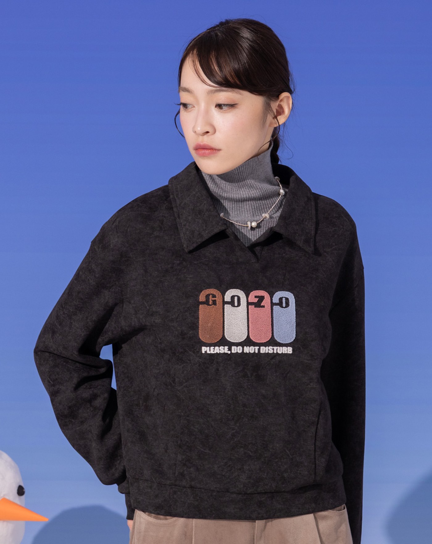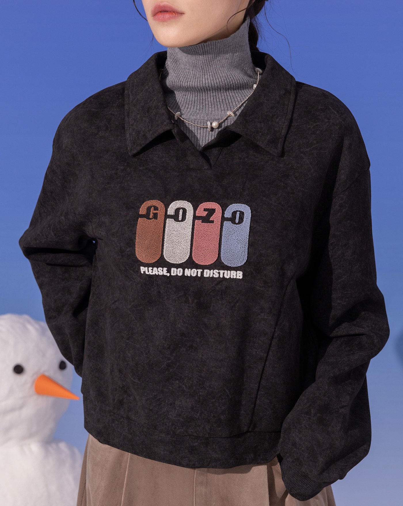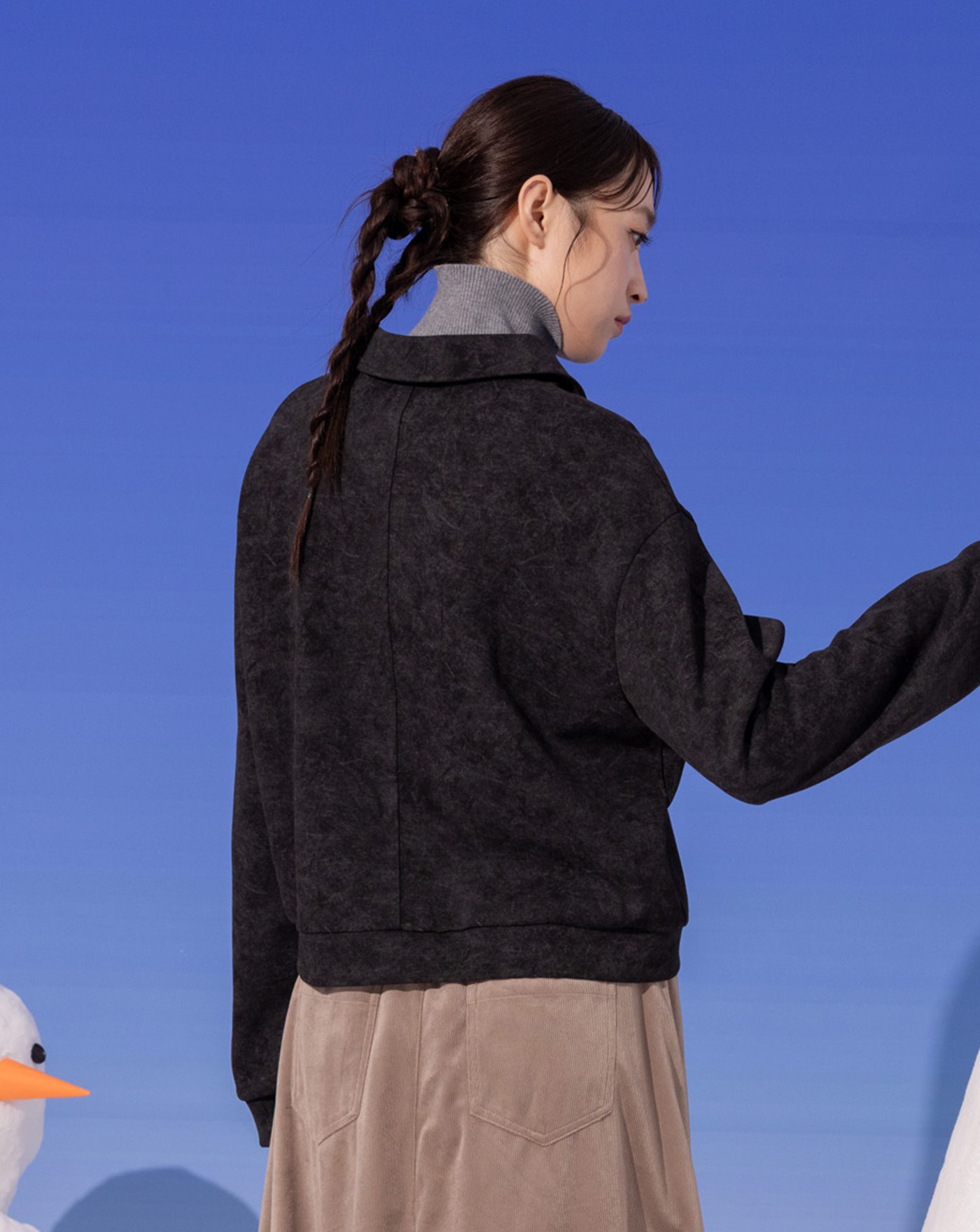 造型半開襟拉鍊側口袋短版上衣(兩色)