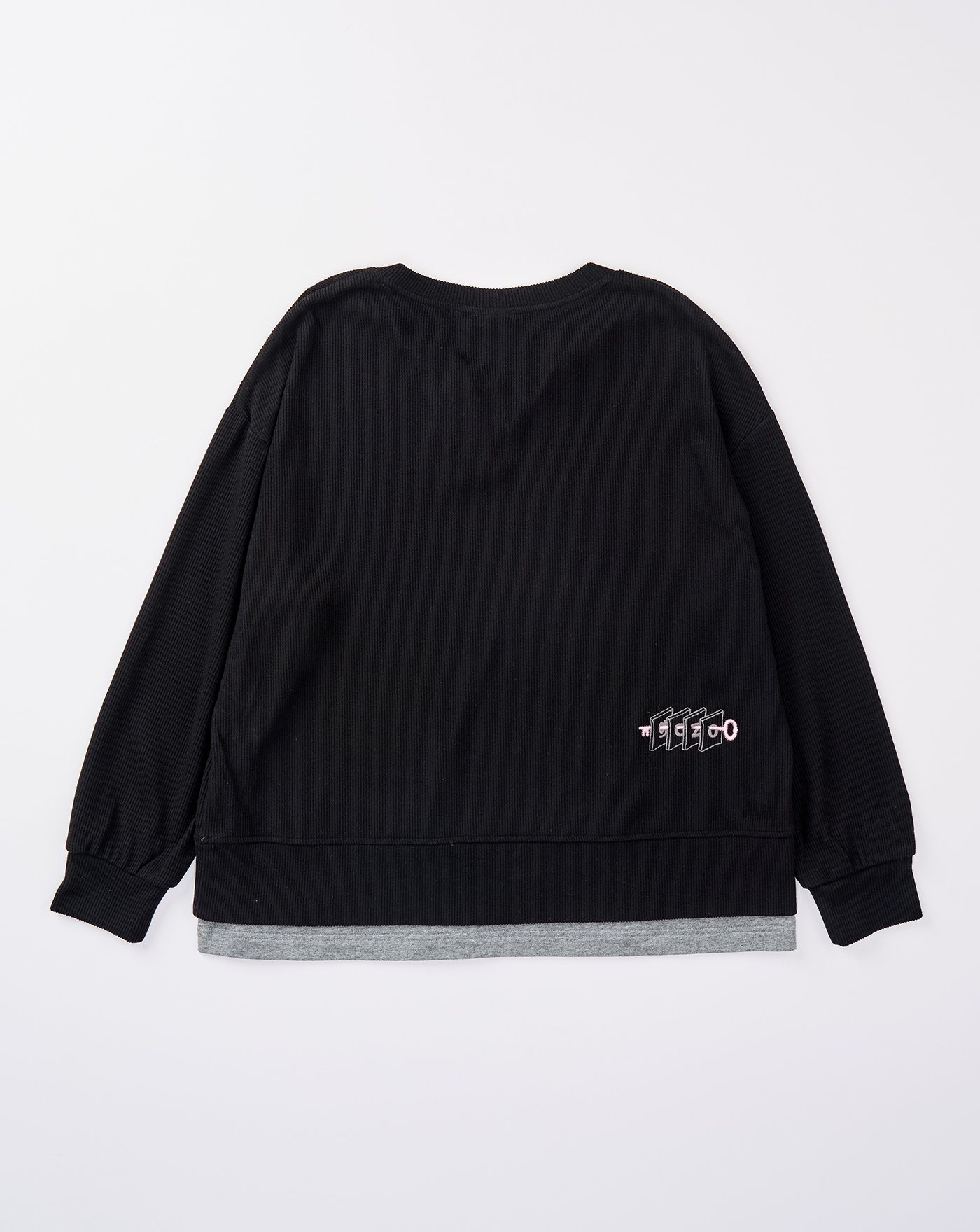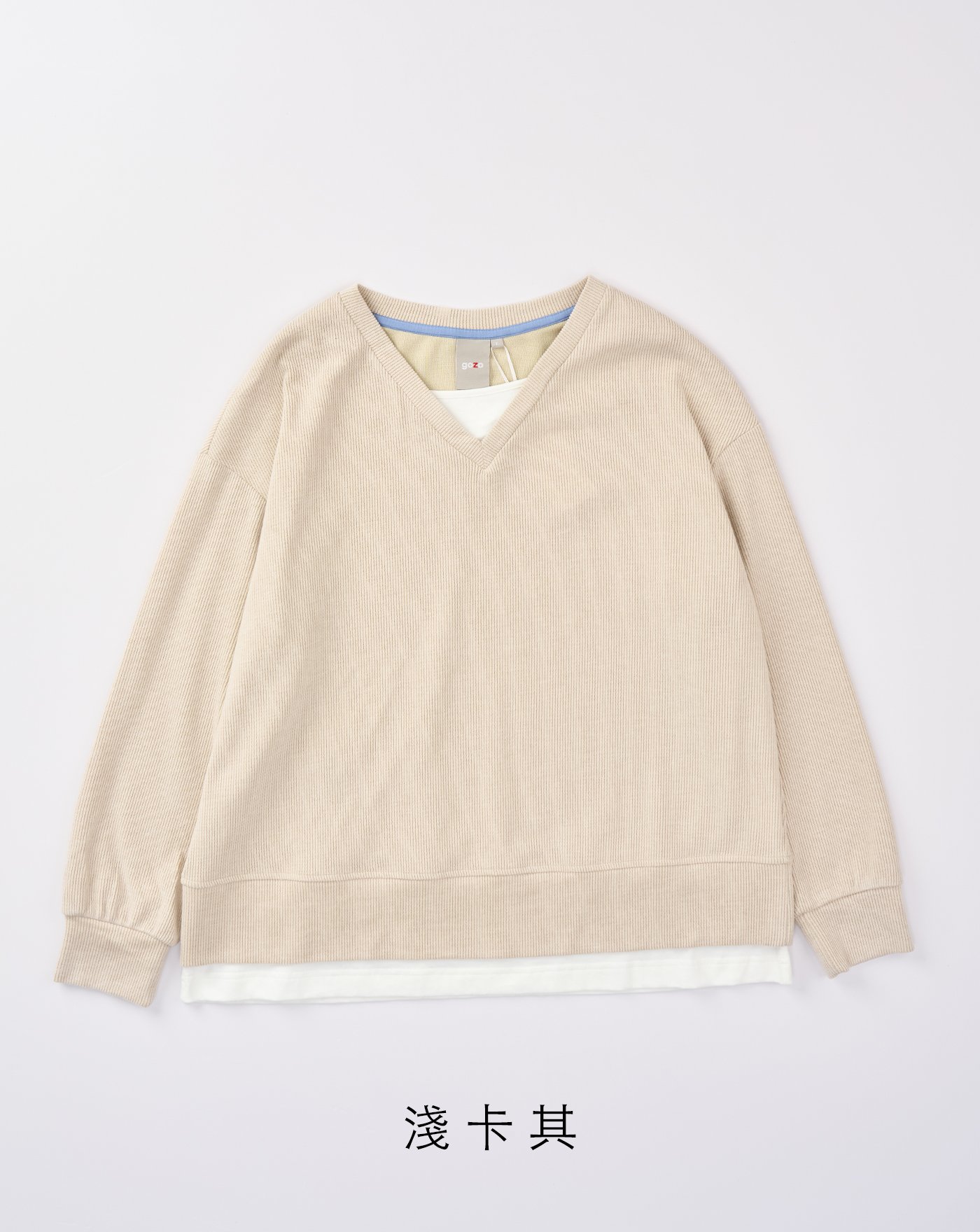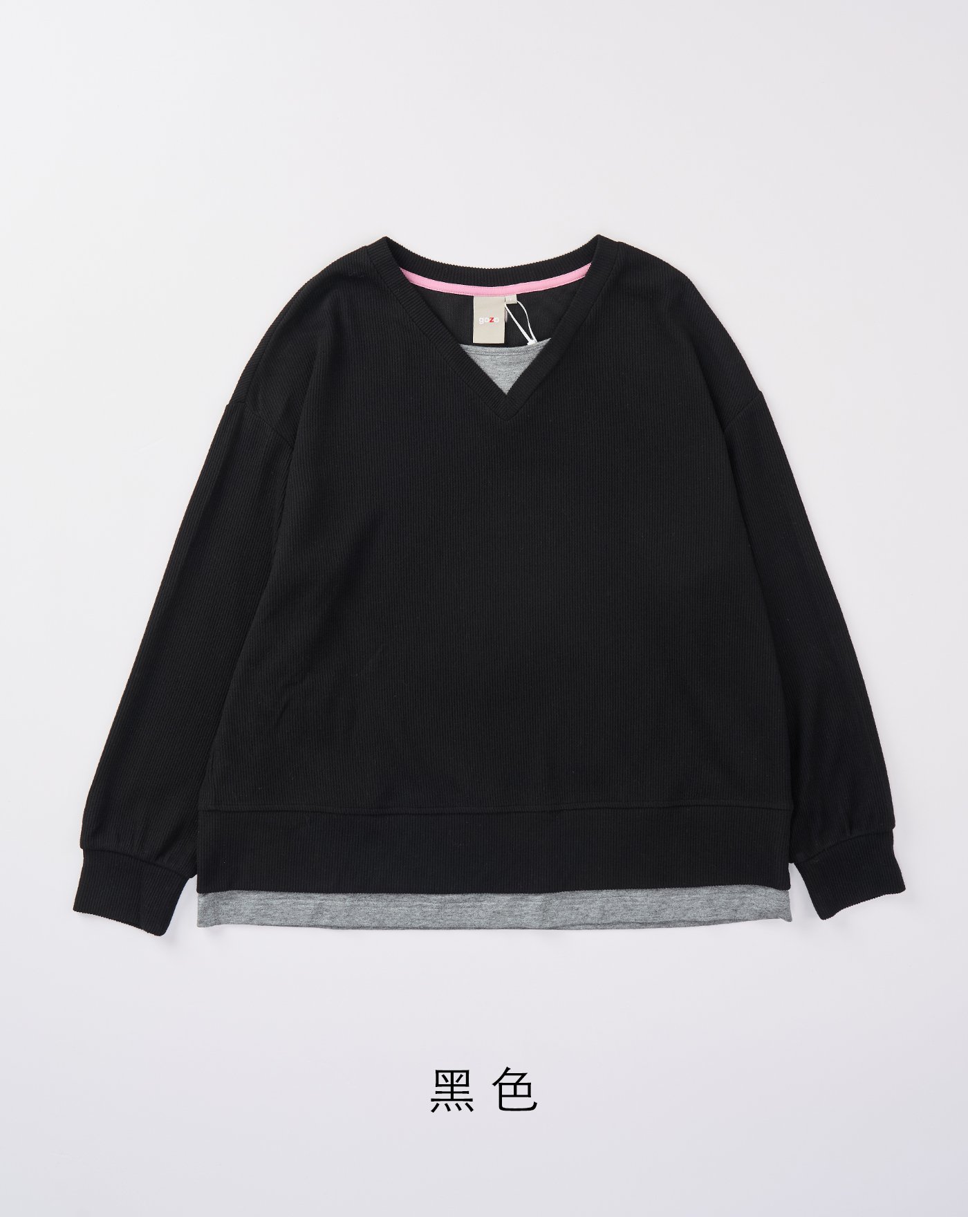 異材質拼接襯衫袖造型落肩上衣(兩色)