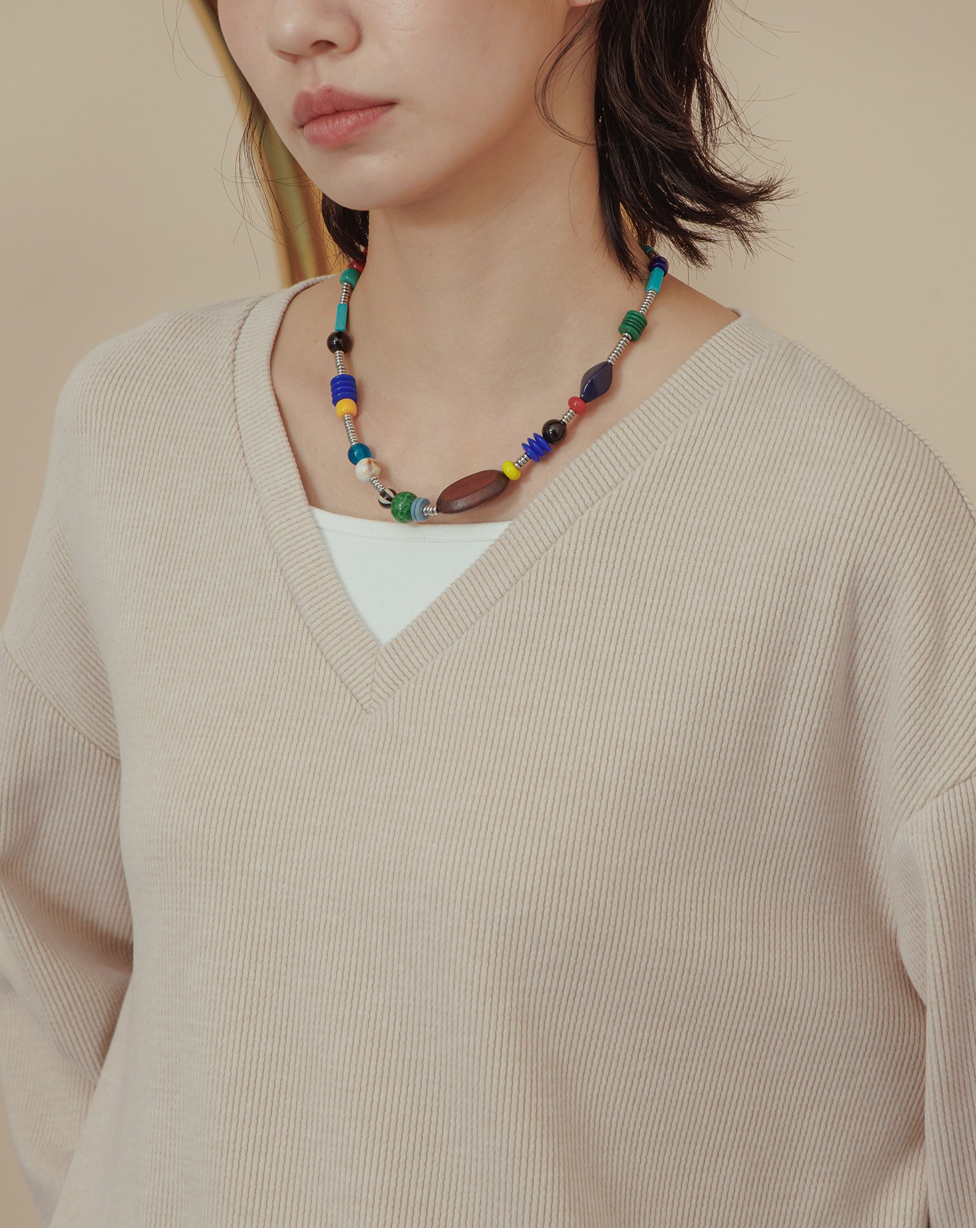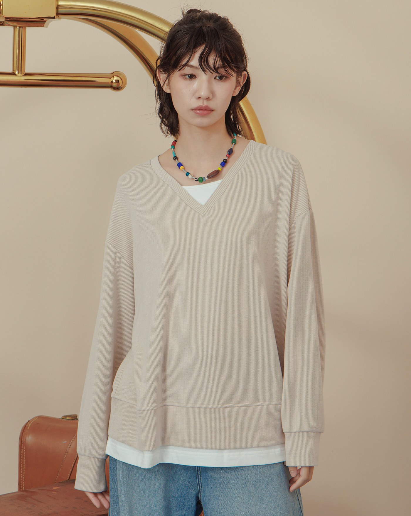 異材質拼接襯衫袖造型落肩上衣(兩色)