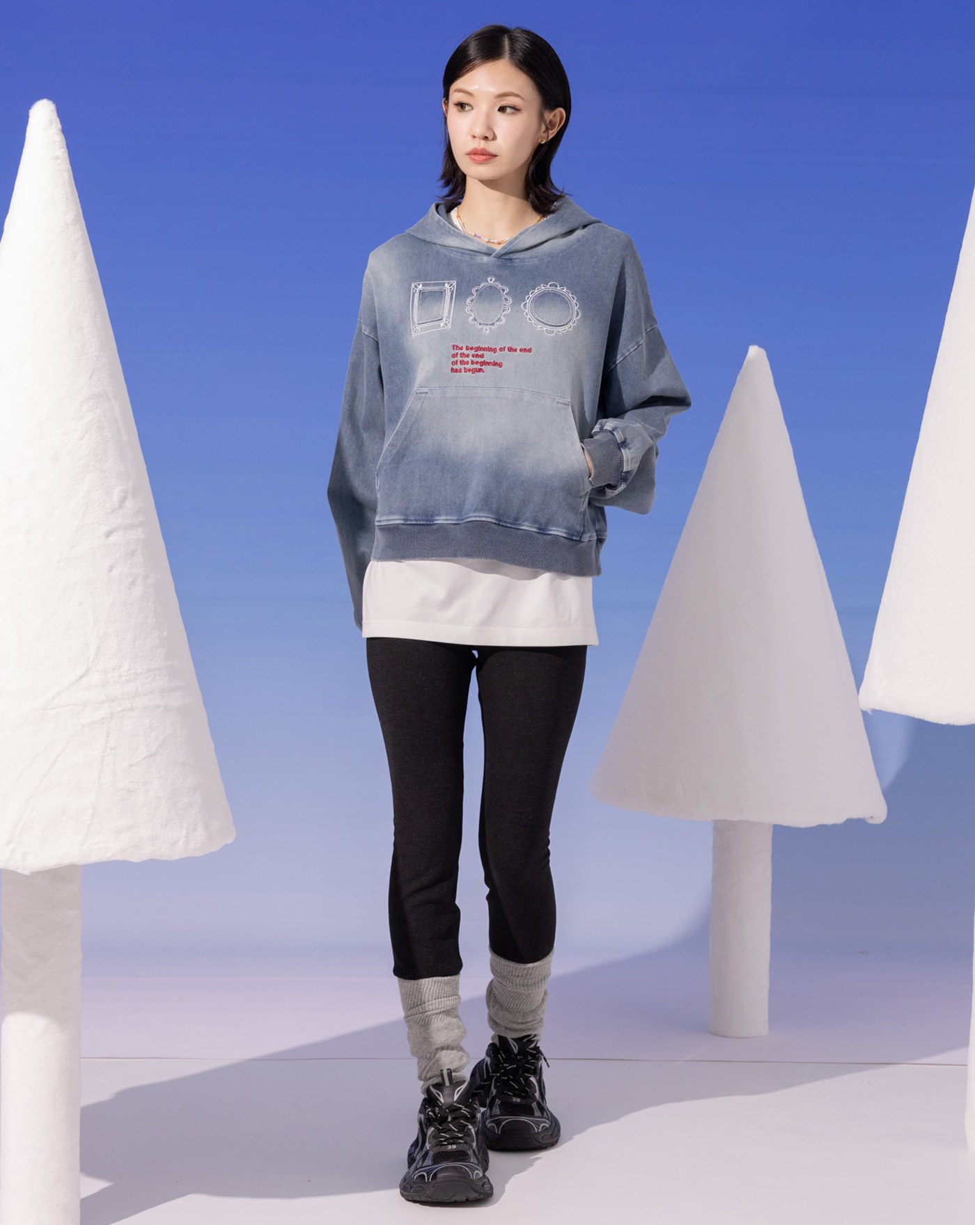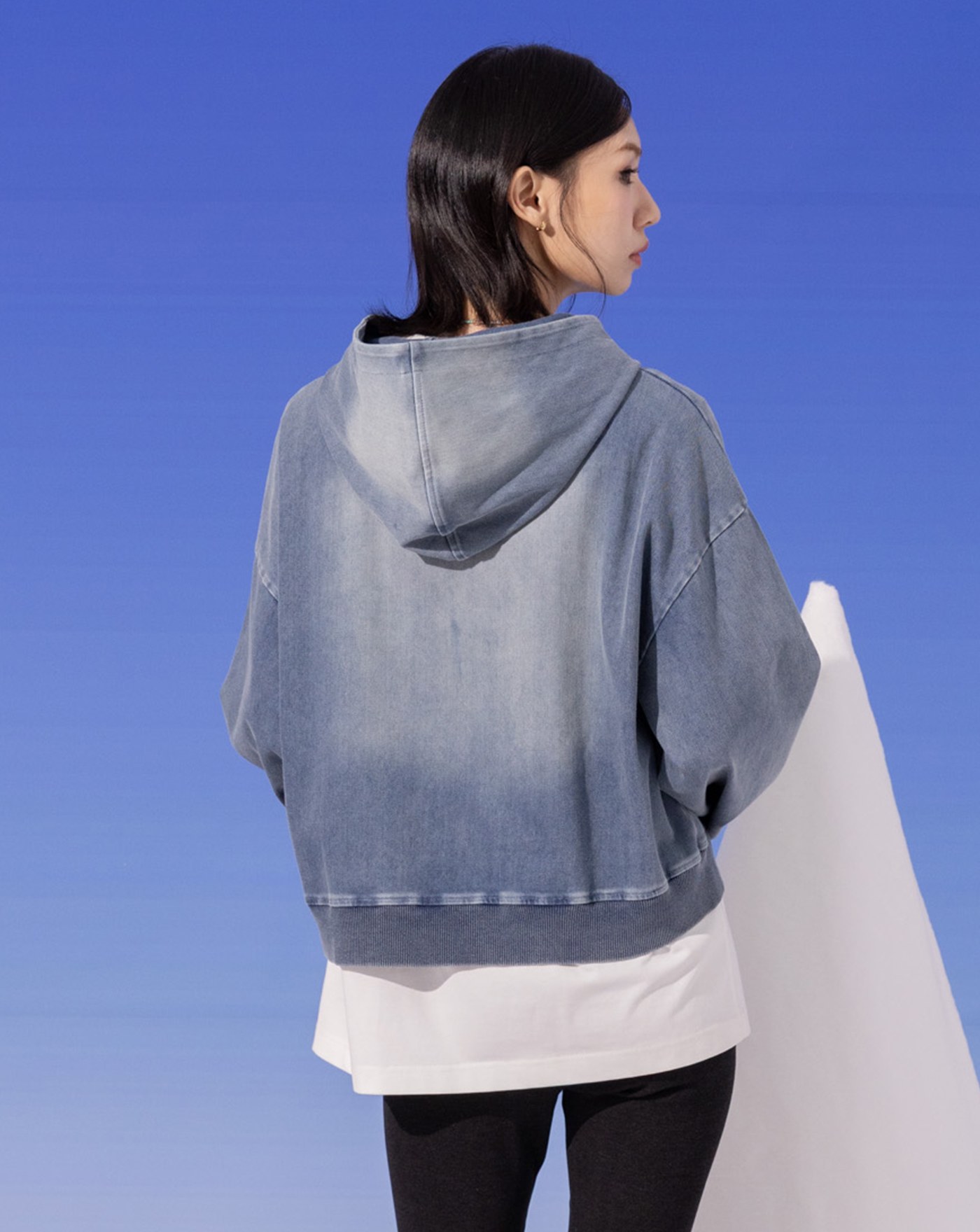 異材質拼接立體袖開衩帽T