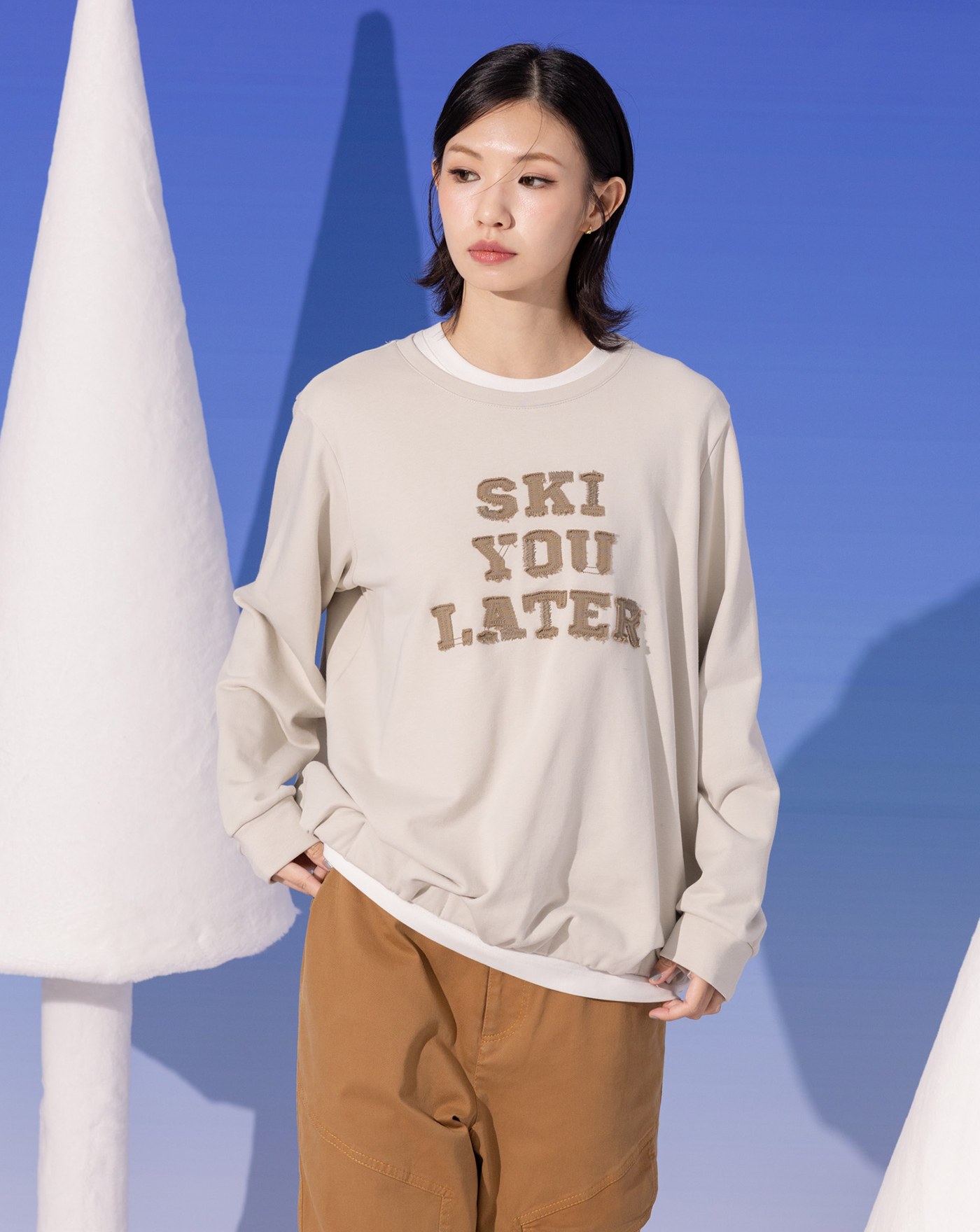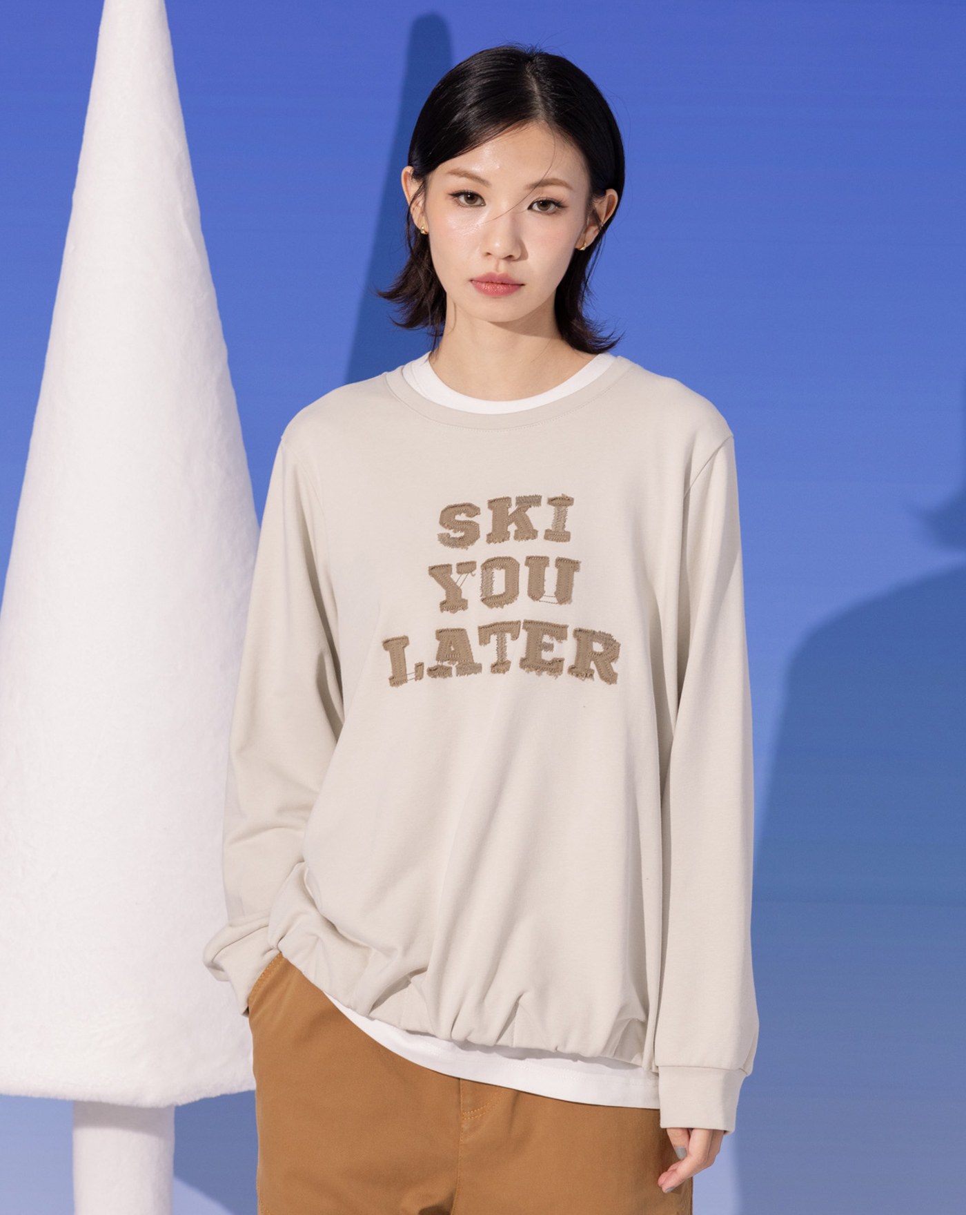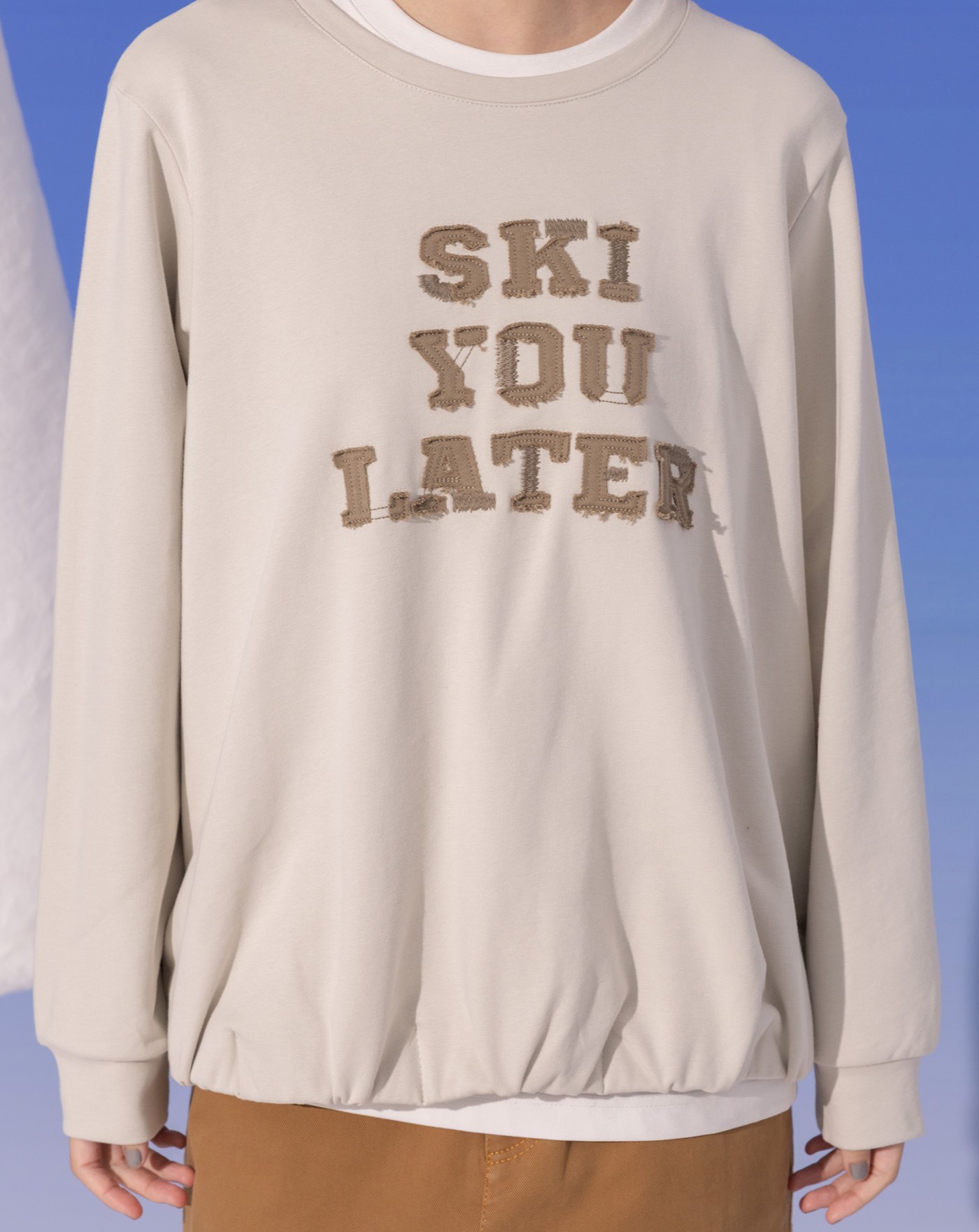 ➤發熱曬衣夾造型滑雪纜車印花大學T(兩色)
