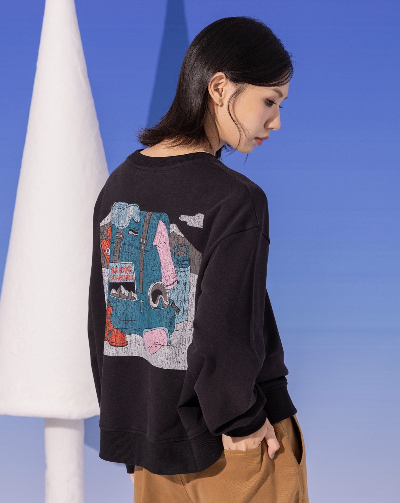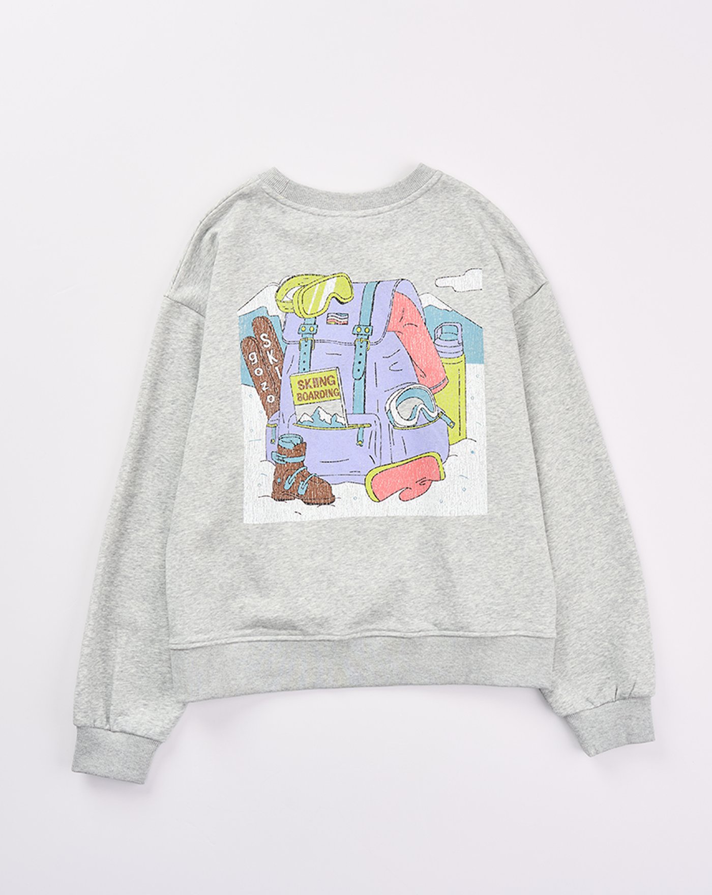 ➤發熱曬衣夾造型滑雪纜車印花大學T(兩色)