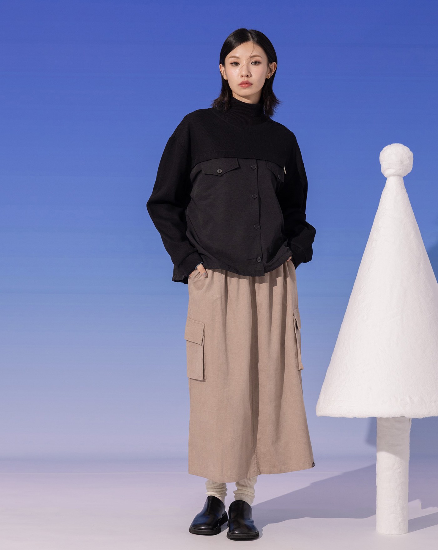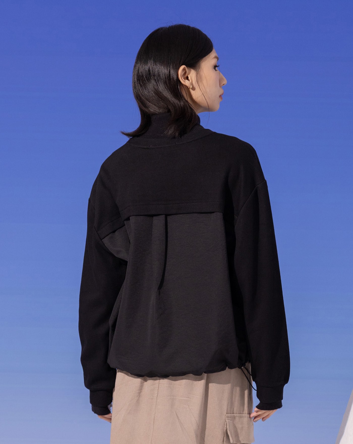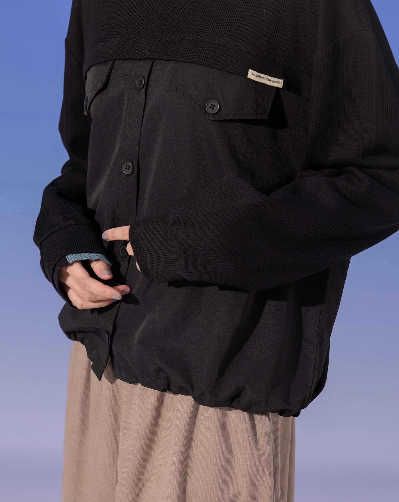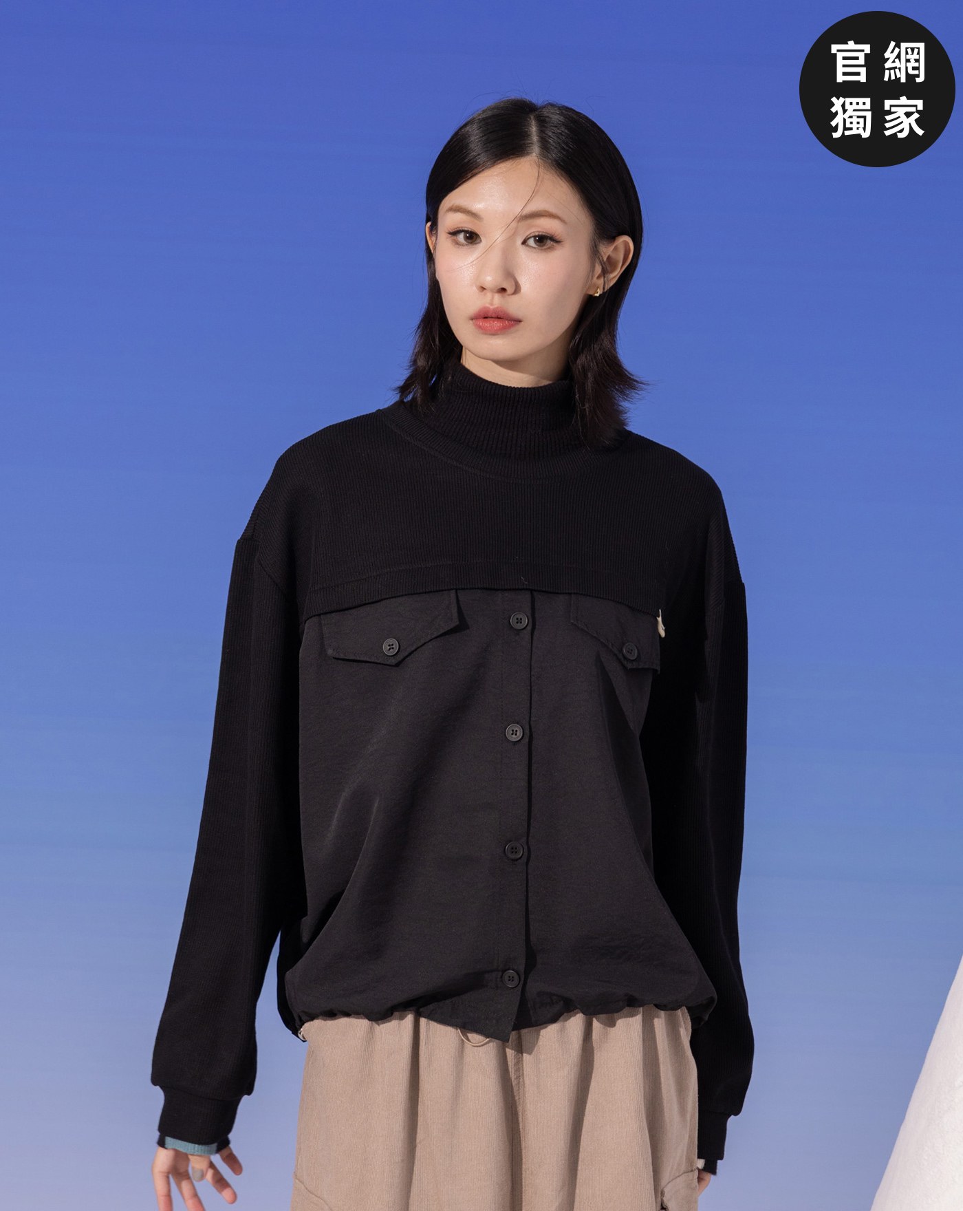 ➤異材質拼接抽繩傘狀大學T(兩色)