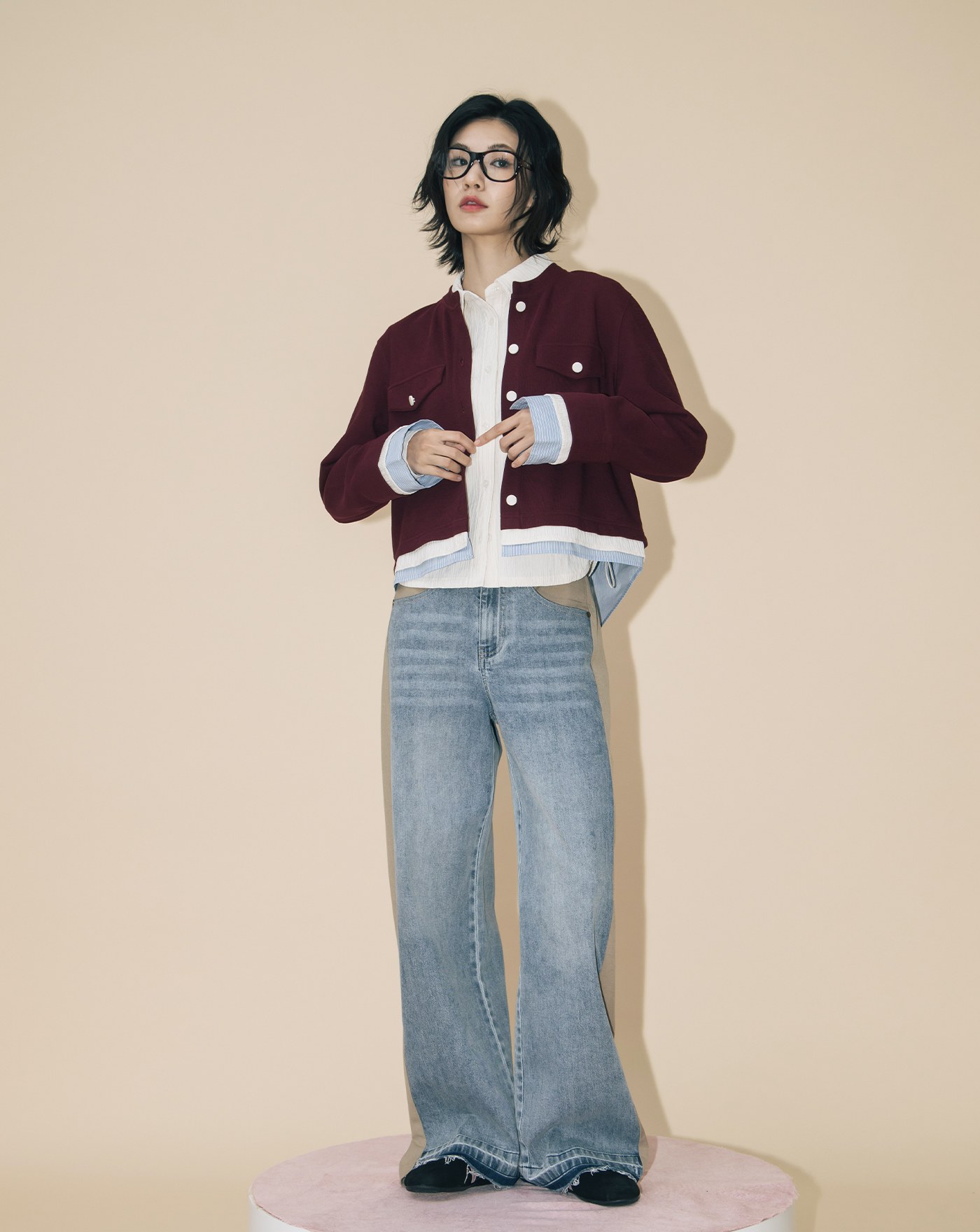 A|立體條紋布抽繩收腰合肩襯衫(兩色)
