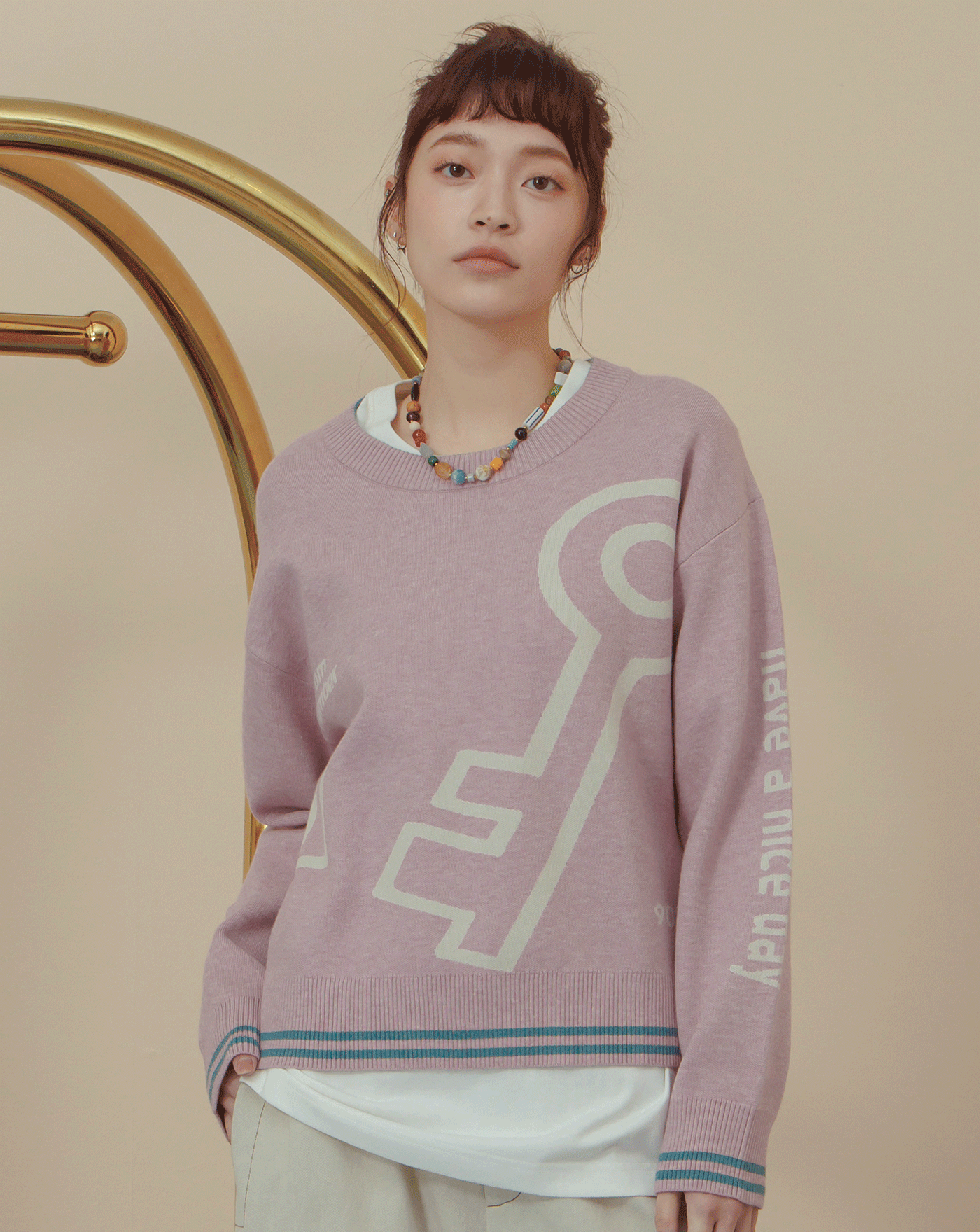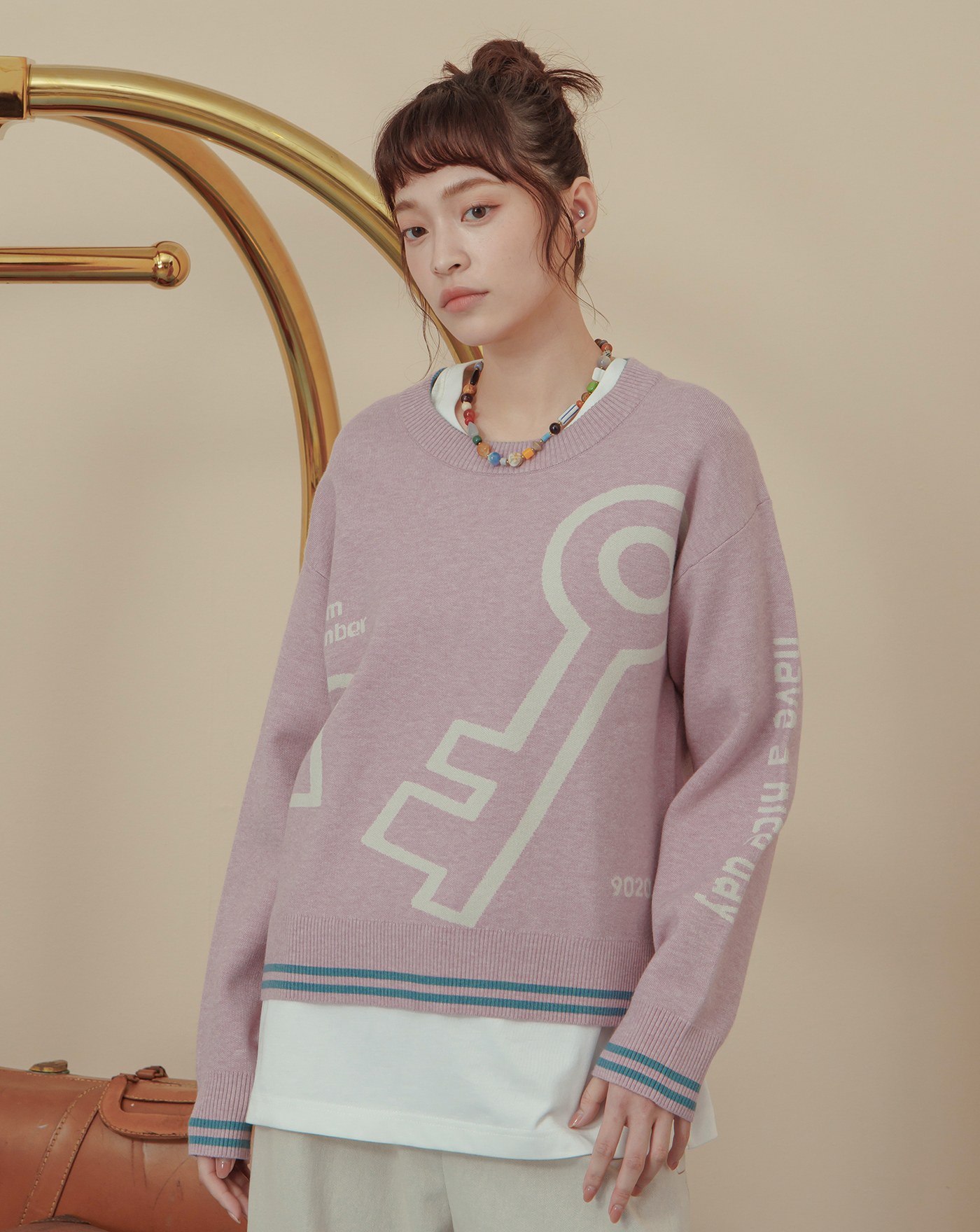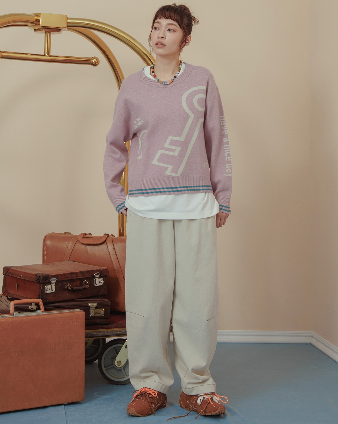 ➤古人漫步毛線繡圓領毛衣(兩色)