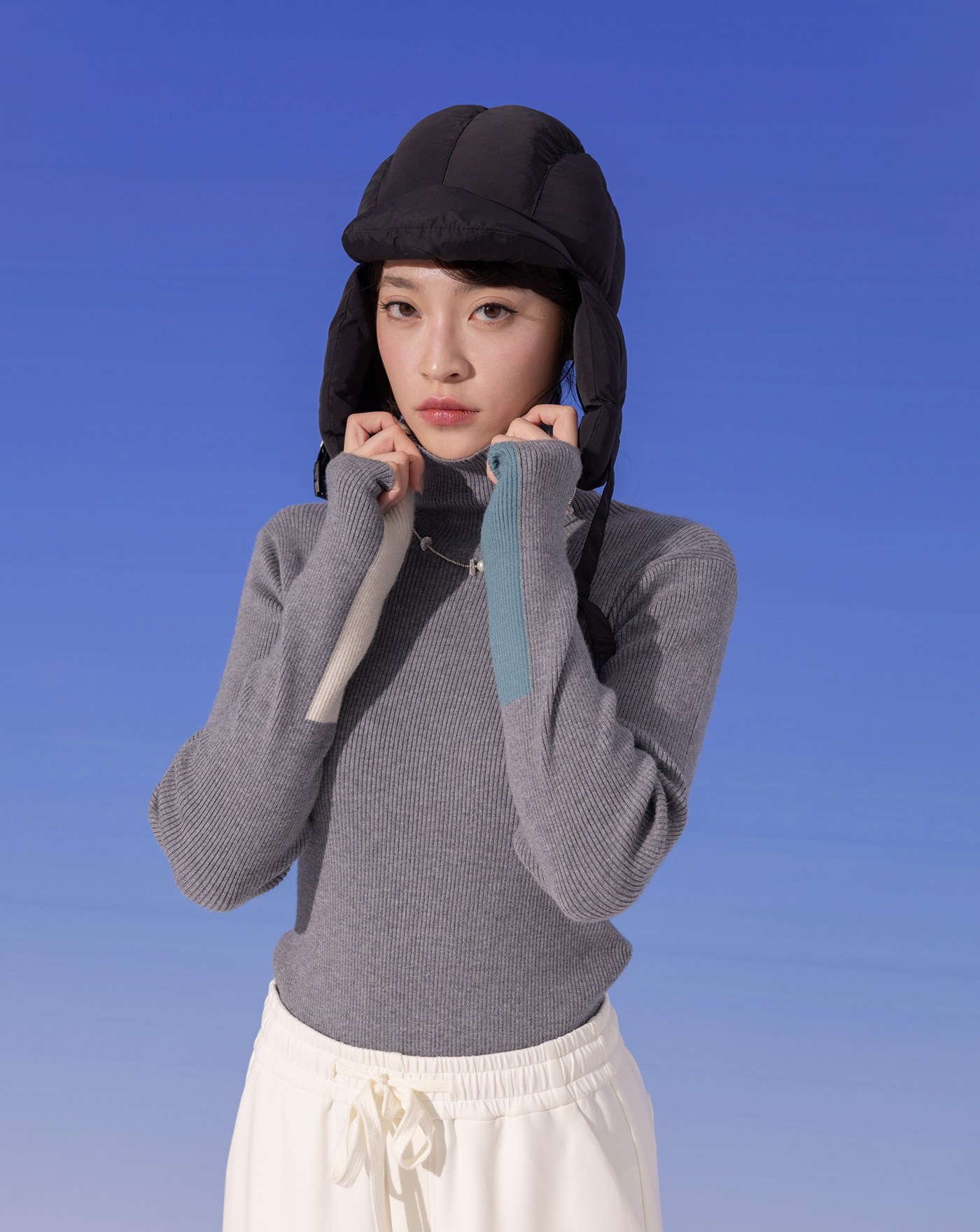 顯瘦撞色拼接高領針織上衣(兩色)
