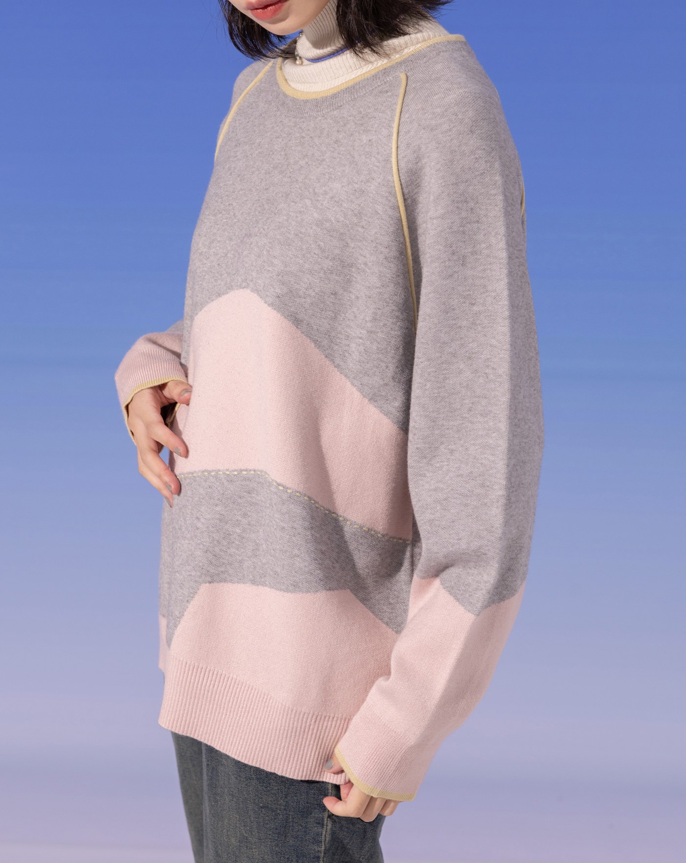 gozo皇冠繡花假兩件針織毛衣(兩色)