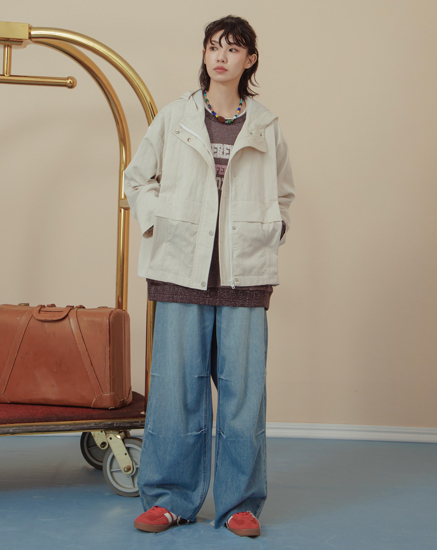 率性抓褶不收邊下擺直筒牛仔褲(兩色)
