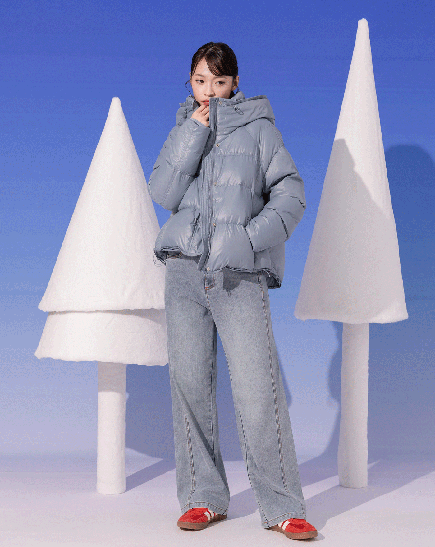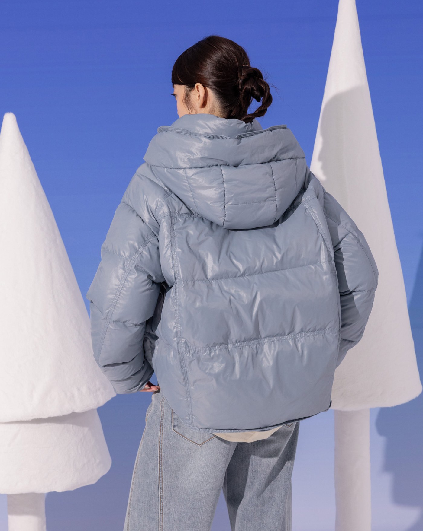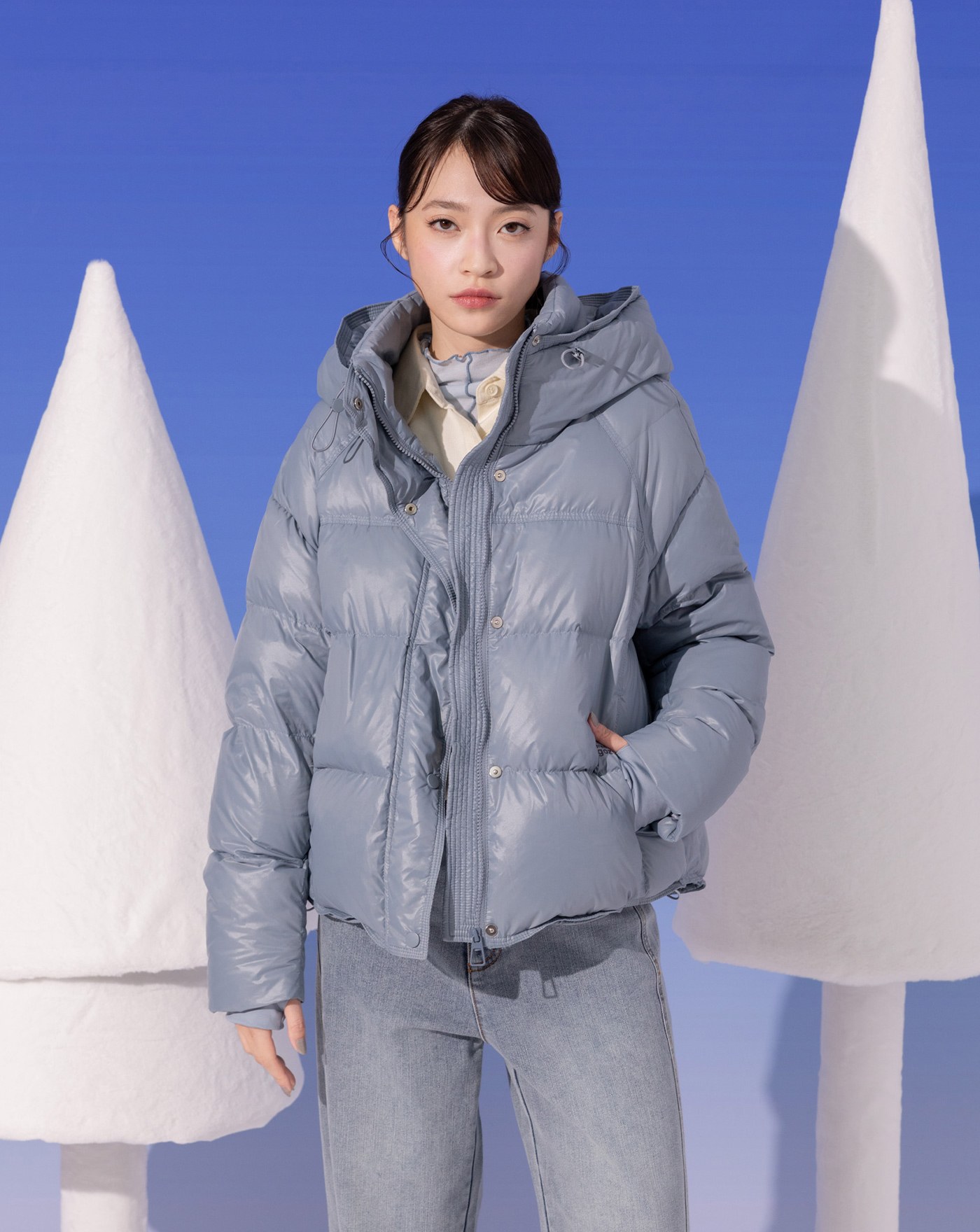 ➤防潑水雙向拉鍊可調節連帽羽絨外套(兩色)
