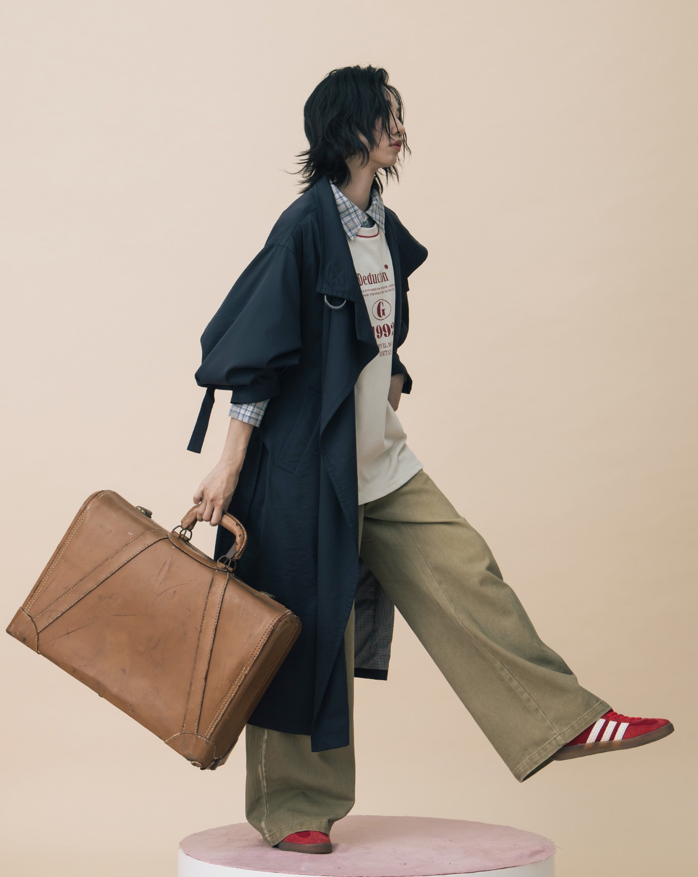 A|復古風線條刷色水洗牛仔寬褲(兩色)