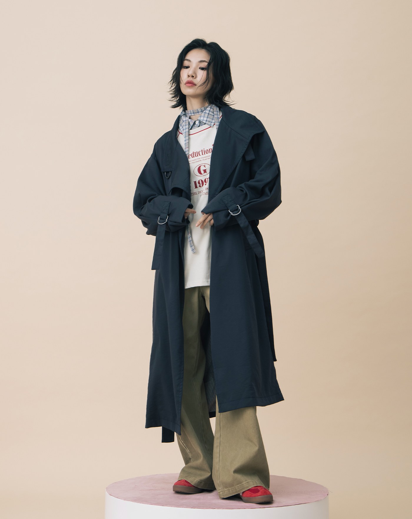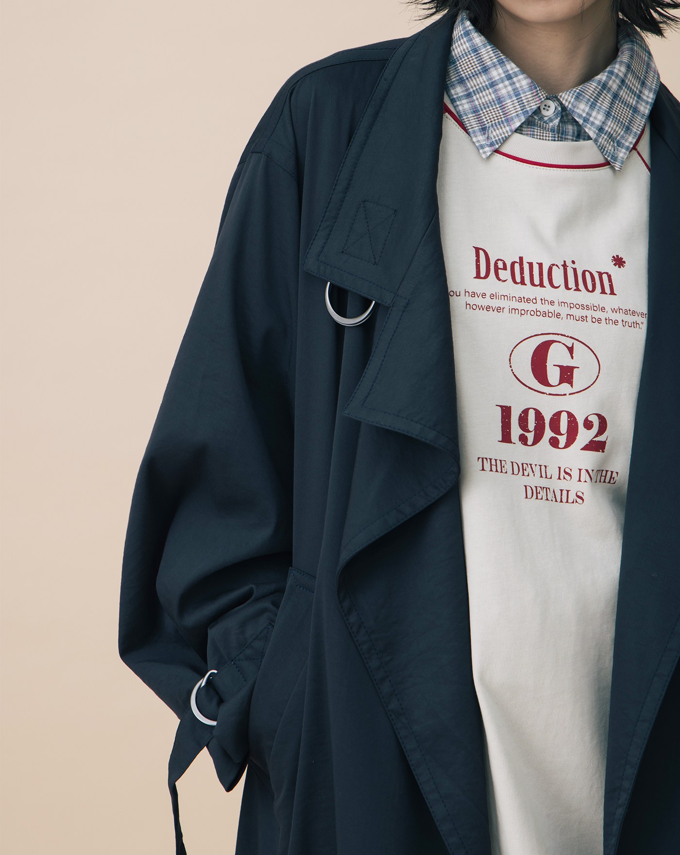 A|復古提織格紋短版襯衫附造型織帶(兩色)