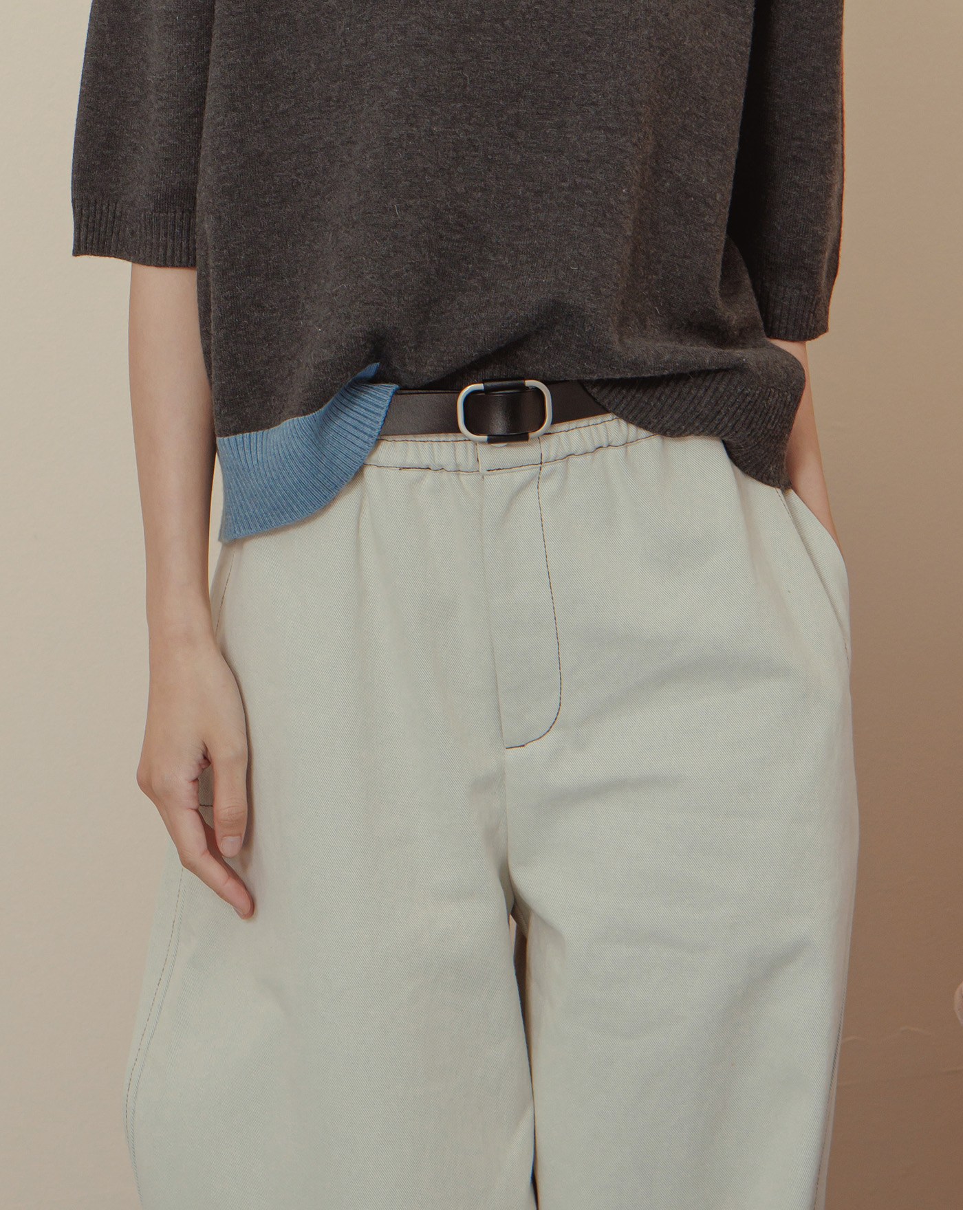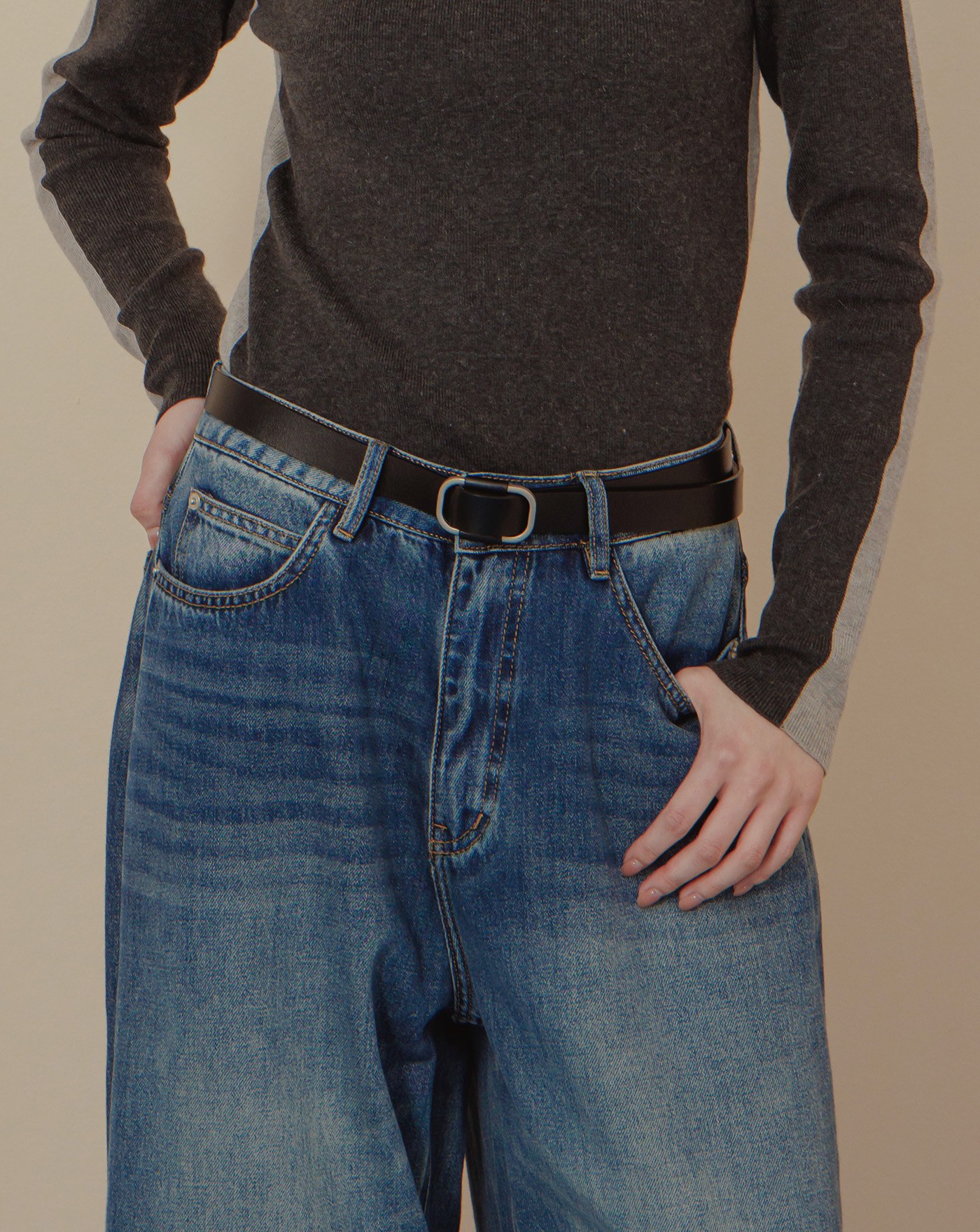 橢圓金屬扣真皮細皮帶