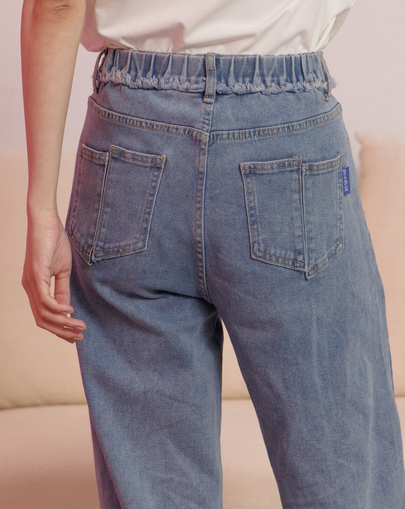 ➤好比例車線水洗彈性直筒牛仔褲